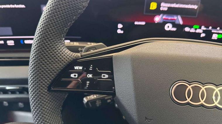 Adaptive cruise control, Advanced driver attention and fatigue montior, Audi application store, Audi assistant, Audi connect emergency call and service, Audi drive select, Audi smartphone interface, Audi virtual cockpit plus with 11.9" OLED colour display, Automatic start/stop system with coasting functionality, Camera based traffic sign recognition, Intersection assist, Lane departure warning, MMI navigation plus with high resolution 14.5" OLED touchscreen colour display, Park assist plus, Parking system plus with 360 display, Progressive steering with servotronic, Rear view camera, Swerve assist and turn assist, Traffic sign based speed limiter, Sports suspension lowered by 20mm, 2 USB-C ports in both the front and rear, Audi sound system impressive sound with 10 loudspeakers including centre speaker and subwoofer, 6-channel amplifier with a total output of 180 watts, DAB digital radio reception, Smartphone compartment with wireless charging, Aluminium roof rails, Aluminium window trims, Auto dimming rear view mirror, Body colour door mirrors, Door mirrors - electrically adjustable, heated, folding and auto dimming on both sides, Front and rear electric windows, Front door sill trims with aluminium inlays, illuminated with 'S' logo, High beam assist, LED headlights Plus incl. digital daytime running lights, turning light, all-weather light, motorway light, manouevring light and intersection light, LED rear lights pro incl. dynamic rear indicators and illuminated light strip with animated coming and leaving home function, LED third brake light, Privacy glass, Rear and side windows with heat insulating glass, Rear side wing doors, Rear wash/wipe, S Line badges on the front wings, S line bumpers, radiator grille and diffuser in phantom black and diffuser insert in matt anthracite, White rhombus logo projection light in exterior mirrors, Windscreen with acoustic glazing, 3 rear headrests, 3 seat rear bench, 3 spoke leather steering wheel with multi-function buttons with touch control, flattened on top and bottom, with S badging and contrast stitching, 3-zone automatic climate control, 40:20:40 split folding rear seat bench with centre armrest and cup holders, Comfort front centre armrest, Front and rear floor mats, Front seats with manual adjustment for position and 4-way electric lumbar support, Front sport seats with integrated headrest and S embossed logo, Headlining in black cloth, Heated front seats, i-Size child seat mounting on the front passenger side and i-Size and top tether on the outer rear seats, Luggage compartment lid, electrically opening and closing, Manual steering column height and depth adjustment, Single front passenger seat, Stainless steel pedals and footrest, Steering wheel grips in perforated leather and shift paddles, Ambient lighting package plus - A5, 3x3 point rear seat belts, Driver airbag, Electric child safety locks, First aid kit with warning triangle and vests, Front emergency brake assist, Front passenger airbag, Front passenger airbag deactivation, Front side airbags with head airbag system and front interaction airbag, Hill hold assist, Seat belt monitoring with rear seat occupant reminder, Tyre pressure loss indicator, Anti theft alarm, Anti-theft wheel bolts, Keyless Go, Accent surfaces and control buttons in gloss black, Black dashboard with contrast stitching, Inlays in matt brushed aluminium with linear embossing, anthracite, Softwrap in leatherette with contrast stitching, Upper and lower interior elements in leatherette, Tyre repair kit,