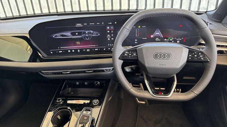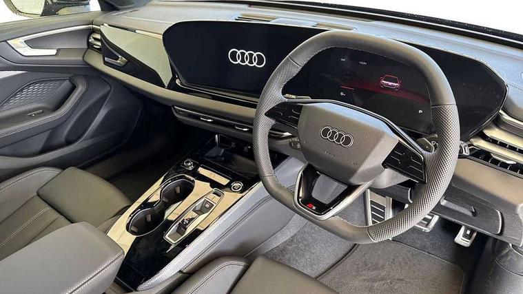 Adaptive cruise control, Advanced driver attention and fatigue montior, Audi application store, Audi assistant, Audi connect emergency call and service, Audi drive select, Audi smartphone interface, Audi virtual cockpit plus with 11.9" OLED colour display, Automatic start/stop system with coasting functionality, Camera based traffic sign recognition, Intersection assist, Lane departure warning, MMI navigation plus with high resolution 14.5" OLED touchscreen colour display, Park assist plus, Parking system plus with 360 display, Progressive steering with servotronic, Rear view camera, Swerve assist and turn assist, Traffic sign based speed limiter, Sports suspension lowered by 20mm, 2 USB-C ports in both the front and rear, Audi sound system impressive sound with 10 loudspeakers including centre speaker and subwoofer, 6-channel amplifier with a total output of 180 watts, DAB digital radio reception, Smartphone compartment with wireless charging, Aluminium roof rails, Aluminium window trims, Auto dimming rear view mirror, Body colour door mirrors, Door mirrors - electrically adjustable, heated, folding and auto dimming on both sides, Front and rear electric windows, Front door sill trims with aluminium inlays, illuminated with 'S' logo, High beam assist, LED headlights Plus incl. digital daytime running lights, turning light, all-weather light, motorway light, manouevring light and intersection light, LED rear lights pro incl. dynamic rear indicators and illuminated light strip with animated coming and leaving home function, LED third brake light, Privacy glass, Rear and side windows with heat insulating glass, Rear side wing doors, Rear wash/wipe, S Line badges on the front wings, S line bumpers, radiator grille and diffuser in phantom black and diffuser insert in matt anthracite, White rhombus logo projection light in exterior mirrors, Windscreen with acoustic glazing, 3 rear headrests, 3 seat rear bench, 3 spoke leather steering wheel with multi-function buttons with touch control, flattened on top and bottom, with S badging and contrast stitching, 3-zone automatic climate control, 40:20:40 split folding rear seat bench with centre armrest and cup holders, Comfort front centre armrest, Front and rear floor mats, Front seats with manual adjustment for position and 4-way electric lumbar support, Front sport seats with integrated headrest and S embossed logo, Headlining in black cloth, Heated front seats, i-Size child seat mounting on the front passenger side and i-Size and top tether on the outer rear seats, Luggage compartment lid, electrically opening and closing, Manual steering column height and depth adjustment, Single front passenger seat, Stainless steel pedals and footrest, Steering wheel grips in perforated leather and shift paddles, Ambient lighting package plus - A5, 3x3 point rear seat belts, Driver airbag, Electric child safety locks, First aid kit with warning triangle and vests, Front emergency brake assist, Front passenger airbag, Front passenger airbag deactivation, Front side airbags with head airbag system and front interaction airbag, Hill hold assist, Seat belt monitoring with rear seat occupant reminder, Tyre pressure loss indicator, Anti theft alarm, Anti-theft wheel bolts, Keyless Go, Accent surfaces and control buttons in gloss black, Black dashboard with contrast stitching, Inlays in matt brushed aluminium with linear embossing, anthracite, Softwrap in leatherette with contrast stitching, Upper and lower interior elements in leatherette, Tyre repair kit,