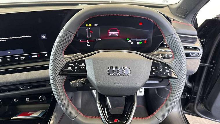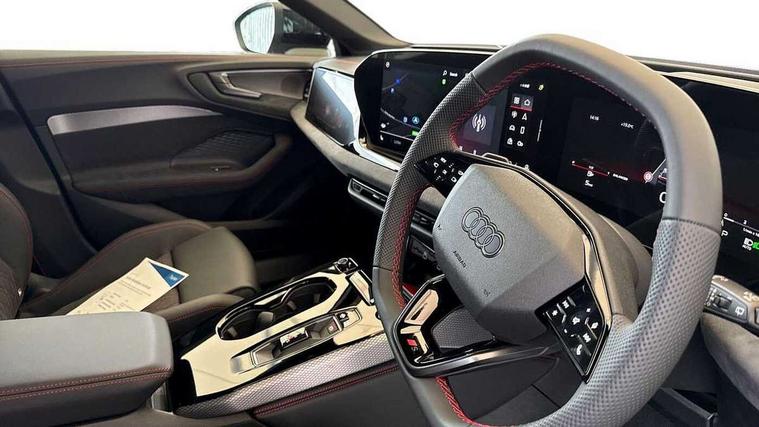 Adaptive cruise control, Advanced driver attention and fatigue montior, Audi application store, Audi assistant, Audi connect emergency call and service, Audi drive select, Audi virtual cockpit plus with 11.9" OLED colour display, Automatic start/stop system with coasting functionality, Camera based traffic sign recognition, Intersection assist, Lane change assistant with exit warning system, rear cross traffic alert and rear turn assist, Lane departure warning with emergency assist, MMI 10.9" front passenger touch display, MMI navigation plus with high resolution 14.5" OLED touchscreen colour display, Park assist plus, Parking system plus with 360 display, Progressive steering with servotronic, Smartphone interface, Swerve assist and turn assist, Top view camera, Traffic sign based speed limiter, Sports suspension lowered by 20mm, 2 USB-C ports in both the front and rear, Audi sound system impressive sound with 8 loudspeakers including centre speaker and subwoofer, 6-channel amplifier with a total output of 180 watts, DAB digital radio reception, Smartphone compartment with wireless charging, Aluminium window trims, Auto dimming rear view mirror, Black door handles, Black roof rails, Dark chrome-plated tailpipe trims, Door mirrors - electrically adjustable, heated, folding and auto dimming on both sides, Front and rear electric windows, Front door sill trims with aluminium inlays, illuminated with 'S' logo, Headlight cleaning system, High beam assist, LED daytime running lights, LED rear lights pro incl. dynamic rear indicators and illuminated light strip with animated coming and leaving home function, LED third brake light, Matrix LED headlights with eight light signatures selectable via the MMI or the myAudi app, Privacy glass, Rear and side windows with heat insulating glass, Rear side wing doors, Rear wash/wipe, S Line badges on the front wings, S line bumpers, radiator grille and diffuser in phantom black and diffuser insert in matt anthracite, White rhombus logo projection light in exterior mirrors, Windscreen with acoustic glazing, 3 rear headrests, 3 seat rear bench, 3 spoke leather steering wheel with multi-function buttons with touch control, flattened on top and bottom, with S badging and contrast stitching, 3-zone automatic climate control, 40:20:40 split folding rear seat bench with centre armrest and cup holders, Comfort front centre armrest, Electrically adjustable front seats, Front and rear floor mats, Front sport seats with integrated headrest and S embossed logo, Headlining in black cloth, Heated front seats, i-Size child seat mounting on the front passenger side and outer rear seats, i-Size and top tether on the outer rear seats, Luggage compartment lid, electrically opening and closing, Manual steering column height and depth adjustment, Memory function for driver seat, Single front passenger seat, Stainless steel pedals and footrest, Steering wheel grips in perforated leather and shift paddles, Ambient lighting package plus - A5, Black styling package plus - A5, 3x3 point rear seat belts, Acoustic vehicle alerting system, Convenience key with safelock, Driver airbag, Electric child safety locks, First aid kit with warning triangle and vests, Front emergency brake assist, Front passenger airbag, Front passenger airbag deactivation, Hill hold assist, Occupant detection in rear seat area, Proactive passenger protection system for front, sides and rear, Red brake calipers, Seat belt monitoring with rear seat occupant reminder, Side airbags in front and rear with head airbag system and front interaction airbag, Tyre pressure loss indicator, Anti theft alarm, Anti-theft wheel bolts, Keyless Go, Accent surfaces and control buttons in gloss black, Black dashboard with contrast stitching, Softwrap in Dinamica with contrast stitching, Upper and lower interior elements in dinamica microfiber, 20" 5 arm fold design Audi sport alloy wheels in silk matt grey and gloss turned finish, Tyre repair kit,