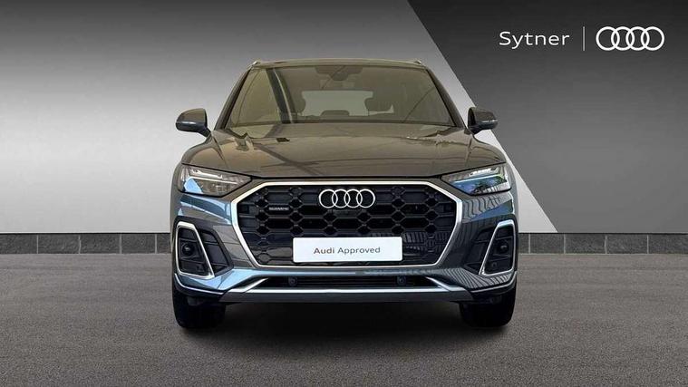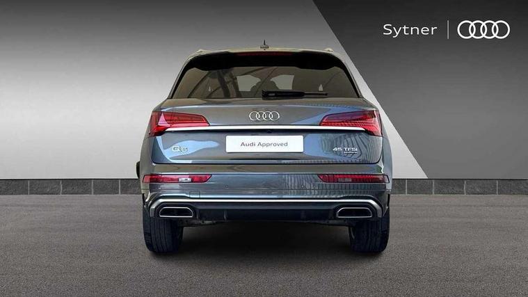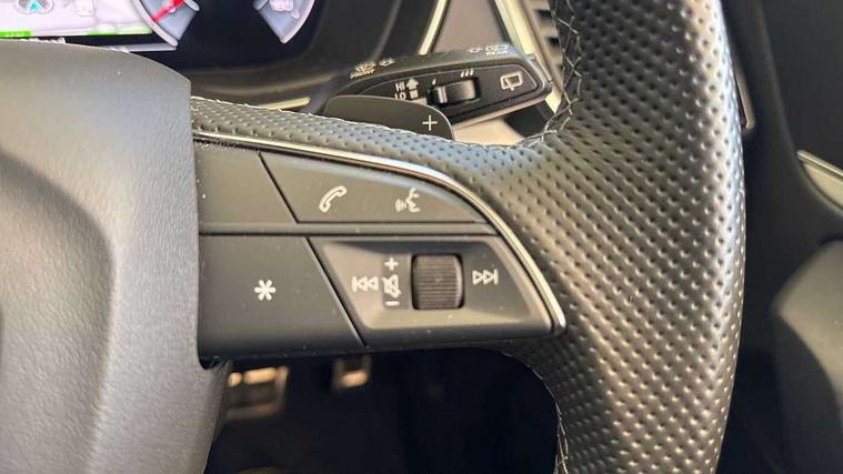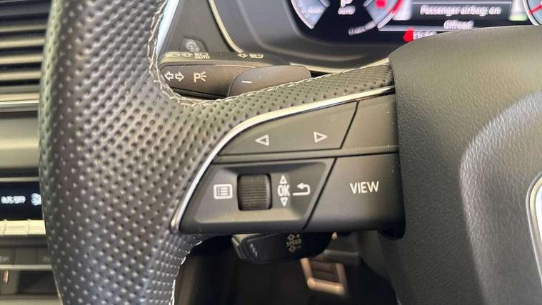 Adaptive cruise control with speed limiter, Advanced driver attention and drowsiness monitor, Audi application store, Audi connect safety and service (e-call), Audi drive select, Audi smartphone interface, Audi Virtual Cockpit - 10.25" display, Bluetooth interface, Camera based traffic sign recognition, Lane departure warning including emergency assist, MMI Navigation Plus with high resolution 11.6 inch touchscreen colour display, Power operated tailgate with sensor controlled release, Progressive steering, Rear view camera, Swerve assist and turn assist, 11KW onboard charger, 175kW DC charging capability, AC and DC charging access point positioned on driver's side rear, Control unit with household plug and charging cable, Mode 2, Type 2 / G (10A), Mode 3 type 2 AC charging cable 22kW, Sport suspension, 2 USB-C ports with charge and data functions, Audi sound system with 8 loudspeakers incl. centre speaker, subwoofer and 6-channel amplifier with total output of 180 watts, DAB Digital radio, Aluminium roof rails, Body coloured door mirrors, Contrast bumpers in Manhattan grey, Electrically adjustable/heated/folding/dimming door mirrors with kerb view includes integrated LED indications + kerb view function for passenger side, Frameless auto dimming interior rear view mirror, Heat insulating glass windscreen, Heated rear window, LED 3rd brake light, LED daytime running lights, LED Headlights, LED rear lights, Privacy glass - dark-tinted rear window, rear door windows and rear side windows, Projection light in the exterior mirrors, e-tron logo projected from the underside of the exterior mirror onto the ground, Rear side wing doors, Rear wiper, S Line badges on the front wings, S line exterior styling, Single frame grille with a structured, closed surface within an octagonal shape, 3 seat bench in 2nd row, 3 zone automatic air conditioning, 4 way electric lumbar support for driver and front passenger, 40/20/40 split folding rear seat bench, Accent surfaces in gloss black - centre console control panel, switch panel and trim on front doors in gloss black, Black carpets, Black cloth headlining, Comfort auxiliary air conditioning, Door armrests in leatherette, Front centre armrest, Front door sill trims with aluminium inlay, illuminated with S logo, Front sport seats with integrated head reastrains, Front/rear floor mats, Heated front seats, Manual seat adjustment for driver and front passenger seats, Pedals in stainless steel, Rear centre armrest with cupholders, Rear head restraints, Single front passenger seat, Steering wheel with trim in chrome look, S emblem, steering wheel grips in perforated leather and contrast stitching, Ambient lighting plus pack - Q4 E-tron, Gloss styling pack - Q4 E-tron, Non smoking pack - Q4 E-tron, 3x3 point rear seatbelts, Acoustic vehicle alerting system, Convenience key with safelock, Driver and front passenger airbag with passenger airbag deactivation, Electric child locks, First aid kit with warning triangle and vests, Front side airbags with head airbag system and front interaction airbag, i - Size child seat mounting on the front passenger side and i - Size and top tether on the outer rear seats, Pre-sense front with pedestrian and cyclist detection, Rear seat occupant reminder for child presence detection, Seat belt monitoring, Tyre pressure loss indicator, Anti theft alarm, Anti-theft wheel bolts, Keyless Go, Aluminium look interior elements, Black dashboard, Vehicle tool kit with tyre repair kit,