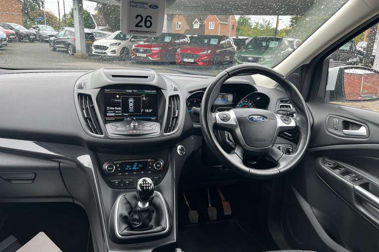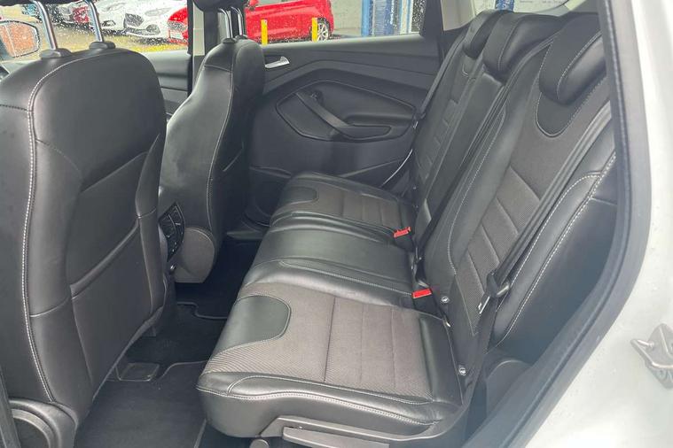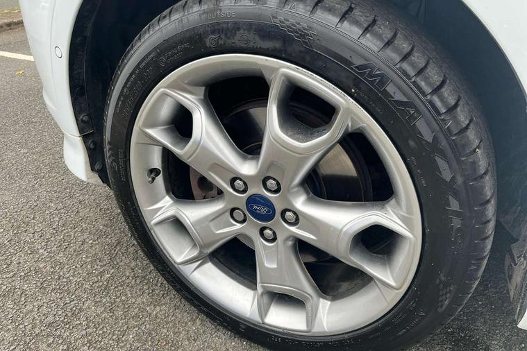 'Ford Power' starter button, Active park assist, EPAS, Ford SYNC bluetooth connection with advanced voice control and USB port, Front and rear parking sensors, SYNC Emergency Assistance, Trip computer, 8 Speakers, Auxiliary socket for external device, Remote audio controls on steering wheel, SYNC 2 DAB radio with colour touch screen, 'Quickclear' heated windscreen/heated washer jets, Auto dimming rear view mirror, Automatic headlights, Body colour bumpers, Body colour front/rear/side skirts, Body colour rear spoiler, Electric front and rear windows + one touch + global open/closing, Electrically heated door mirrors, Front fog lights, Rain sensor windscreen wipers, Rear diffuser, Scuff plates, Tailgate wash/wipe, Twin exhaust pipes, 2nd row air vents, 4 spoke leather steering wheel with silver accents, 60/40 split/folding rear back and cushion, Auxiliary power socket in luggage area, Centre console with stowage tray/bottle holder/CD stowage/front and rear 12V power point, Driver/front passenger manual lumbar adjust, Driver/passenger front seatback pockets, Driver/passenger seats fore/aft adjustment, Dual electronic automatic temperature control, Folding rear centre armrest with storage compartment + cupholders, Footwell courtesy lights front and rear, Front head restraints, Front overhead courtesy lights with theatre style dimming and delay, Front/rear floor mats, Front/rear reading lights, Isofix system on outer rear seats, Leather gearknob, Manual height adjustable front seats, Part leather upholstery, Reach + rake adjustable steering column, Rear head restraints, Sports style front seats, Stowage unit in upper instrument panel, Tie down hooks, Tonneau cover, Variable intensity instrument illumination, 3 point seatbelts on all 3 rear seats, ABS/EBD, Driver and passenger airbags, Driver and passenger side airbags, Electric traction assist system, ESP+EBA, Front and rear curtain airbags, Hill start assist, Intelligent Protection System (IPS), Roll stability control, Tyre pressure monitoring system, Immobiliser, Keyless Start, Locking wheel nuts, Remote central locking, Thatcham Cat 1 volume sensing perimeter alarm, Mini steel spare wheel,