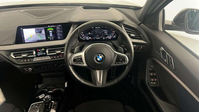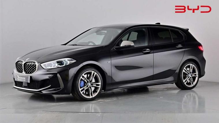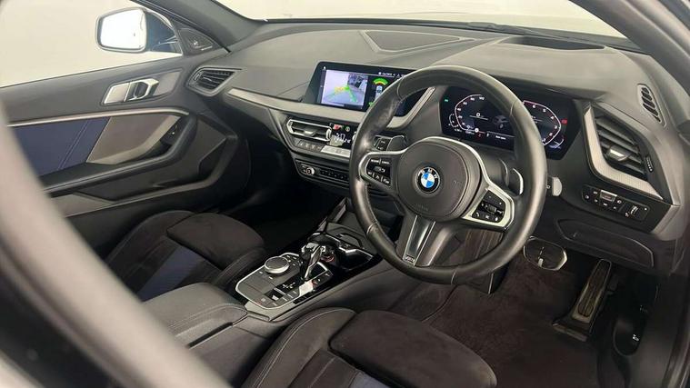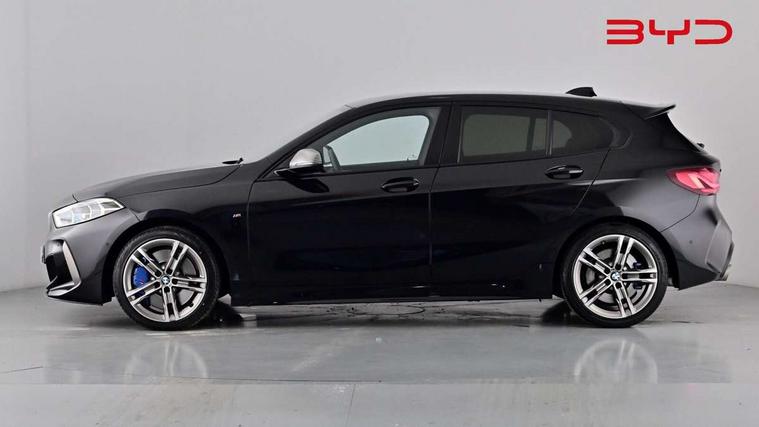 Active guard plus, Attentiveness assist, BMW Live Cockpit Professional sat nav system including 10.25" high resolution display and Intelligent Voice Assistant, BMW Online services, BMW Teleservices, Check Control warning system for monitoring of lights and door/luggage compartment open warning, Eco pro mode, Integrated owners handbook, M Sports steering, On board computer, Optimum shift indicator, Personal Profile, Pull away assistant, Speed limiter, Anti roll bar front and rear, Balancer shaft, Double VANOS, Drive Performance Control, Electronic differential lock, Engine cover with M performance designation, High precision injection, Larger fuel tank capacity (50 litres), Launch control, Petrol Particulate Filter, VALVETRONIC engine management, Bluetooth audio streaming, DAB Digital radio, Auto dimming rear view mirror, Body colour door handles, Cerium grey exterior mirror caps, Direction indicator side lights in exterior mirrors, Electric folding and anti dazzle exterior mirrors, Fading support, Follow me home headlights, Front and rear electric windows with open and close fingertip control, anti trap facility and comfort closing, Front door sill finishers with M135i designation, Green tinted heat protection glazing, Headlight beam throw control, High gloss shadow line exterior trim, High level third brake light, Kidney grille frame in Cerium Grey with Mesh design, LED daytime running lights, Lightweight engineering, M logo designation side in cerium grey, M performance exhaust system, M rear spoiler, Matt black air guide grilles, Matt black roof moulding, B pillar finisher and wheel arch trim, Matt black window frame, Model designation on right side of tailgate, Nearside reverse light in rear light cluster, Rain sensor including auto headlights activation, Rear fog lights, Rear window wiper, Round exhaust system with twin cerium grey tailpipes in left and right split, Shark fin antenna, Visible VIN plate, Welcome lighting, Windscreen wipers with integrated washing jets, 12V power socket in centre console, 2 cupholders in front centre console, 3 rear seat head restraints, 3 spoke M sports design leather steering wheel finished in nappa leather with specific M badge, Anthracite headlining, Anthracite Velour floor mats, Child seat ISOFIX attachment for two outer rear seats and front passenger seat with anchorage points, Conditioned based service, Driver and front passenger seat heating, Driver side folding compartment in instrument panel, Folding rear clothes hook, Folding rear seats, Four grab handles integrated in roof lining, Front and rear door pockets, Front and rear side armrest integrated into door trim, Front armrest foldable with integrated storage compartment, Front M seats, Glove compartment, Height adjustable front head restraints, Manual adjust steering wheel, Multi-function controls for steering wheel, Rear seat backrest with manual 60:40 split folding with 3 top tether clips integrated on rear of seat panels, Storage compartment in centre console, Sun visors with vanity mirrors and insert tab, Two zone automatic air conditioning, Connected pack professional - 1 Series, Extended Lighting pack - 1 Series M135i, Extended storage pack - 1 Series, Interior lights pack - 1 Series, Luggage compartment pack - 1 Series, M Sport exterior styling aerodynamics pack - 1 Series 135i, 2 tone horn, 3 point seatbelts on all seats, front pyrotechnic belt tensioners, stopper and belt force limiters, rear coded belt buckles, Airbags - Front driver and passenger, front and rear head, front side, curtain head protection, Anti lock braking system (ABS) with brake assist, BMW emergency call, Brake drying, Braking readiness, Crash sensor activating central locking release, hazard warning lights, fuel cut off, interior lighting + activation of safety battery terminal clamp, Driver and front passenger seat belt security check, Dynamic stability control + (DSC+), Dynamic Traction Control - DTC, Electrically operated hand brake, Front passenger manual airbag deactivation, M Sport braking system, M sport seatbelt, Rear child proof door locks, Seatbelt warning, Side impact protection, Tyre pressure monitoring system, Warning triangle and first aid kit, Automatic drive away locking facility, Central locking switch for all doors, fuel filler cap and luggage compartment, Deadlocking function system to all doors, Locking wheel bolts, Remote control with integrated key with High-gloss Black inlay and M designation and 1 button for open/ close lock, window, open luggage compartment, Start/stop button with comfort go keyless engine start and auto start stop deactivation button, Thatcham Cat.1 alarm and immobiliser, Contrast stitching on instrument panel, 18" Burnished M double spoke Bi-colour alloy wheels finished in Cerium grey matt - style 556M, BMW mobility system, Reduced rolling resistance tyres,