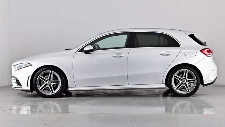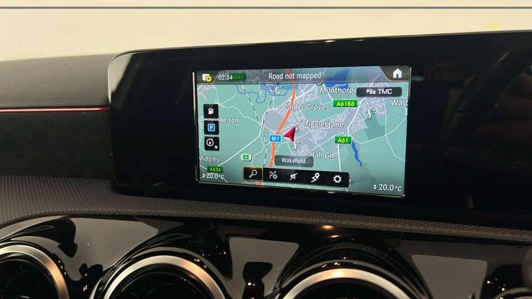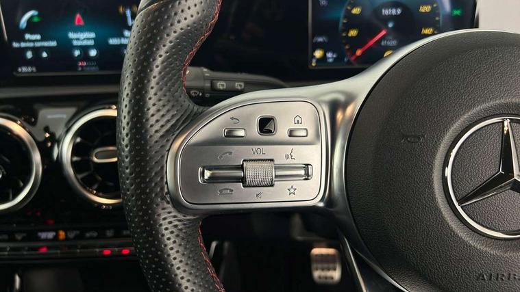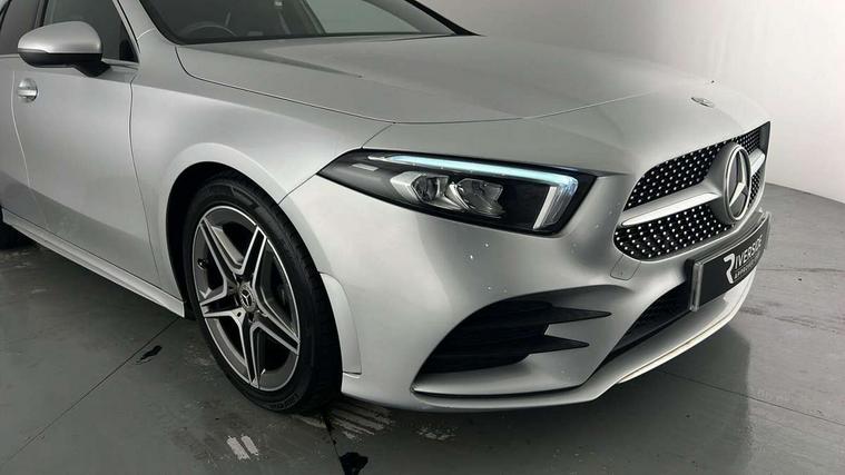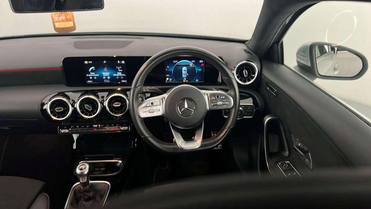 180 degree rear view camera with parking guidelines, 7" colour screen in instrument panel, 7" touchscreen media display, Active lane keep assist, Attention assist, Brake pad wear indicator warning light, Car wash mode, Cruise control + speed limiter, Direct steering, Dual bluetooth interfaces, DYNAMIC SELECT with a choice of driving modes (ECO, Comfort, Sport and Individual), ECO start/stop function, Fluid level warning indicator for fuel, oil, coolant and washer fluid, Hard-disk navigation, Hey Mercedes Voice activation, Lamp failure indicator, Mercedes me connect including emergency call system, accident recovery, breakdown and maintenance management, Outside temperature gauge, Owners manual in English, Pre-installation for private car sharing, Pre-installation for Vehicle Monitoring, Pre-installation for Vehicle Setup, Preinstallation for Mercedes Benz link, Service indicator (ASSYST), Speed sensitive power steering, Trip computer, Lowered comfort suspension, Rear axle torsion beam, 2 USB ports (type C) in rear stowage compartment and one in front of center console, 6 speakers, DAB Digital radio, MBUX multimedia system with DAB digital radio and touchpad including satellite navigation, Mercedes-Benz sound system - 100W, 4 Electric Front and Rear windows, Adaptive brake lights, AMG bodystyling - Front apron with splitter in chrome, rear apron with chrome trim and chrome visible trim elements in tailpipe, Black weather strip, Body colour bumpers, Body colour door handles, Body colour side skirt, Body coloured door mirrors, Chrome beltline trim, Diamond radiator grille with chrome pins and silver louvre + chrome insert, Electric adjustable and heated door mirrors with integrated LED side indicators, Exhaust system - Twin visible tailpipes in polished stainless steel, Headlamp assist automatic headlamp activation, Heated glass rear windscreen + timer control, LED high performance headlamps with integrated LED daytime running lights, LED tail lamp, LED third brake light, Privacy glass, Radio aerial, Rain sensing windscreen wipers with two sensitivity settings, Rear fog lights, Rear wiper, Window line trim strip in chrome, 3 Spoke flat bottom leather multi function steering wheel with perforated leather in grip area, 40:20:40 split folding rear seats, Artico man-made leather/Microfibre Dinamica upholstery with red contrast stitching, Auto Mercedes-Benz child seat recognition sensor, Black air vents with surround in silver chrome, Black roof lining, Brushed stainless steel sports pedals with rubber studs, Controller on centre console with chrome surround, Floor mats with stitched edging and AMG lettering, Front centre armrest with storage compartment, Front door sills with Mercedes Benz lettering, Front seat backs luggage nets, Front seat cushion length adjustment, Heated front seats, Height/reach adjustable steering column, Interior mirror with reading lamps in black and frameless, Manual height adjustable front seats, Rear head restraints, Seat occupancy sensor for front passenger seat, Sports seats with integrated headrests, Sunvisors with illuminated vanity mirrors, Touchpad on center console, Twin front cupholders, Two zone thermotronic luxury automatic climate control, Light and sight pack - A Class, Seat comfort pack - A Class, 3 rear 3 point seatbelts, ABS with Brake Assist, Active bonnet, Active brake assist includes forward collision warning system with autonomous braking, Adaptive brake assist with hold function and hill start assist, Black seatbelts, Childproof locks manually operated for rear doors and electrically operated for rear power windows, Crash responsive emergency lighting, Driver and passenger head and side airbags, Drivers knee airbag, Dual stage driver/passenger airbags, Electronic parking brake, ESP curve dynamic assist, ESP with ASR, Front and rear seatbelt reminder, Front brake callipers with Mercedes Benz lettering, ISOFIX and top tether child seat fixing points in two outer rear seats, Tyre pressure monitoring system, Warning triangle and first aid kit, Window airbags, Alarm system/interior protection/immobiliser, Keyless Go, Remote central locking and crash sensor with emergency opening function, Urban guard vehicle protection system with immobiliser and interior protection, Dinamica microfibre trim in black, 18" AMG 5 twin spoke light alloy wheels in titanium grey with highsheen finish, Summer tyres, Tirefit sealant kit,