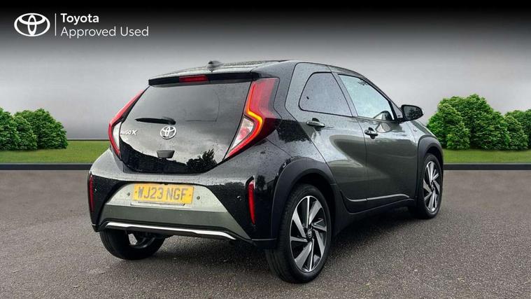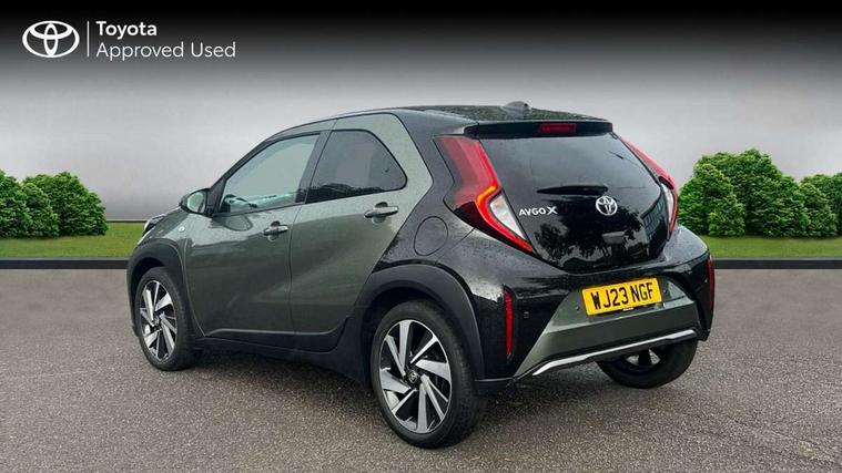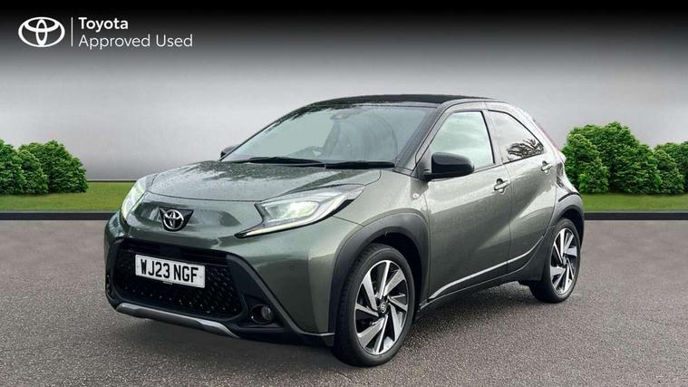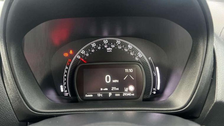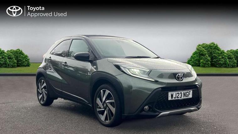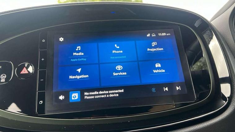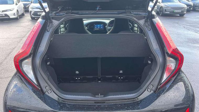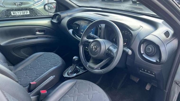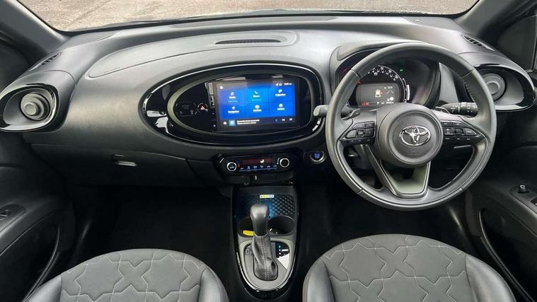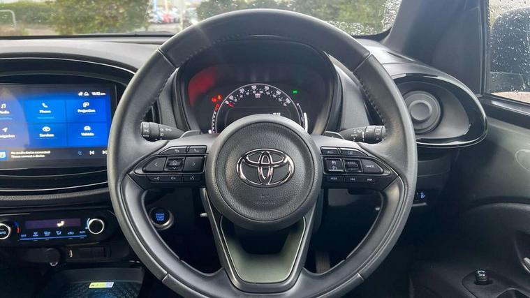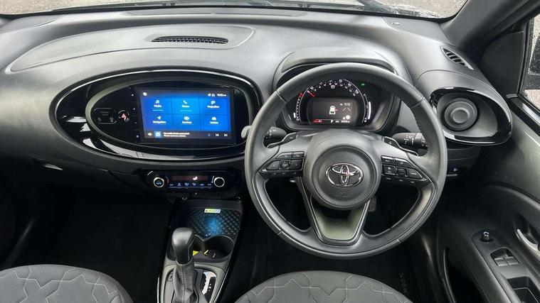 4.2" TFT colour screen, Adjustable speed limiter, Analogue speedometer, Bluetooth connectivity, Digital tachograph, Driver attention alert system, eCall emergency call system, ECO-driving indicator, Electric power steering, Front and rear parking sensors with auto brake, Intersection turn assist, Key reminder warning, Noise reduction kit, Pre collision system with emergency steering assist, Remote boot door release on key, Reversing camera with static guide lines, Smart entry and push button start, Speed limit display, Start and stop, Wireless charger, Wireless Smartphone Integration includes Apple CarPlay and Android auto, Vehicle Stability Control (VSC), 4 speakers, 9" HD multimedia display touch screen with Toyota smart connect, DAB digital audio broadcast, USB connector, Auto headlights, Auto wipers, Automatic headlights cut-off, Automatic high beam On/Off switch, Bicycle towing hook, Black fog light surrounds, Black side protection mouldings, Black wheel arch mouldings, Body colour door handles, Body coloured front bumper, Boot door scuff plate, Eclipse black rear bumper, Electric heated door mirrors, Follow me home headlights, Front and rear underruns in silver, Front fog lights, Front power windows, Gloss black door mirrors, Gloss black upper front grille, Headlight cut-off reminder, LED daytime running lights guide, LED front light guide, LED High mounted stop lamp, LED projector headlights, Manual day/night rear view mirror, Manual headlight levelling, Pagoda roof, Power adjustable door mirrors, Power back door, Privacy glass, Rain sensor, Rear combination lights LED bulb type, Rear side wing doors, Rear windscreen defogger, Rear windscreen wiper, Remote hazard lights system, Short antenna, Variable intermittent windscreen wipers, 12v power outlet - front, 2 seat bench in 2nd row, 3 spoke leather steering wheel, 50/50 split folding rear seat, Adhesive roof headlining, Adjustable speed limiter switch on steering wheel, Audio and telephone switches on steering wheel, Auto air conditioning, Black roof lining, Body colour satin anodised insert on steering wheel, Boot light, Centre room light, Chrome interior door handles, Chrome surround on air conditioning buttons, Clean air filter, Console box storage, Floor mats, Front and rear cup holders, Front head rest deco art, Front head restraints, Gear shift indicator, Height adjustable driver seat, Intelligent adaptive cruise control switch on steering wheel, ISOFIX child restraint system on rear seats, Lane departure alert switch on steering wheel, Leather gearshift knob, Light blue ambient lighting in centre console, Manual tilt steering wheel, Manually reclining and sliding driver seat, Manually reclining and sliding front passenger seat, Multimedia switches on steering wheel, Paddle shift levers on steering wheel, Partial synthetic leather upholstery, Pollen filter, Rear door pockets, Rear head restraints, Remote air-conditioning system, Satin silver insert on gear shift knob, Single compartment glovebox with lights, Single front passenger seat, Soft tonneau cover, Sun visors with mirror on driver and passenger side, Voice recognition switch on steering wheel, Toyota safety sense pack - Aygo X, Anti lock braking system + Electronic brake force distribution, Child safety door lock, Emergency brake light signal (EBS), Hill start assist control (HAC), Passenger airbag on/off switch, Seat belt reminder for front and rear seats, Supplement restraints system (SRS) - 6 airbags, Traction control, Tyre pressure warning system, Immobiliser, Remote power door locks, Black wheel centre caps, Tyre repair kit,