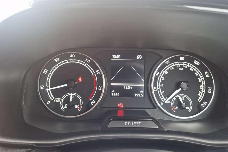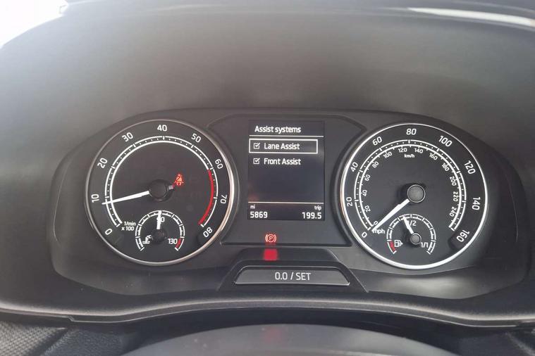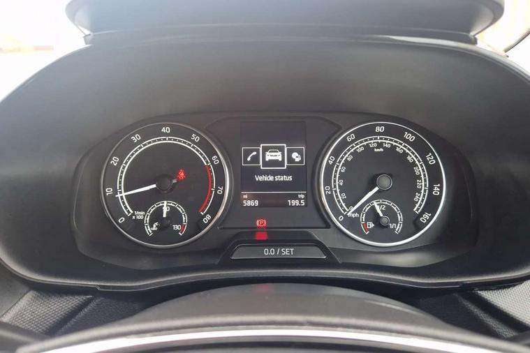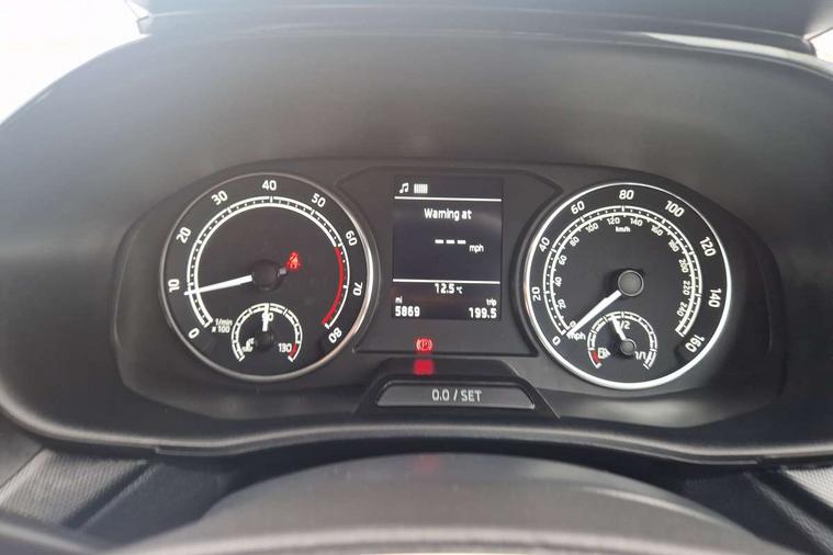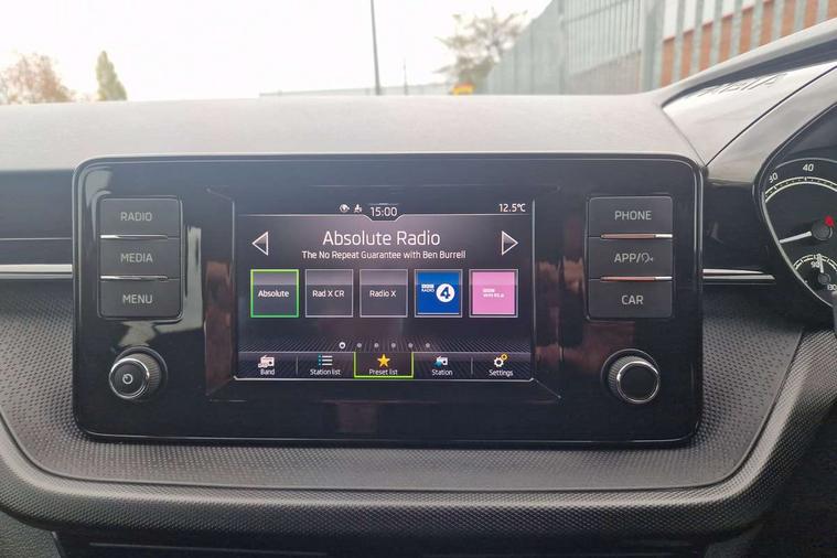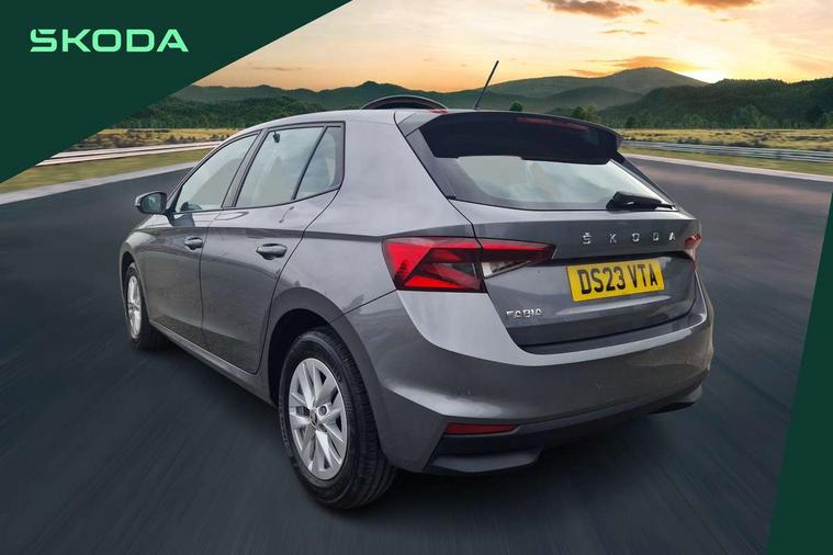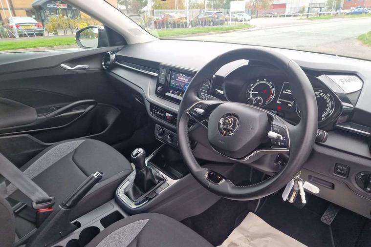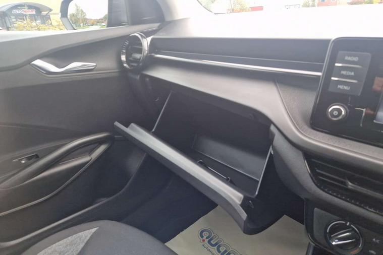 Bluetooth connection, Driver alert system - DAS, Electromechanical power steering, Exterior temperature gauge, Lane assist including road edge detection, Multifunction trip computer in black and white, Service interval indicator, Speed limiter, 2x USB-C in the front (for data transmission and charging), 4 speakers in front, Auxiliary socket for external MP3 player, DAB digital radio reception, Radio Swing with 6.5" colour display, Basic LED Headlights, Basic rear lights, Body colour door mirrors, Body coloured bumpers, Dimming rear view mirror with black frame, Door mirror integrated indicators, Electrically adjustable and heated door mirrors, Electrically adjustable front windows with function auto up/down, Front fog lights, Front window wiper intermittent control, Headlight range control - Automatic, Ice scraper in fuel cap, LED daytime running lights with coming and leaving home feature, Mechanical adjustable rear windows, Rain sensor, Rear LED fog light, Rear side wing doors, Rear window wiper with washing nozzles, Roof mounted spoiler, SKODA tailgate lettering in chrome, Third brake light, 2 reading lights in front and 2 reading lights in rear, 2 spoke leather multifunction steering wheel, 3 rear headrests, Backrest split and folding, Central console with fixed cup holder and storage box, Chrome handbrake release button, Fabric upholstery, Gearshift knob/handle in leather, Grain satin black interior door handles, Hand brake lever handle in leather, Height adjustable front headrests, Height adjustable front seats, Height adjustable steering wheel, ISOFIX and TopTether anchorage points to the outer rear seats, ISOFIX and TopTether on the front passenger seat, Luggage compartment lighting, Manual air conditioning, Manually adjustable lumbar support in front seats, Pollen filter, Rear seat bench unsplit, Single front passenger seat, Storm grey headlining, Sun visors with mirror and airbag label on passenger side, Ticket holder, 3-point height adjustable front seats belts with pretensioner and force limiter, Automatic warning lights in case of crash, Driver and passengers airbag with switch off function, e-Call+, ESC including ABS, MSR, ASR, EDS, HBA and XDS, Front and rear seat belt warning, FRONT ASSIST (AEB City and AEB Inter Urban), Front side airbags, Head airbags, One tone horn, Pedestrian protection, Three rear 3-points safety seat belts with pretensioner and force limiter including stop function for outer rear seat belts, Tyre pressure monitoring system, Anti-theft alarm system including immobiliser, interior monitoring, backup horn, and towing protection, Central locking with radio remote control, interior controls, SAFE function and 2 foldable keys, Black painted air vents, Glossy black decorative trim, Grain satin black central console cover, Grain satin black lower decorative trim, Satin black door and side trim panel in front, Anti-theft wheel bolts protection, Super-low rolling resistance tyres,