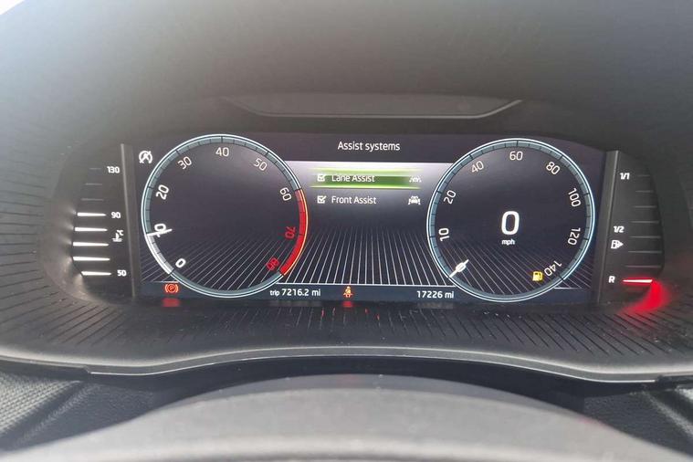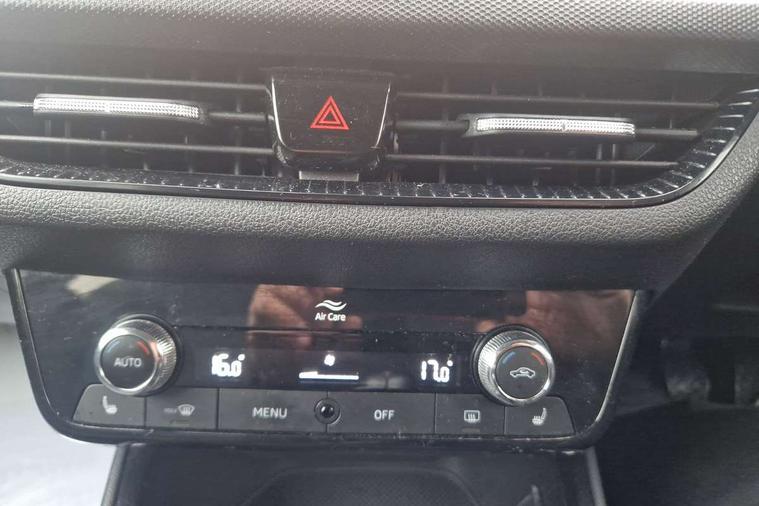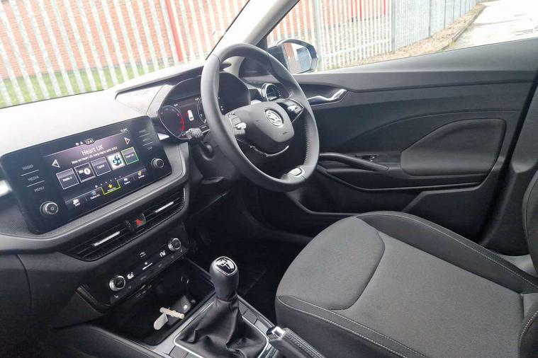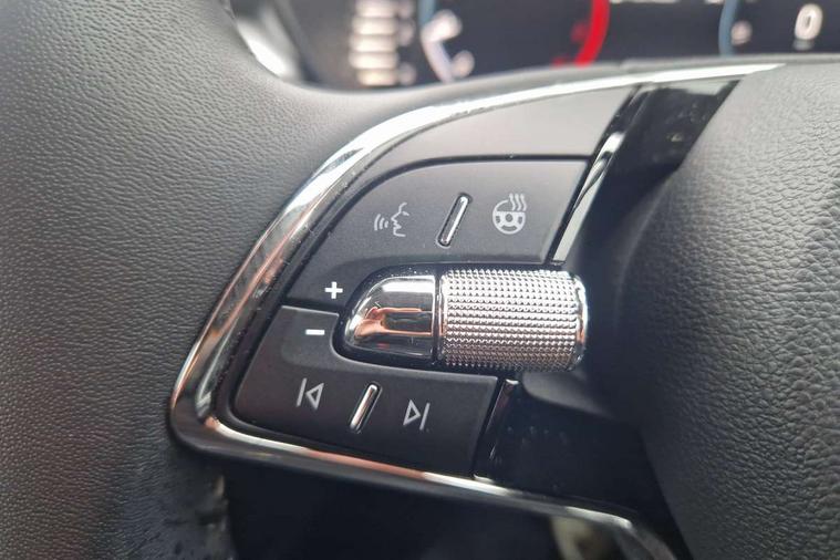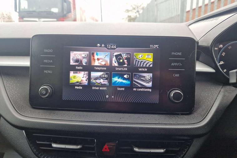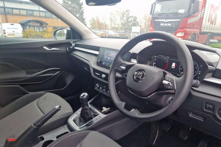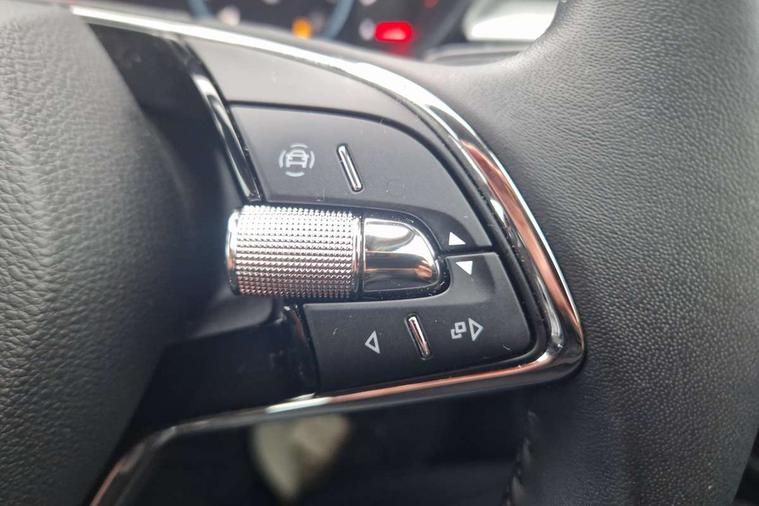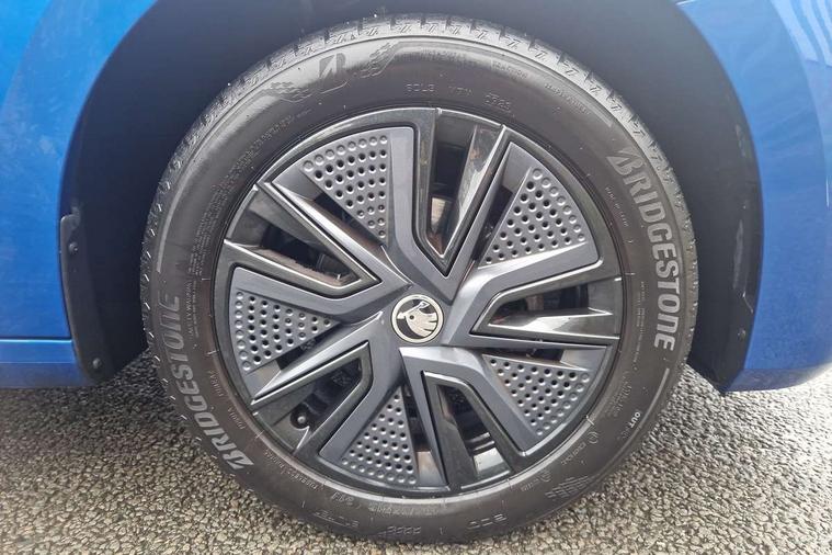 Bluetooth connection, Driver alert system - DAS, Electromechanical power steering, Exterior temperature gauge, Lane assist including road edge detection, Service interval indicator, Virtual cockpit with 10.25" colour display, 2x USB-C in the front (for data transmission and charging), 6 Speakers (4 in front and 2 in rear), Auxiliary socket for external MP3 player, Bolero radio with 8" colour display, DAB digital radio reception, Basic rear lights, Body coloured bumpers, Dimming rear view mirror with black frame, Door mirror integrated indicators, Electrically adjustable and heated door mirrors, Electrically adjustable front windows with function auto up/down, Front window wiper intermittent control, Headlight range control - Automatic, Ice scraper in fuel cap, LED daytime running lights with coming and leaving home feature, Mechanical adjustable rear windows, Privacy glass, Rear LED fog light, Rear side wing doors, Rear window wiper with washing nozzles, Roof colour door mirrors, Roof mounted spoiler, SKODA tailgate lettering in chrome, Third brake light, 3 rear headrests, Backrest split and folding, Central console with fixed cup holder and storage box, Chrome handbrake release button, Fabric upholstery, Gearshift knob/handle in leather, Grain satin black interior door handles, Hand brake lever handle in leather, Height adjustable front headrests, Height adjustable steering wheel, ISOFIX and TopTether anchorage points to the outer rear seats, ISOFIX and TopTether on the front passenger seat, Luggage compartment lighting, Pollen filter, Rear seat bench unsplit, Single front passenger seat, Storm grey headlining, Sun visors with mirror and airbag label on passenger side, Ticket holder, Umbrella in drivers door, 3-point height adjustable front seats belts with pretensioner and force limiter, Automatic warning lights in case of crash, Driver and passengers airbag with switch off function, e-Call+, ESC including ABS, MSR, ASR, EDS, HBA and XDS, Front and rear seat belt warning, FRONT ASSIST (AEB City and AEB Inter Urban), Front side airbags, Head airbags, One tone horn, Pedestrian protection, Three rear 3-points safety seat belts with pretensioner and force limiter including stop function for outer rear seat belts, Tyre pressure monitoring system, Anti-theft alarm system including immobiliser, interior monitoring, backup horn, and towing protection, Anodized cross line upper decorative trim, Colour Edition air vents, Grain satin black central console cover, Grain satin black lower decorative trim, Satin black door and side trim panel in front, Anti-theft wheel bolts protection, Super-low rolling resistance tyres,