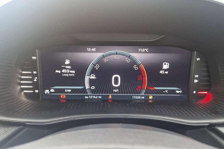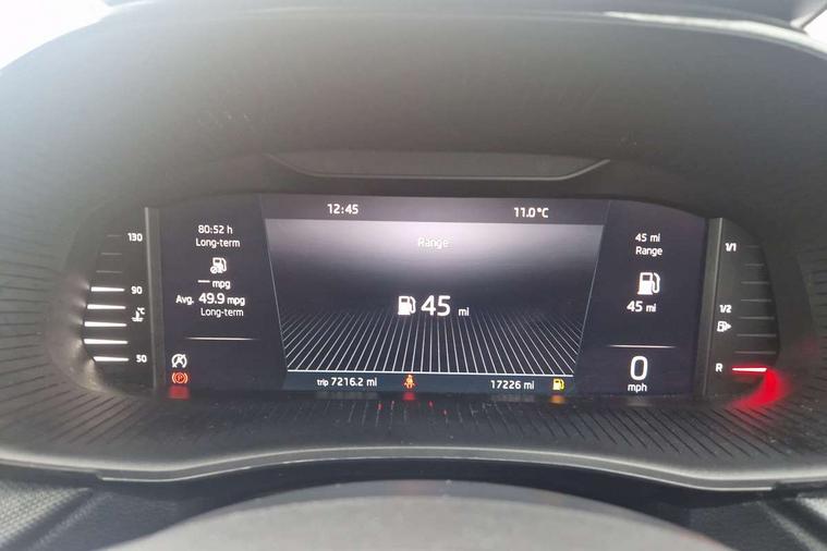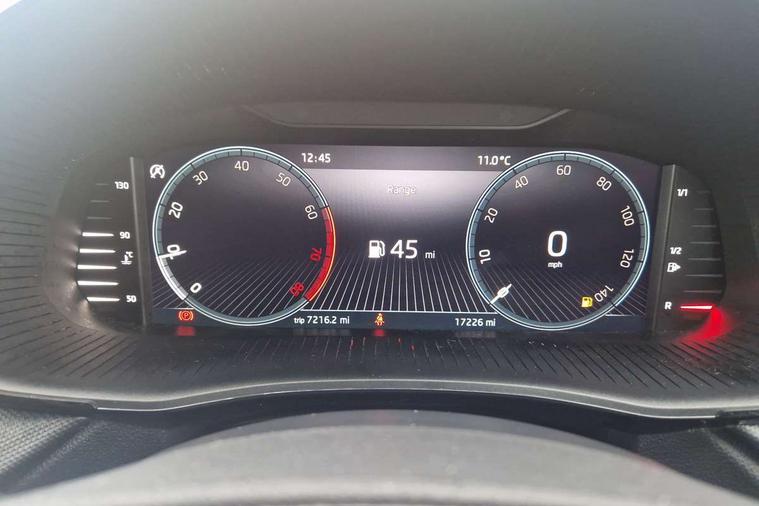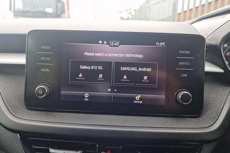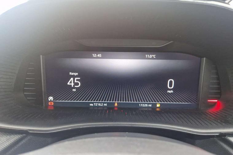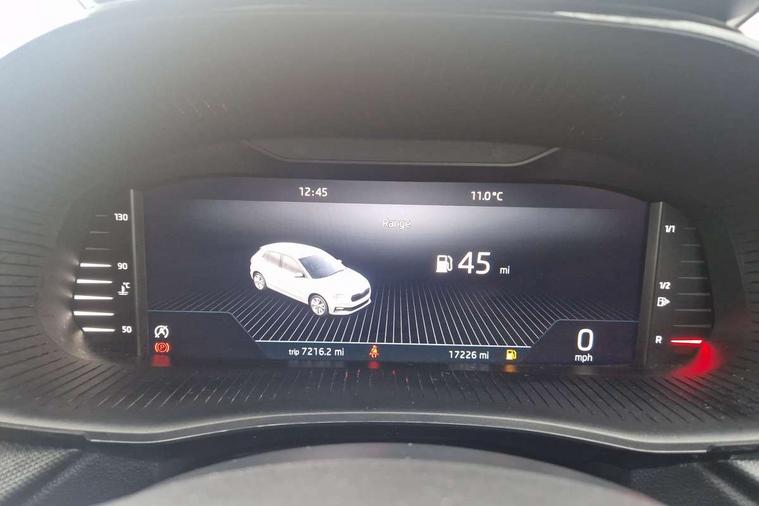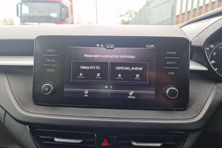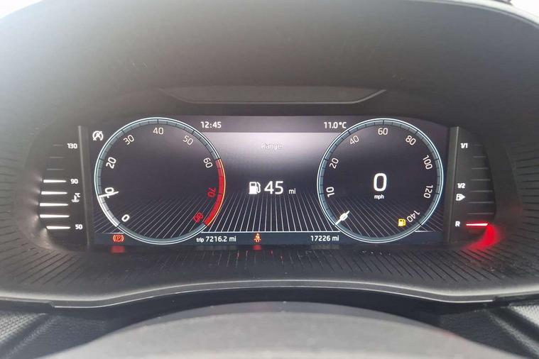 Bluetooth connection, Driver alert system - DAS, Electromechanical power steering, Exterior temperature gauge, Lane assist including road edge detection, Service interval indicator, Virtual cockpit with 10.25" colour display, 2x USB-C in the front (for data transmission and charging), 6 Speakers (4 in front and 2 in rear), Auxiliary socket for external MP3 player, Bolero radio with 8" colour display, DAB digital radio reception, Basic rear lights, Body coloured bumpers, Dimming rear view mirror with black frame, Door mirror integrated indicators, Electrically adjustable and heated door mirrors, Electrically adjustable front windows with function auto up/down, Front window wiper intermittent control, Headlight range control - Automatic, Ice scraper in fuel cap, LED daytime running lights with coming and leaving home feature, Mechanical adjustable rear windows, Privacy glass, Rear LED fog light, Rear side wing doors, Rear window wiper with washing nozzles, Roof colour door mirrors, Roof mounted spoiler, SKODA tailgate lettering in chrome, Third brake light, 3 rear headrests, Backrest split and folding, Central console with fixed cup holder and storage box, Chrome handbrake release button, Fabric upholstery, Gearshift knob/handle in leather, Grain satin black interior door handles, Hand brake lever handle in leather, Height adjustable front headrests, Height adjustable steering wheel, ISOFIX and TopTether anchorage points to the outer rear seats, ISOFIX and TopTether on the front passenger seat, Luggage compartment lighting, Pollen filter, Rear seat bench unsplit, Single front passenger seat, Storm grey headlining, Sun visors with mirror and airbag label on passenger side, Ticket holder, Umbrella in drivers door, 3-point height adjustable front seats belts with pretensioner and force limiter, Automatic warning lights in case of crash, Driver and passengers airbag with switch off function, e-Call+, ESC including ABS, MSR, ASR, EDS, HBA and XDS, Front and rear seat belt warning, FRONT ASSIST (AEB City and AEB Inter Urban), Front side airbags, Head airbags, One tone horn, Pedestrian protection, Three rear 3-points safety seat belts with pretensioner and force limiter including stop function for outer rear seat belts, Tyre pressure monitoring system, Anti-theft alarm system including immobiliser, interior monitoring, backup horn, and towing protection, Anodized cross line upper decorative trim, Colour Edition air vents, Grain satin black central console cover, Grain satin black lower decorative trim, Satin black door and side trim panel in front, Anti-theft wheel bolts protection, Super-low rolling resistance tyres,