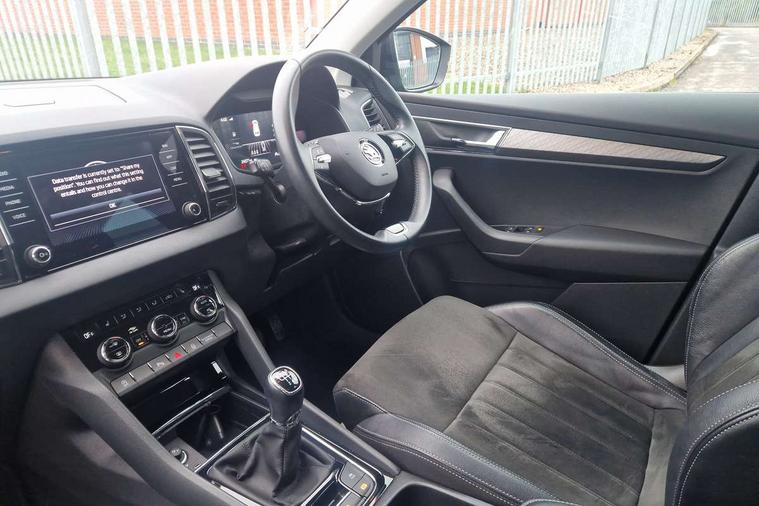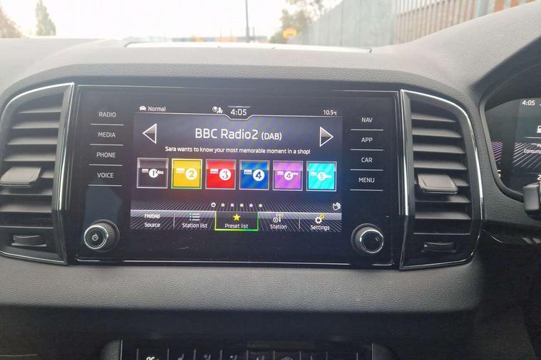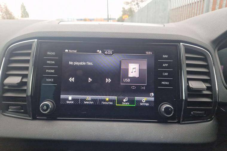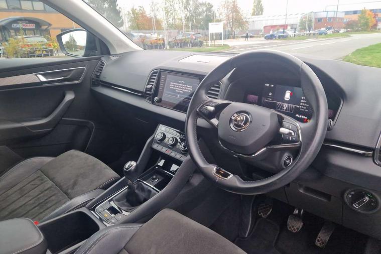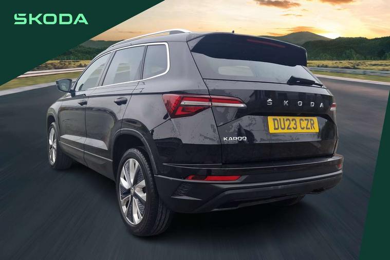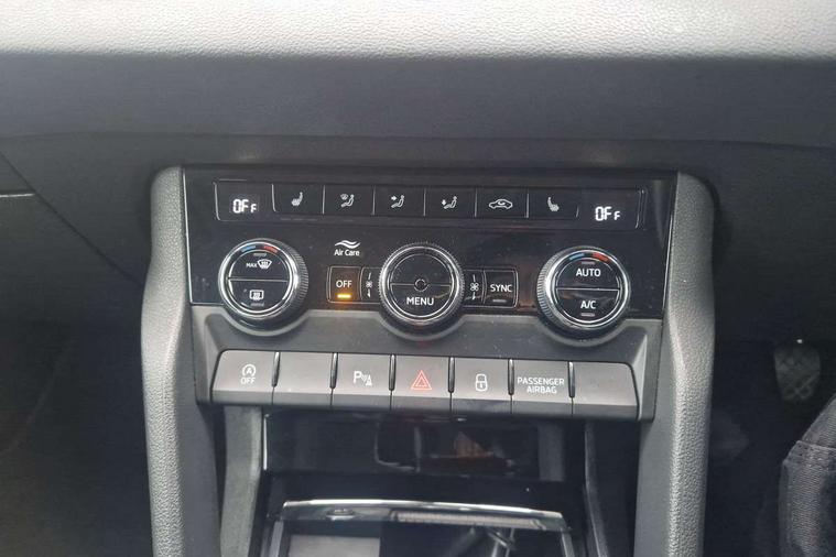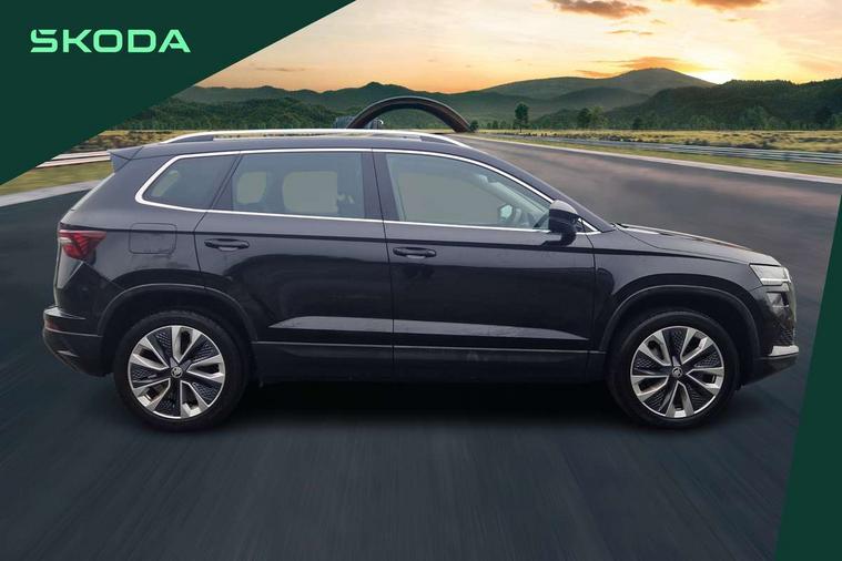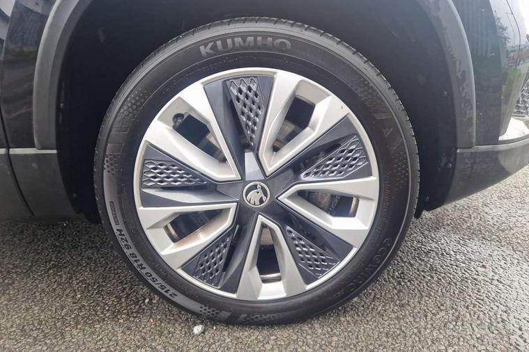 8" Digital display, Care connect, Driver fatigue sensor, Emergency services call system, Outside temperature gauge, Service interval indicator, SmartLink wireless for Apple and wired for Android, Start/stop system with regenerative braking, USB C Port x 2 in front centre console, Diesel particulate filter, 8 Speakers, DAB radio with Bluetooth, USB connection, Acoustic glass, Aero front windscreen wipers with intermittent function, Auto dimming rear view mirror with light and rain sensors, Black electric window control buttons, Body colour door mirrors and handles, Dynamic headlight range control with cornering light function, Electric front and rear windows with child proof lock, Heated rear windscreen, LED daytime running lights, LED rear lights with high functionality welcome effect and dynamic indicators, Light assistant (coming/leaving home/tunnel light), Plastic scuff plates, Privacy glass, Rear side wing doors, Rear spoiler, Rear window wiper with washer system and intermittent control, Safety reflectors on front doors, Third brake light, 1.5 litre bottle holders in driver and front passenger door panels, 12V socket in boot, 12v socket in front centre armrest with storage compartment and rear air vents, 2 Folding hooks and nets in boot, 2 spoke leather heated multifunction steering wheel, 2 x Tablet holder, 3 rear height adjustable headrests, 3 seat bench in 2nd row, 4 foldable roof handles with rear coat hooks, Black floor carpet, Chrome inner door handles, Decorative door sills with KAROQ badging, Double sided boot floor, Foldable hooks in the boot, Front head restraints, Height adjustable front three point seats belts with tensioners, Height/reach adjust steering wheel, Ice scraper, Illuminated glovebox, Illuminated luggage compartment, Interior noise suppression, Isofix child seat preparation for front passenger seat, Isofix child seat preparation outer rear, Manual lumbar support for front seats, Pen holder, Pollen filter, Rear boot cover, Rear reading lights, Rubbish bin door, Safety vest holder, Single front passenger seat, Storage box in upper central dashboard closed, Sunvisors with illuminated vanity mirrors, Textile floor mats, Ticket holder, VarioFlex seats with standard rear seat release, Chrome roof rails + chrome pack - Karoq, Parking pack - Karoq, Automatic door unlocking in case of crash, Automatic fuel cut off in case of crash, Child locks on rear doors, Driver airbag, Electronic parking brake with auto hold function, Emergency rear braking signal, ESC including ABS, MSR, ASR, EDS, HBA, DSR, RBS, MKB and traction control, Front side airbags, Hill hold control, Knee airbags, Passenger airbag with switch-off function, Pedestrian monitor, Seatbelt reminder signalisation and pretensioner for all seats, Three point seatbelts rear, Two tone horn, Tyre pressure display, Tyre pressure monitor, Alarm with interior monitoring, back up horn and tilt sensor with safe function, Electronic engine immobiliser, Keyless entry and start/stop, Remote central locking with 2 remote folding keys, Chrome framed air vents, 18" Procyon silver alloy wheels with anthracite aero inserts, Anti-theft wheel bolts protection, Storage on wheel cover, Tool kit,