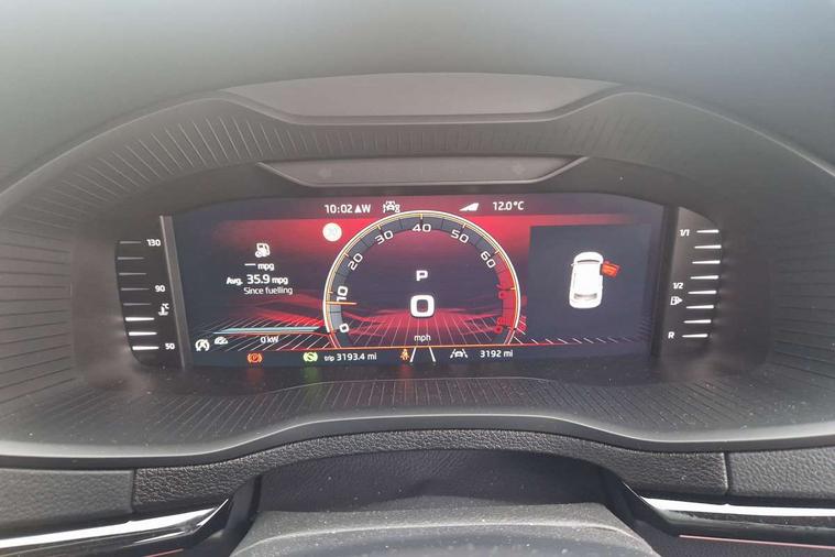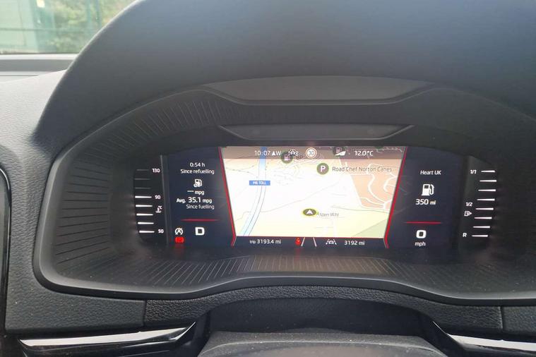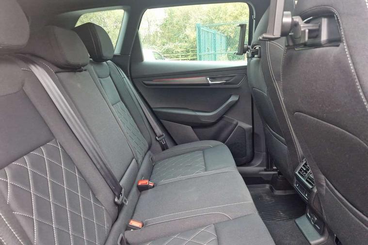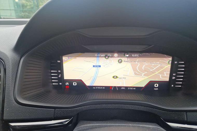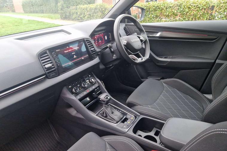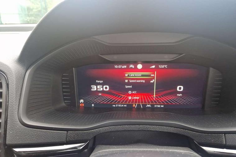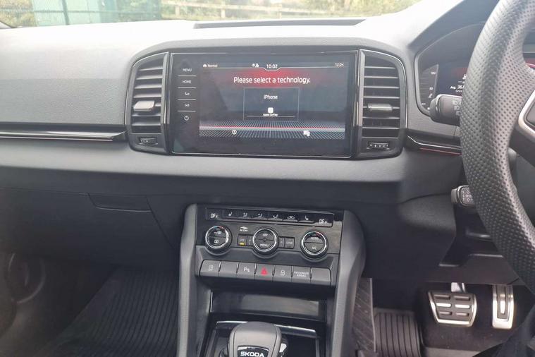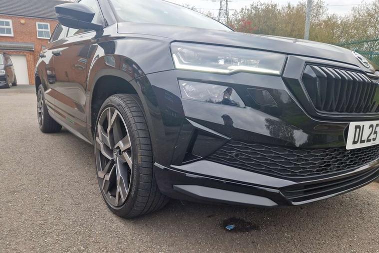 Advanced driver attention and drowsiness monitor, Emergency services call system, Outside temperature gauge, Sensor for driver assistance systems, Service interval indicator, SmartLink wireless for Apple and wired for Android, Start/stop system with regenerative braking, Traffic sign recognition, USB C Port x 2 in front centre console, Virtual Cockpit - 10.25" digital display, Virtual pedal with electrically operated boot door, Wireless smartphone charging, DAB radio with Bluetooth, USB connection, Acoustic glass, Aero front windscreen wipers with intermittent function, Auto dimming rear view mirror with light and rain sensors, Black door mirrors, Black electric window control buttons, Black radiator grille, Black roof rails, Body colour door handles, Electric front and rear windows with child proof lock, Extended rear roof spoiler, Front door steps with SportLine logo, Heated rear windscreen, LED daytime running lights, LED rear lights with high functionality welcome effect and dynamic indicators, Light assistant (coming/leaving home/tunnel light), Panoramic sliding sunroof, Plastic scuff plates in door apertures, Privacy glass, Protective door side sills in body colour, Rear diffuser, Rear side wing doors, Rear window wiper with washer system and intermittent control, Safety reflectors on front doors, Skoda lettering on tailgate in black, Sportline badge on front fender, Sports front and rear bumpers, Third brake light, Unique dark chrome design logo on alloy wheels, 1.5 litre bottle holders in driver and front passenger door panels, 12V socket in boot, 12v socket in front centre armrest with storage compartment and rear air vents, 2 x Tablet holder, 3 rear height adjustable headrests, 3 seat bench in 2nd row, 3 spoke sports leather heated multifunction steering wheel with DSG paddles, 4 foldable roof handles with rear coat hooks, Black floor carpet, Cargo elements in boot, Chrome inner door handles, Foldable hooks in the boot, Front head restraints, Height adjustable front three point seats belts with tensioners, Height/reach adjust steering wheel, Ice scraper, Illuminated glovebox, Illuminated luggage compartment, Isofix child seat preparation for front passenger seat, Isofix child seat preparation outer rear, Manual lumbar support for front seats, Pen holder, Pollen filter, Rear backrest release from boot, Rear boot cover, Rear package tray, Rear reading lights, Rear seats fixed folding and divided 60:40, Rubbish bin door, Safety vest holder, Single front passenger seat, Skoda lettering on steering wheel, Sportline decorative inserts, Storage box in upper central dashboard closed, Sunvisors with illuminated vanity mirrors, Textile floor mats, Ticket holder, Titan black interior ceiling, Umbrella under passenger seat, Under passenger seat storage compartment, Columbus pack - Karoq, LED Interior lighting pack with Skoda welcome logo - Karoq, Light Pack - Karoq, Non Smokers pack, Performance pack - Karoq, Winter plus pack with heated front and rear seats - Karoq, Automatic door unlocking in case of crash, Automatic fuel cut off in case of crash, Driver airbag, Electronic parking brake with auto hold function, Emergency rear braking signal, ESC (incl. ABS+MSR+ASR+EDS+HBA+DSR+RBS+MKB), Front side airbags, Head airbags, Hill hold control, Knee airbags, Passenger airbag with switch-off function, Pedestrian monitor, Seatbelt reminder signalisation and pretensioner for all seats, Three point seatbelts rear, Two tone horn, Tyre pressure monitor, Alarm with interior monitoring, back up horn and tilt sensor with safe function, Electronic engine immobiliser, Keyless entry and start/stop, Remote central locking with 2 remote folding keys, Black air vent surround, Black centre console, carbon door decor, Satin black dashboard, Satin black door trim, 19" Sagittarius anthracite alloy wheels, Anti-theft wheel bolts protection, Breakdown and tool kit,