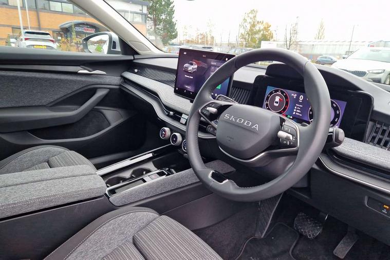 13" touchscreen display with satellite navigation, 4x USB-C ports (2x in front centre console and 2x in rear) (45W), Adaptive cruise control with speed assist, lane assist plus and traffic tram assist, Blind spot detection with door exit warning, Bluetooth system, CareConnect and Emergency Call, ChatGPT functionality, Driver fatigue sensor, Front assist with extended predictive pedestrian protection, Front cross traffic assist, PAS, Quick start all heating software functionality, Stop/start engine system, Traffic sign recognition, Turn assist with evasive assistance, Virtual Cockpit - 10.25" digital display, Voice control system, Washer for rear camera, Wireless charging for one smartphone (15W) with cooling function, Wireless smartlink apple carplay, SmartLink+ android auto, 8 Speakers, DAB Digital radio, Display cleaner, FM radio connection, Web radio connection, Acoustic side windows and interior noise suppression, Backdrop lighting, Body colour door handles, Body coloured door mirrors, Chrome window surround, Dark chrome grille surround, Electrically adjustable, heated, folding and driver side auto-dimming door mirrors with integrated indicators and logo projection, Frameless auto-dimming rear view mirror with USB-C, Ice scraper in fuel tank cap, LED 3rd brake light, Light assist with High beam control, Light assistant (coming/leaving home/tunnel light), Privacy glass, Rear fog light (x1), Rear side wing doors, Unique dark chrome design logo on alloy wheels, Windscreen wipers with rain sensor, 12V socket 1x centre console 1x boot, 2x cargo elements in boot, 2x light in boot, 3 seat bench in 2nd row, 60:40 Split folding rear seats, Bottle holders in the front doors 1.5 litre bottle and rear 1.5 litre bottle, Cup holder in front with easy open mat, Front armrest with storage box, Front comfort seats, Heated front seats, Height adjustable front and rear head restraints, Illuminated glovebox, Interior lights with control switches, Isofix child seat fittings in outer rear and front passenger seats, LED front and rear reading lights, Single front passenger seat, Skoda lettering on steering wheel, Storage compartment with cover, Storage pockets on back of front seats, Sun visors with illuminated vanity mirrors, Ticket holder on A Pillar, Tri zone climate control, Umbrella in driver's door, 3 rear seatbelts, 8 Airbags - Front driver and passenger, front side driver and passenger, centre, curtain front and rear, drivers knee, Crew protect assist, Driver and passenger seatbelts with warning light, Electronic parking brake, ESC including ABS, EBV, MSR, ASR, EDS, HBA, DSR, RBS, CBC, multi-collision brake (MKB) and Auto hold, Hill hold assist, Power operated child lock in rear doors, Alarm with interior monitoring tilt sensor and back up horn, Backrest remote release from trunk, Electronic engine immobiliser, Keyless start/stop, Remote central locking with SAFE system, Third key, Decorative front door sills,
