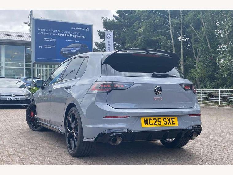 Activated carbon canister, Adaptive cruise control (ACC), Advanced driver attention and drowsiness monitor, Dynamic road sign display, E-Sim card for online connectivity, eCall emergency call system, Multi-color Digital cockpit pro, selection of different info profile possible, Multifunction front facing camera for distance control, Navigation system, Oncoming vehicle braking when turning including swerve support, Preparation for light assist system, Side assist blind spot lane change system, rear traffic alert and exit warning system, Speed limiter, Speedo, rev counter, electronic odometer, trip, service interval display, exterior temperature and fuel gauge, Traffic jam assist, Voice enhancer and voice control, Warning signal and warning light for front and rear seatbelts not fastened, We connect plus preparation, We connect preparation, Wireless app connect, Front differential lock, Petrol Particulate Filter, Start-stop system with battery regeneration (recuperation - energy recovery during braking), 2 USB C ports in front, 2 USB charging sockets on the centre console in the rear charging capacity upto 45W, Digital radio reception (DAB), Diversity antenna for FM reception, Gaming platform via car app, Infotainment system with 12.9" display, Mobile phone interface with inductive charging feature, 3rd brake light, Auto dimming rear view mirror, Automatic headlamp activation with Coming home and Leaving home feature, Body colour door handles, Bumpers in "Clubsport", air intake in honeycomb structure, Exterior mirrors convex on the left and aspherical on the right, Front and rear electric windows, Front fog lamps and cornering light, Heat insulating windshield made of laminated glass, LED separate daytime running light, Nameplate 'GTI' set, Rain sensor, Rear fog light on one side and reversing lights on both sides, Rear side wing doors, Rear windscreen washer and wiper with interval delay, Remote electrically foldable door mirrors, puddle lights and reverse activated passenger's door mirror, Welcome light with surround lighting, 12V socket in front centre console, 12V socket in luggage compartment, 3 rear head restraints, 3 seat bench in 2nd row, 30 colour ambient lighting, illuminated center console storage compartment in front, Air care climatronic 3 Zone automatic climate control with rear air conditioning control panel, Aluminium gearshift handle, Brushed stainless steel pedals, Chrome plated radiator grille inserts, air vent surrounds and light switch surrounds, Entry lights, Front + rear black carpet mats, Front centre armrest, ISOFIX anchors for child seats on outer rear bench seats and on front passanger seat compatible for i-Size, Luggage compartment lighting, Rear cupholder and loadthough, Single front passenger seat, Soul black instrument panel, Soul black roof lining, Split folding backrest with centre armrest and unsplit rear seat bench, Sun visors with illuminated vanity mirrors, Driver assistance pack - Golf Estate/Hatchback Auto, Technology park and comfort pro package - Golf Hatchback, 3 point height adj front seatbelts + pretensioners, 3 rear three point seatbelts, ABS, Autonomous emergency braking front assist with pedestrian and cyclist monitoring, Child locks on rear doors, Driver and front passenger airbag with front passenger airbag deactivation, Electronic parking brake with auto hold, ESC (Electronic Stability Control), Extended pedestrian protection measures, Front red brake calipers with GTI logo, Hill start assist, Rear disc brakes, Two tone horn, Tyre pressure loss indicator, Volkswagen roadside assistance, Anti theft wheel bolts, Preparation for alcohol interlock, Decorative inserts carbon grey for dashboard and front door trim panels, Sporty vehicle dynamics, Tool kit for tyre mobility set, Tyre mobility kit Includes 12V compressor and tyre sealant,