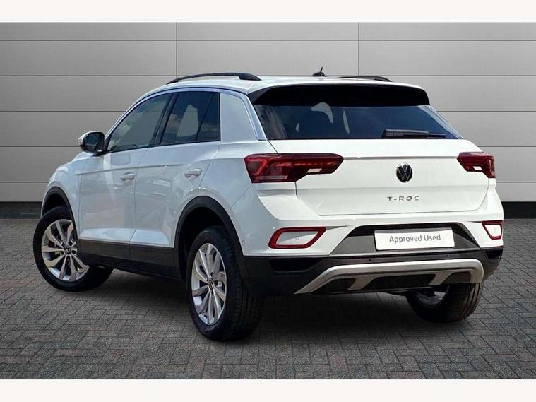 Advanced driver attention and drowsiness monitor, Dynamic road sign display, Emergency call service, Lane keeping system Lane Assist, Mobile phone interface, Modified key software - reduce switch off time for key status change to Long no motion, Online services, Park assist including front and rear parking sensors, Power assisted speed sensitive steering, Rear view camera, Service interval indicator, Tailgate/trunk lid release from outside, Think blue trainer driver tips and journey analysis, Warning sound and light for front seatbelts unfastened, Wireless app connect, Battery regeneration during braking, Front shock absorption, Rear shock absorption chassis with increased ride height, Start/stop function with battery regeneration, DAB Digital radio, Diversity antenna for FM reception, Music playback - MP3, WMA and AAC files, Premium USB cable in choice of either Apple or Android smartphone compatibility, SD card slot, Simultaneous pairing of 2 compatible mobile devices, Title and cover art display, We Connect and We Connect Plus functionality, Auto dimming interior rear view mirror, Automatic hazard lights activation under emergency braking, Automatic headlight control with LED separate daytime running lights with coming/leaving home function, Black roof rails, Body coloured bumpers and radiator grille with chrome trim and front fog lamps with chrome bezel, Body coloured exterior mirror housings and door handles, Electrically adjustable and heated door mirrors, Extended roof spoiler, Exterior mirrors aspherical on driver side, convex on front passenger side, External USB type C socket and charging sockets, Front windscreen wiper with intermittent wipe and 4 position delay, Heated rear window, LED 3rd brake light, LED rear combination lamps, LED rear number plate lights, Power windows with comfort operation and circuit breaker, Privacy glass for rear side windows and rear window, Rain sensor, Rear exhaust tailpipe, Rear fog light on one side and reversing lights on both sides, Rear side wing doors, Rear wash/wipe with intermittent wipe setting, Remote electrically foldable door mirrors, puddle lights and reverse activated passenger's door mirror, 12V power socket in centre console, 3 rear head restraints, 3 seat bench in 2nd row, 4 load lashing points in luggage compartment, Air care climatronic air conditoning system with active combination filter and 2-zone temperature control, Black stitching for floor mats, Ceramique roof liner, Cloth upholstery, Door and side trim panel in cloth, Drawer under drivers seat, Driver/front passenger seat height adjustment, Front centre armrest, Front comfort sports seats, Front cupholders x 2, Front reading light, Front seat back storage pockets, Glove compartment door with light, Instrument lighting, white adjustable panel illumination, Interior ambient lighting and surround lighting, Interior light delay, Isofix child seat preparation, Leather gearshift handle, Load-through provision with cup holder when folded down ('Unsplit rear seat bench, split folding backrest, with centre armrest), Luggage compartment lighting, Lumbar support for driver's and front passengers seat, Non-folding front passenger seat backrest, Single front passenger seat, Storage compartment in left and right luggage area, Storage compartment in rear doors, Storage compartments in driver and front passenger doors, Sunvisors with illuminated vanity mirrors, Variable boot floor, height adjustable and removable, Driver assistance pack without proactive passenger protection - T-Roc Life/Match, 3 point height adj front seatbelts + pretensioners, 3 point seatbelts in outer rear with ECE label, ABS, Child locks on rear doors, City emergency braking and pedestrian monitoring, Driver and front passenger airbag with front passenger airbag deactivation, Driver and front passenger safety-optimised head restraints, Drivers seatbelt reminder, Electronic parking brake, Electronic Stability Control (ESC) inc EDL (Electronic Differential Lock) and ASR (Traction Control), Front and rear passengers curtain airbag system including front side airbags, Front disc brakes, Hill start assist, Predictive pedestrian protection, Rear disc brakes, Two tone horn, Tyre pressure loss indicator, Volkswagen roadside assistance, Alarm with interior protection, Keyless locking and starting system keyless access with safelock, Pewter matt decorative inserts for intrument panel, centre console and door panels at the front, Trims for alloy wheels,
