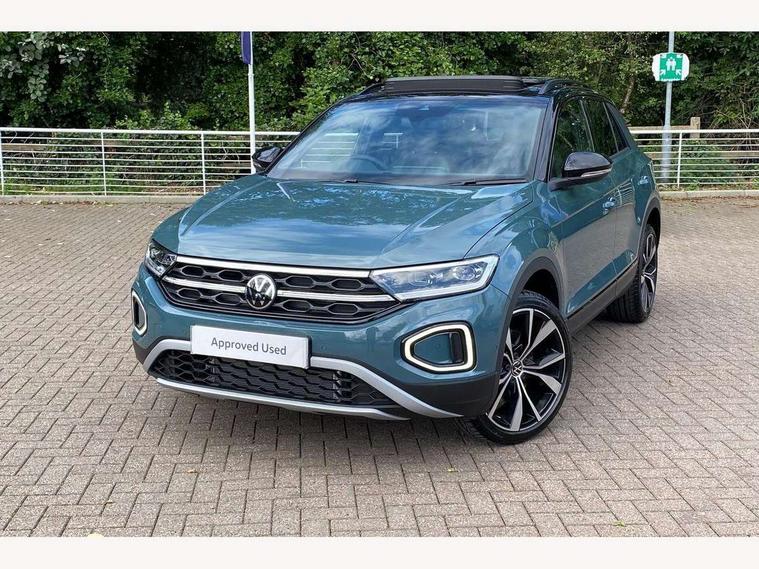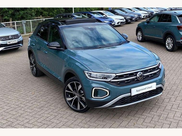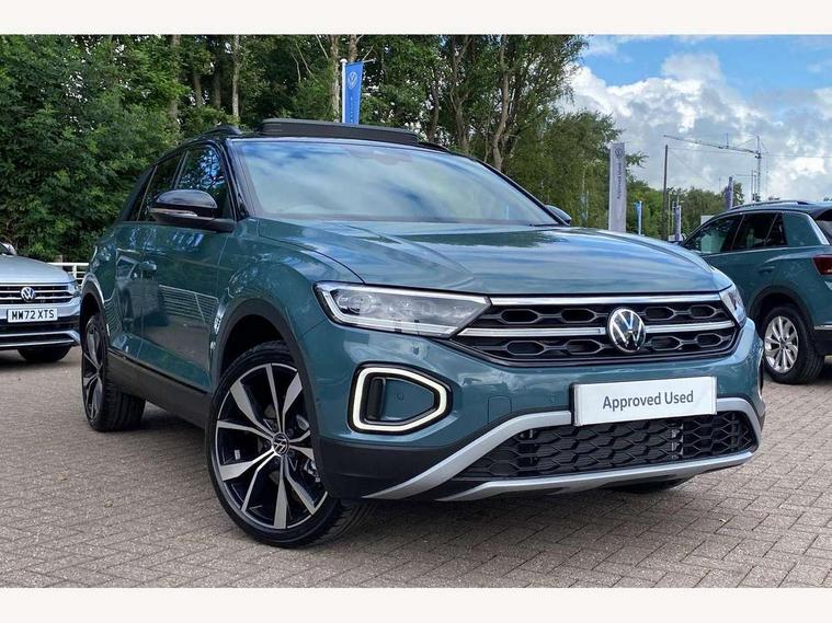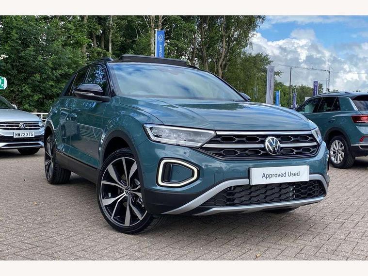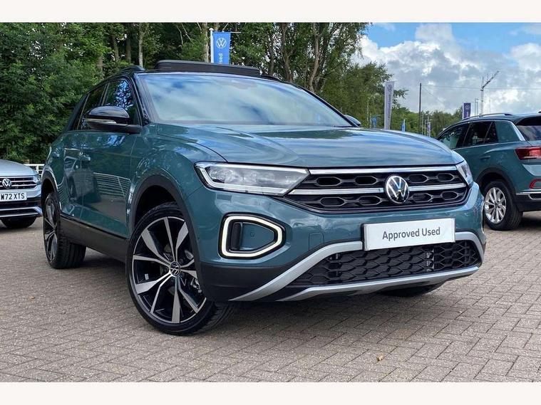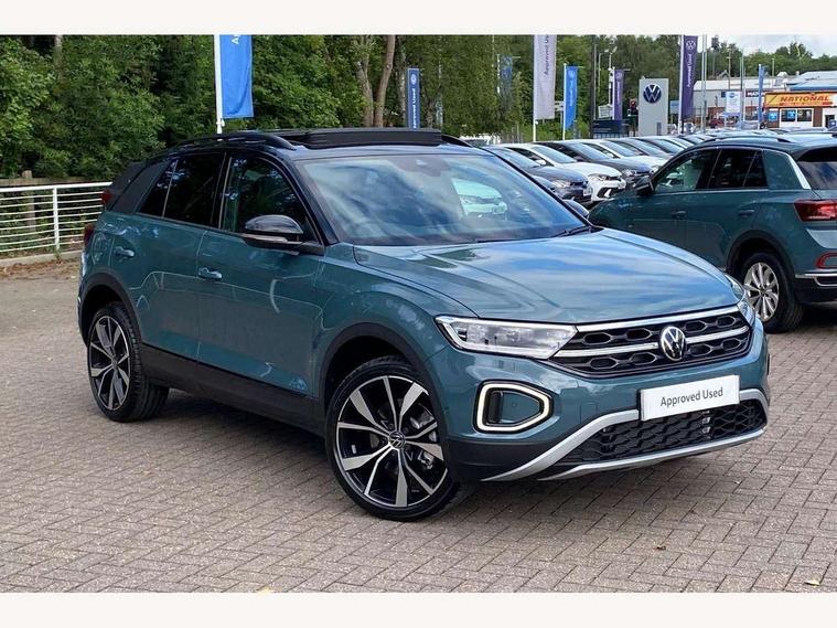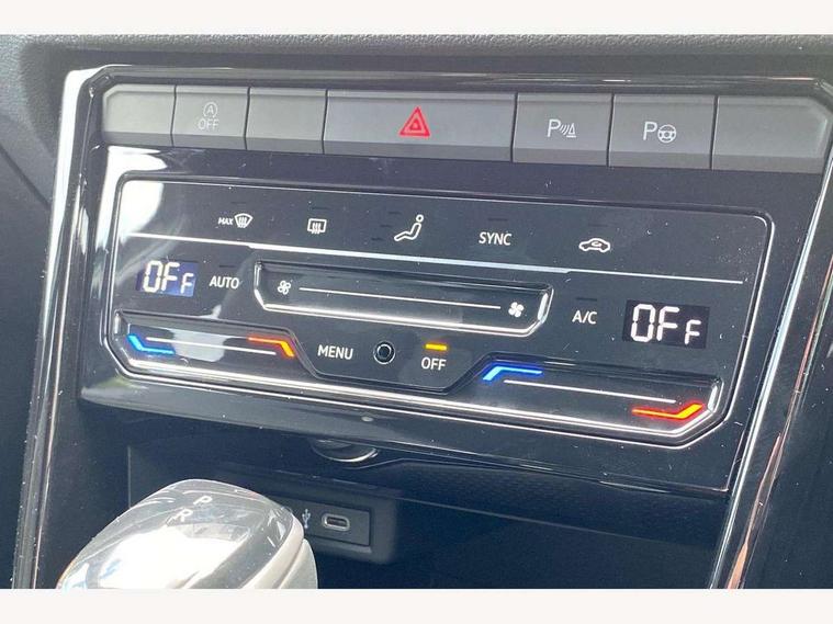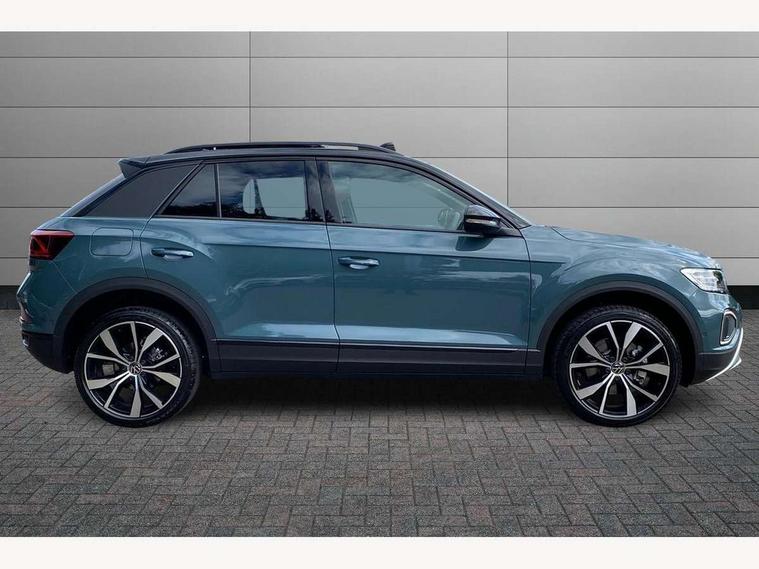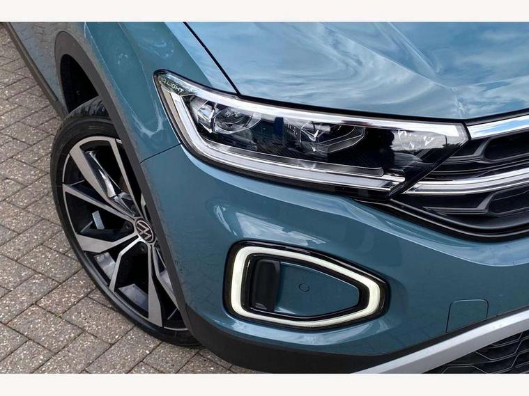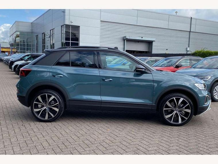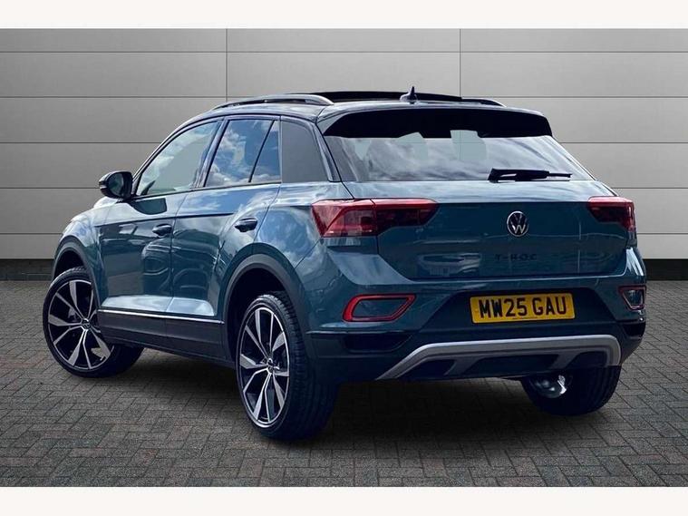 10.25" Digital cockpit pro, Advanced driver attention and drowsiness monitor, Dynamic road sign display, Emergency call service, Lane keeping system Lane Assist, Mobile phone interface, Modified key software - reduce switch off time for key status change to Long no motion, Online services, Park assist including front and rear parking sensors, Power assisted speed sensitive steering, Rear view camera, Service interval indicator, Tailgate/trunk lid release from outside, Think blue trainer driver tips and journey analysis, Warning sound and light for front seatbelts unfastened, Wireless app connect, Battery regeneration during braking, Start/stop function with battery regeneration, DAB Digital radio, Diversity antenna for FM reception, Front and rear 6 speakers, Music playback - MP3, WMA and AAC files, Premium USB cable in choice of either Apple or Android smartphone compatibility, SD card slot, Simultaneous pairing of 2 compatible mobile devices, Title and cover art display, We Connect and We Connect Plus functionality, Adhesive film in carbon look on the C-pillars, Advanced dynamic light assist for LED matrix headlights, Auto dimming interior rear view mirror, Automatic hazard lights activation under emergency braking, Black roof rails, Body colour sports bumpers with silver metallic underbody fascia, Body coloured exterior mirror housings and door handles, Dynamic cornering light, Dynamic headlight range control with self adjusting whilst driving, Electrically adjustable and heated door mirrors, Extended roof spoiler, Exterior ambient lighting, Exterior mirrors aspherical on driver side, convex on front passenger side, External USB type C socket and charging sockets, Front windscreen wiper with intermittent wipe and 4 position delay, Heated rear window, Illuminated front grille, IQ LED matrix headlights, LED 3rd brake light, LED rear number plate lights, LED rear tail lights with dynamic turn signal, LED separate daytime running light, Light mode for poor weather, rain, fog or snow, Power windows with comfort operation and circuit breaker, Privacy glass for rear side windows and rear window, Rain sensor, Rear exhaust tailpipe, Rear fog light on one side and reversing lights on both sides, Rear side wing doors, Rear wash/wipe with intermittent wipe setting, Remote electrically foldable door mirrors, puddle lights and reverse activated passenger's door mirror, Tilting and sliding panoramic sunroof with rear panoramic sunroof, 12V power socket in centre console, 3 rear head restraints, 3 seat bench in 2nd row, 4 load lashing points in luggage compartment, Air care climatronic air conditoning system with active combination filter and 2-zone temperature control, Black roof lining, Chrome plated radiator grille inserts, air vent surrounds and light switch surrounds, Door and side trim panel with leatherette insert, Drawer under drivers seat, Front + rear carpet mats, Front centre armrest, Front comfort sports seats, Front cupholders x 2, Front footwell illumination, Front seat back storage pockets, Glove compartment door with light, Instrument lighting, white adjustable panel illumination, Interior ambient lighting and surround lighting, Interior light delay, Isofix child seat preparation, Leather gearshift handle, LED interior light with switch off delay/dimmer and 2 front/rear LED reading lights, Load-through provision with cup holder when folded down ('Unsplit rear seat bench, split folding backrest, with centre armrest), Luggage compartment lighting, Non-folding front passenger seat backrest, Single front passenger seat, Storage compartment in left and right luggage area, Storage compartment in rear doors, Storage compartments in driver and front passenger doors, Sunvisors with illuminated vanity mirrors, Variable boot floor, height adjustable and removable, Black design pack - T-Roc style design, Driver assistance pack without proactive passenger protection - T-Roc, Easy open package with safelock - T-Roc, 3 point height adj front seatbelts + pretensioners, 3 point seatbelts in outer rear with ECE label, ABS, Child locks on rear doors, City emergency braking and pedestrian monitoring, Driver and front passenger airbag with front passenger airbag deactivation, Driver and front passenger safety-optimised head restraints, Drivers seatbelt reminder, Electronic parking brake, Electronic Stability Control (ESC) inc EDL (Electronic Differential Lock) and ASR (Traction Control), Front and rear passengers curtain airbag system including front side airbags, Predictive pedestrian protection, Rear disc brakes, Two tone horn, Tyre pressure loss indicator, Volkswagen roadside assistance, Black decorative trims, Piano black decorative inserts in dashboard and front door trim panels, 19" Misano black diamond turned alloy wheels with low rolling resistance and anti theft wheel bolts, Tool kit, Trims for alloy wheels, Tyre mobility kit including compressor and sealing foam,