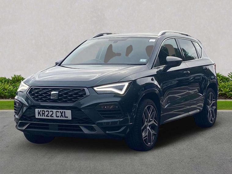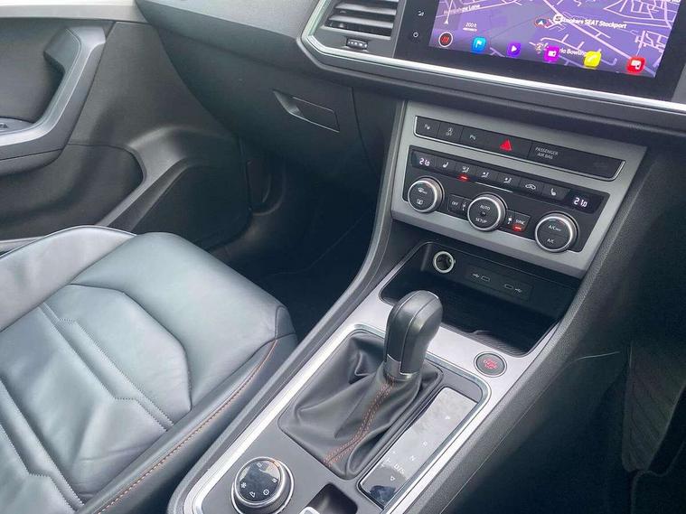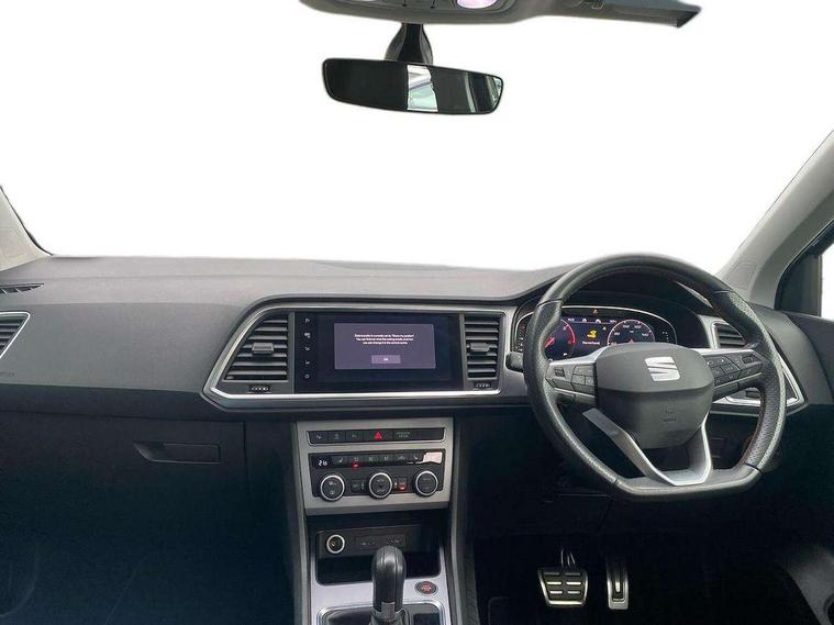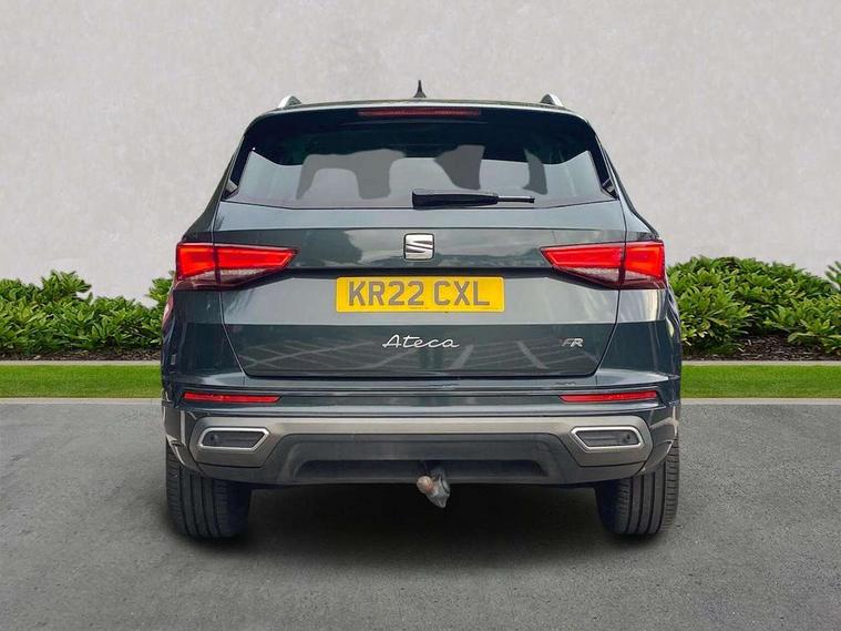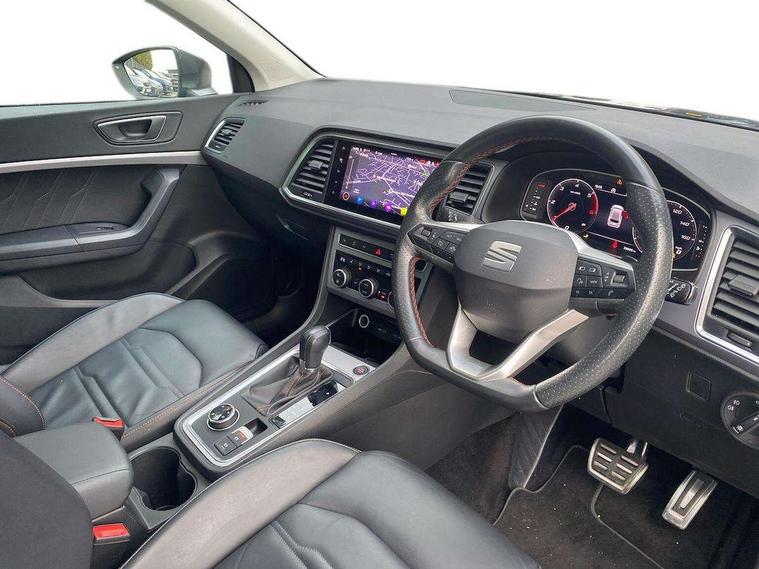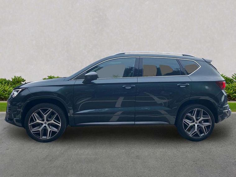 Cruise control system with speed limiter, Digital cockpit, E-call, Outside temperature gauge, Progressive power assisted steering, SEAT drive profile with driving experience button - Normal, Sport, Eco, Individual, off-road and snow modes, gearshift, steering and throttle response, Self parking functionality (includes front and rear parking sensors), Trip computer, Wireless full link smartphone integration, Wireless phone charger, Steering wheel mounted audio/phone controls, Body colour bumpers, Body coloured wheel arch surrounds, Chrome front grille frame, Chrome roof rails, Chrome side window trim, Dark tinted rear windows, Daytime running lights, Door mirrors with welcome light silhouette, Dynamic headlight range control with self adjusting whilst driving, Electric adjustable/heated/folding door mirrors, Front and rear electric windows, Full LED headlamps with lens and LED front fog lamps with cornering function, Illuminated aluminium front door sill, LED rear tail lights with dynamic indicators, Rear fog lights, Rear side wing doors, Rear spoiler, Rear wash/wipe, Simulated exhaust pipes in chrome frame, Third brake light, 12v socket in front, 3 seat bench in 2nd row, 60/40 split folding rear seat, Aluminium pedals, Dual zone climate control, Electric adjustable driver seat with lumbar adjustment, Front and rear head restraints, Front centre armrest, Front seat back storage pockets, Heated front seats, Height adjustable passenger seats with lumbar adjustment, ISOFIX points in outer rear seats with top tether anchorage points, Leather steering wheel and gear knob, Leather upholstery with Comfort seats, Rear armrest and easy back seat release mechanism from boot, Single front passenger seat, Steering wheel mounted gearshift paddles, Convenience pack - Ateca, Interior lighting pack - Ateca, Navigation system pack with DAB - Ateca, 3x3 point rear seatbelts, ABS, Traction control system (TCS), Electronic stability control (ESC) and Electronic differential lock system (XDS), Airbags - Driver and front passenger airbag with deactivation, front side, two curtain and driver's knee airbags, Electric parking brake with auto hold function, Front and rear seatbelt reminder, Front assist with autonomous emergency braking, Hill hold control, Manual rear child locks, Tiredness recognition system, Traction control, Tyre pressure monitoring system, Alarm, Keyless entry, Locking wheel bolts, Chrome interior detailing, 19" Exclusive machined alloy wheels with decorative inserts 36/7 in cosmo grey,