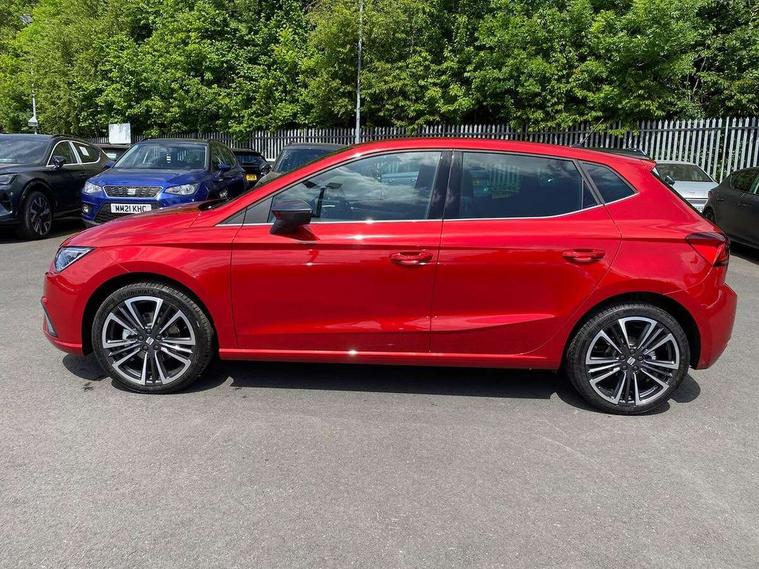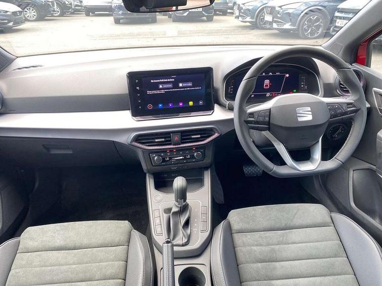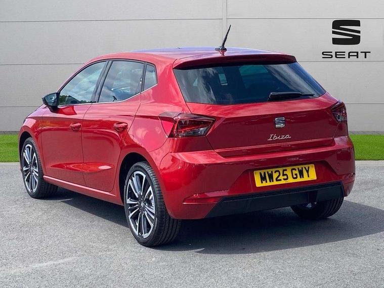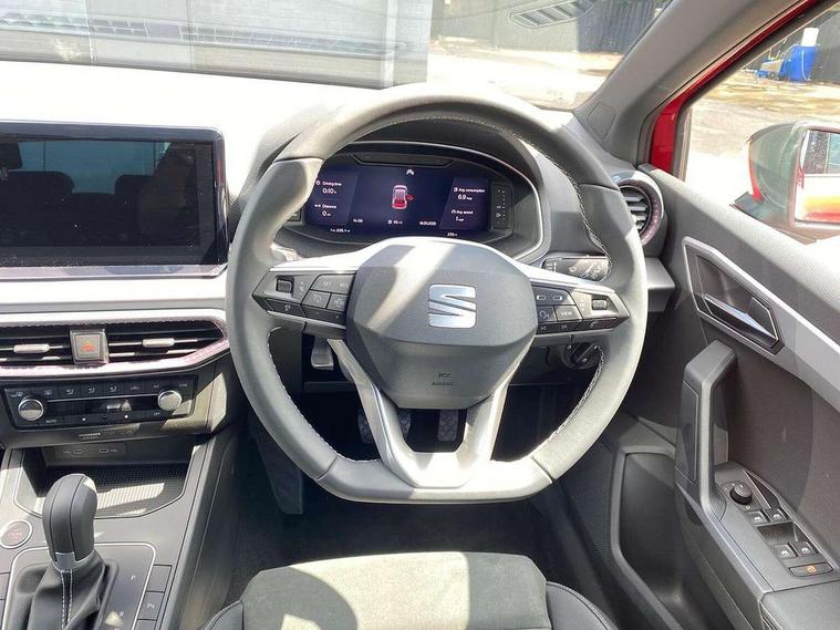 'Lights On' Reminder warning buzzer, 10" Digital cockpit, 9.2" touchscreen navigation system with type C USB socket, Voice control and DAB/AM/FM radio, Auto start and stop system, Bluetooth audio streaming with handsfree system, Digital clock, E-call, Front and rear parking sensors with rear view camera, Full link smartphone integration with mirror link, wireless apple carplay, Google android auto + USB Type C cable for apple and android devices, Lane assist, Low fuel warning light, Outside temperature gauge, Power Steering, Seat connect plus with safety, service, remote and online, SEAT drive profiles and ECO function, SEAT logo boot release, Speed limiter, Traffic sign recognition, Trip computer, Comfort suspension, 6 speakers, Auxiliary input socket, Radio/MP3 player, SD card slot, Steering wheel mounted controls, Anti theft roof antenna, Atom grey door mirrors, Auto dimming rear view mirror, Automatic rain sensing wipers, Body colour bumpers, Body colour door handles, Chrome window surround and upper grille surround, Dark tinted rear windows, Electric adjustable/heated/folding door mirrors, Electric front windows, Electric headlight adjustment, Electric rear windows, Front/rear fog lights, FULL LED automatic headlights with dynamic headlight range control, coming and leaving home, LED daytime running lights, LED 3rd brake light, LED tail lights, Rear side wing doors, Rear wiper, 3 seat bench in 2nd row, 60/40 split folding rear seat, Ambient interior lighting, Chrome detailing and black headlining, Comfort seats, Dual zone climate control with combination filter, Front centre armrest, Front courtesy lights, Front cupholders x 2, Front reading lights, Gear shift indicator, Glovebox, Height adjustable front and rear headrests (five), Height adjustable front seats, Height/reach adjust steering wheel, Illuminated air vent surrounds, Illuminated boot, Instrument lighting with brightness control, Isofix, Leather multifunction flat bottomed sports steering wheel, Microsuede cloth upholstery, Passenger sunvisor, Single front passenger seat, Storage pockets on back of front seats, Sunvisors with mirror and driver side card holder, Safety and driving pack (M) - Ibiza, Safety and driving pack (S) - Ibiza, 3 point seatbelts on all 3 rear seats, ABS, Active front headrests, Child locks on rear doors, Electronic stability control, Energy recovery system, Front driver and passenger side airbags with curtain airbag and front passenger airbag deactivation, Hill hold control, Multi-Collision braking, Seat belt reminder for front and rear seats, Tiredness recognition system, Tyre pressure monitoring system, KESSY Keyless entry and go, Locking wheel bolts, Perimeter alarm and interior monitoring with backup horn and tow away protection, Remote central locking + deadlocks, 18" Dynamic machined alloy wheels in Nuclear grey,