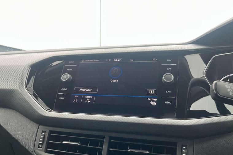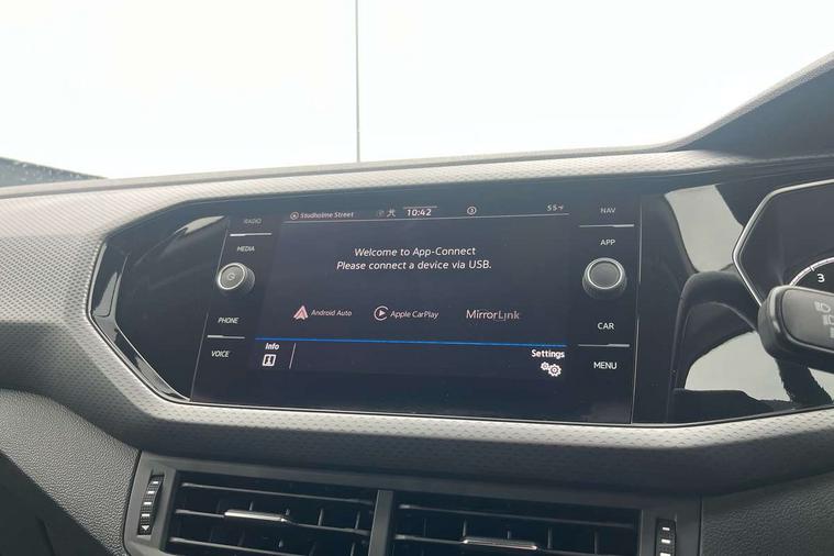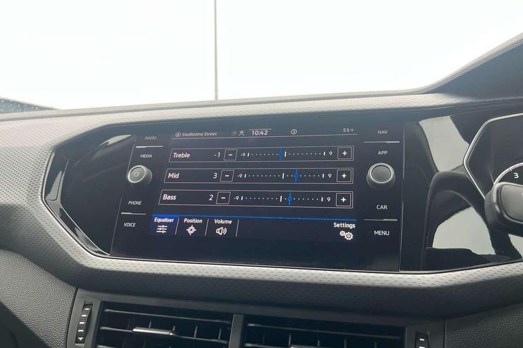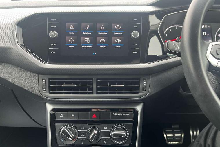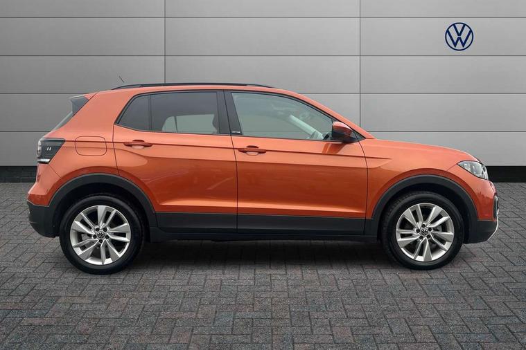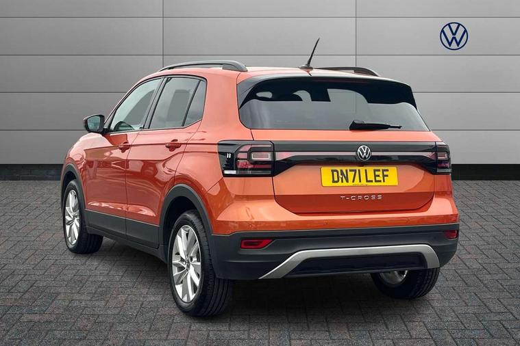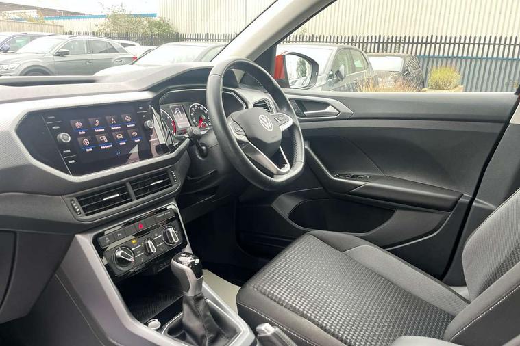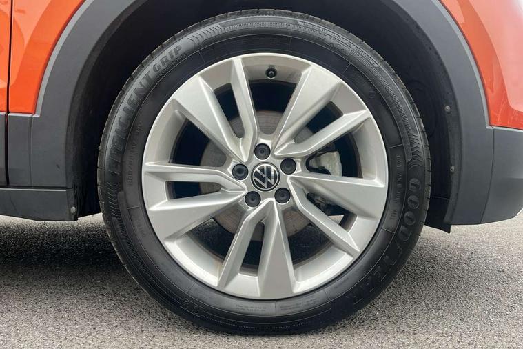 'Lights On' Reminder warning buzzer, Adaptive cruise control including front assist, forward collision warning, autonomous emergency braking, speed limiter, Blind spot monitoring, Bluetooth telephone and audio connection for compatible devices, Car information display, Driver alert system, eCall emergency call system, Lane assist, Low washer fluid warning light, Multifunction computer with visual gear change recommendation for fuel consumption, Operating permit alteration, Power assisted speed sensitive steering, Speedo, rev counter, electronic odometer, trip, service interval display, exterior temperature and fuel gauge, Stop/start system, Warning sound and light for doors and tailgate open, Warning sound and light for front seatbelts unfastened, We Connect Go Dongle, Wireless Car net app connect with Apple CarPlay, combined functionality of Apple CarPlay/Android Auto and MirrorLink, Battery regeneration during braking, Misfuel prevention device, 2x USB connection with USB charging sockets and in rear centre console, DAB Digital radio receiver, Diversity antenna for FM reception, Multi device interface (MDI) with USB connection, Music playback - MP3, WMA and AAC files, Premium USB cable for Apple or Android smartphone compatibility, Simultaneous pairing of 2 compatible mobile devices, Title and cover art display, 3D active badge on B-pillar, Active door sills, Active sill panel trims, Automatic hazard lights activation under emergency braking, Black roof rails, Body colour door handles, Body coloured bumpers, Dusk sensor + automatic driving lights, Electrically foldable, adjustable and heated door mirrors with reverse activated kerb view adjustment on passenger's side, Front and rear electric windows, Front fog lights with static cornering function, Galvanised body, Heated rear window, High level 3rd brake light, Lower door sills and door pillars in black, Radiator grille with high gloss surface and chrome strip, Rear fog light on one side, reversing light on both sides, Rear lights incorporating LED technology, Rear tinted glass 65% approx light absorbing from B pillar backwards, Rear window aerial, Rear windscreen washer and wiper with interval delay, Reflectors in all doors, Tailgate with integrated roof spoiler, Windscreen wipers/ intermittent wipe + 4 position delay, 12V Accessory socket in centre console, 3 rear head restraints and 3 rear three point seat belts, 60/40 split folding rear seat backrest, Ambient lighting and sourround lighting, Brushed stainless steel pedals, Drawer under drivers seat, Driver and front passenger sunvisor with vanity mirror, Driver's sunvisor with ticket holder, Dust and pollen filter, Front + rear carpet mats, Front and rear reading lights X 2, Front centre armrest with storage compartment, Front seat back storage pockets, Front seats with adj lumbar support, Glovebox, Heating and fresh air system with 4 stage blower, Height/reach adjust steering wheel, Instrument lighting white adjustable panel illumination, Interior light with delay, Isofix child seat preparation for 2 rear child seats, Luggage compartment cover, Luggage compartment lighting, Moveable and foldable Rear bench seat, Storage compartment in drivers and front passengers door, Three spoke multi-function leather trimmed steering wheel and gearknob, Trapeze cloth upholstery, Variable boot floor, Winter pack - T-cross, Anti-lock Braking System (ABS) with Hydraulic Brake Assist (HBA), Automatic post collision braking system, Driver and front passenger safety-optimised head restraints, Drivers and Front Passengers airbags with front passengers airbag deactivation switch, ESC with EDL, ASR, EDTC and trailer stabilisation function, Extended and proactive pedestrian protection, Front and rear curtain airbags, Front seat side impact airbags, Height adjustable 3 point automatic front seatbelts with pretensioners, Hill start assist, Pre crash preventive occupant protection, Rigid safety cell with front and rear crumple zones, Single torn horn, Tyre pressure loss indicator, Volkswagen roadside assistance, Alarm with interior protection and deactivation via infotainment system, Child security locks in rear doors, Electronic engine immobiliser, Remote tailgate unlocking using key fob, Decorative strips in doors in matt silver/ center console, 17" Clayton alloy wheels + anti theft wheel bolts, Breakdown kit,
