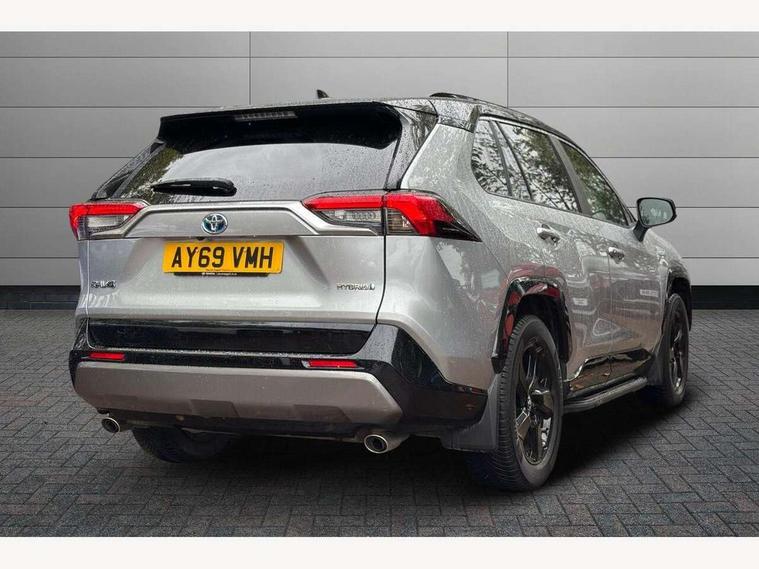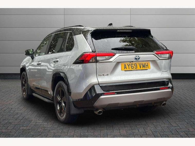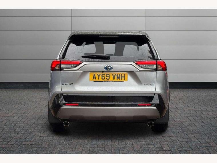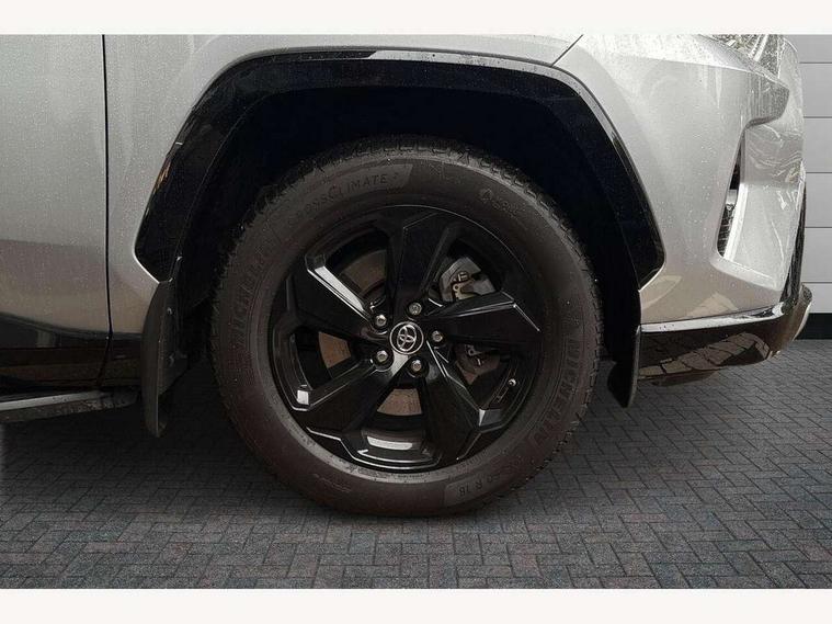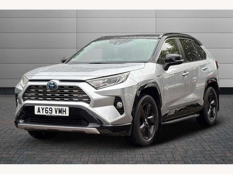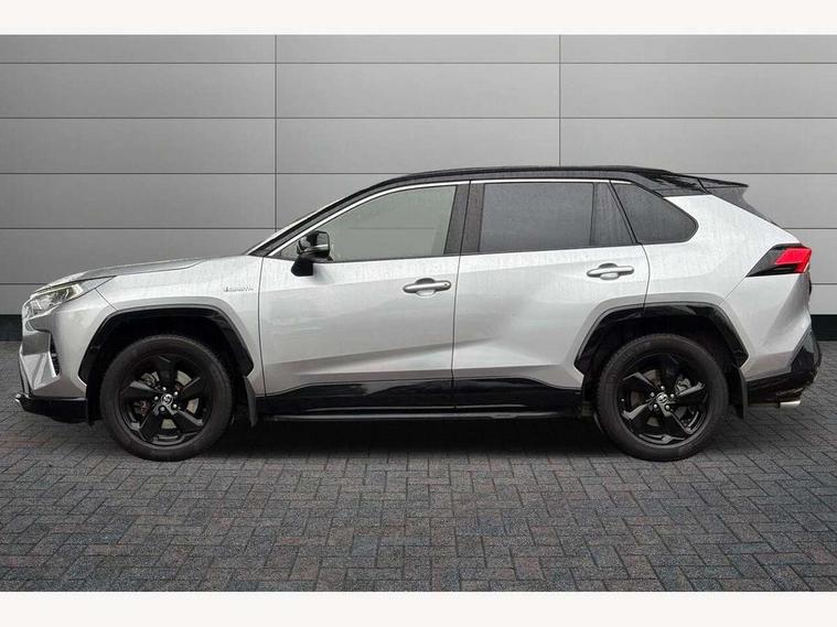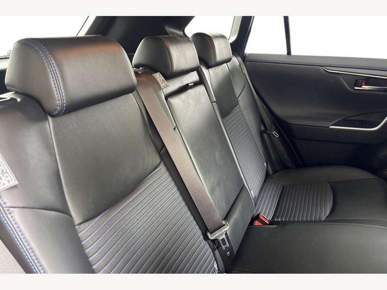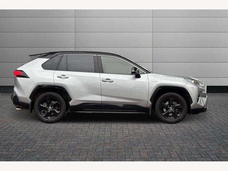 7" colour TFT display, Adaptive cruise control with lane trace assist, Adjustable speed limiter, Blind spot monitoring with rear cross traffic alert, Bluetooth system, Cyclist Detection, Drive mode selector, eCall emergency call system, ECO-driving indicator, Electric power steering, Hybrid system indicator, Lane departure warning system, Lights on warning, Night Time Pedestrian Detection, Pedestrial detection, Power boot opening and closing, Rear parking camera, Rear parking sensors, Remote boot door release in cabin, Tachometer, Touch 2 Go navigation system including 3D maps and voice control, Traffic sign recognition, Trip computer, Voice control system, Vehicle Stability Control (VSC), 6 speakers, 8" Multimedia display touch screen, Auxiliary socket for external MP3 player, DAB audio, Steering wheel mounted audio controls, Toyota touch media system, USB connection, Auto dimming interior mirror, Auto high beam, Automatic headlamp levelling, Automatic headlights, Automatically retractable door mirrors, Bi-tone black roof, Black door mirrors, Black rear spoiler, Black roof rails, Black Shark-fin antenna, Body colour door handles, Body coloured bumpers, Door mirror puddle lights, Electric adjustable door mirrors, Emergency brake-light signal (EBS), Follow me home headlights, Front fog lights, Gloss black front bumper insert, Gloss black rear bumper insert, Headlight cleaners, Heated door mirrors, LED daytime running lights, LED High mounted stop lamp, LED rear lights, Meshed upper front grille, Power front windows, Power rear windows, Privacy glass, Projector LED headlights, Rear screen wiper - intermittent, Rear windscreen defogger, Silver front under-run, Silver rear under-run, Trailer Sway Control, Turning signal integrated indicators in door mirrors, 3 rear headrests, 60/40 split fold rear seat back, Black roof lining, Boot light, Clean air filter, Driver and front passenger personal light, Driver and front passenger Whiplash Injury Lessening seats, Driver and passenger sunvisors with illuminated vanity mirrors, Dual sided deck board in boot, Dual zone automatic air conditioning, Floor mats, Folding rear centre armrest, Front and rear bottle holders, Front centre armrest, Front footwell lights, Front headrests, Front seat and rear pockets, Front sport seats, Front/rear roof mounted assist grips, Heated driver and front passenger seats, Isofix child seat preparation, Leather gear shift with chrome surround, Light blue ambient lighting on front cupholders and open tray, Manual telescopic and tilt 3-spoke leather steering wheel with Chrome insert, Manually reclining and sliding front passenger seat, Pollen filter, Power height-adjustable sliding reclining and lumbar support for driver seat, Rear coat hooks, Rear door armrests, Rear passenger air vents, Reclining rear seats, Satin chrome interior door handles, Sunglasses holder, Synthetic leather upholstery, Parking pack - Rav4, 3x3 point rear seatbelts, ABS/EBD, Adjustable front driver and passenger seat belt extender, Brake assist function, Child proof door locks, Collision mitigation braking system, Driver/Front Passenger airbags, Driver/front passenger side airbags, Drivers knee airbag, Electronic parking brake, Electronic Stability Programme (ESP), Emergency brake light system (EBS), Front and rear curtain airbags, Front and rear seatbelt reminder, Hill start assist, Passenger airbag cut-off device, Seatbelt pretensioners with load limiters, Traction control, Tyre pressure warning, Alarm/immobiliser, Glass-breaking alarm sensors, Light - on and Key in reminder, Remote central locking, Smart entry + Smart start, Speed sensitive auto door locking, Tilt detection sensors, Piano black centre console with silver insert, Soft-touch black lower dashboard, Soft-touch black upper dashboard with silver insert, Full size spare wheel,