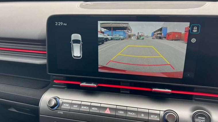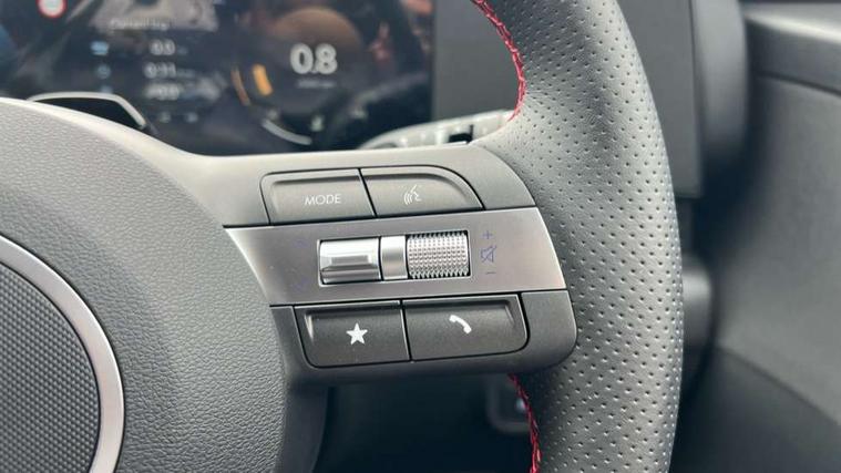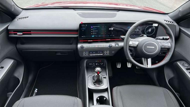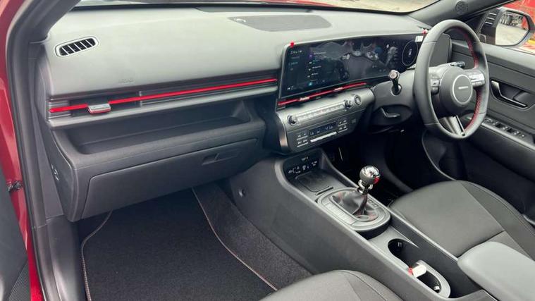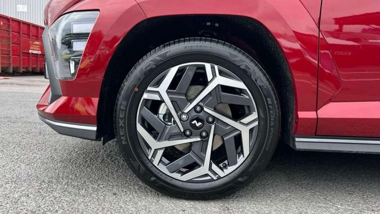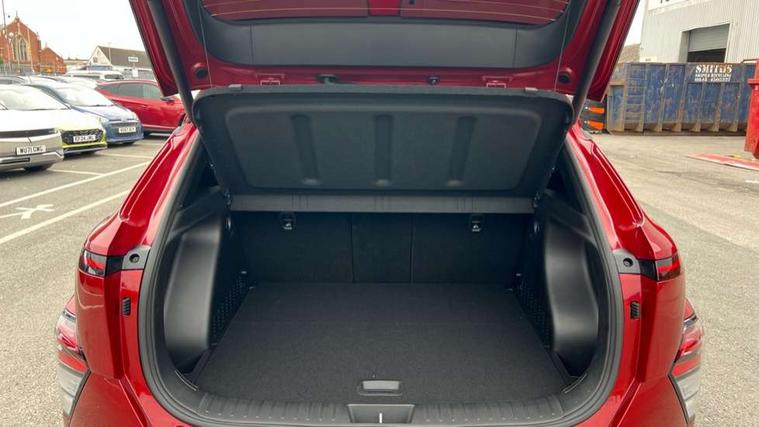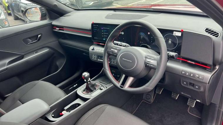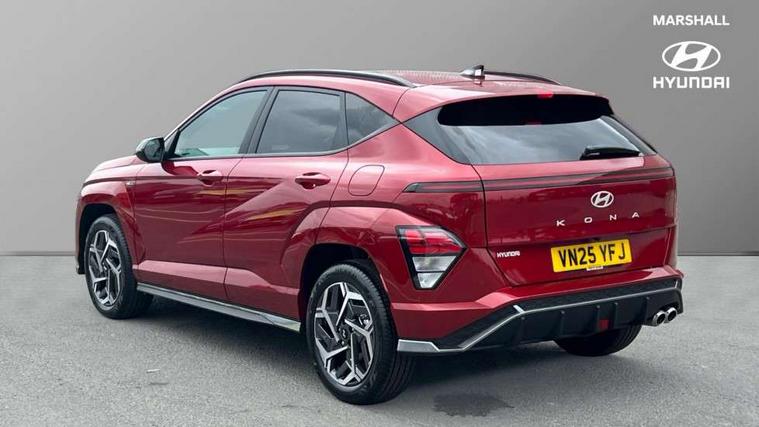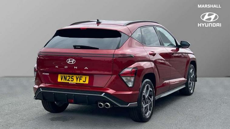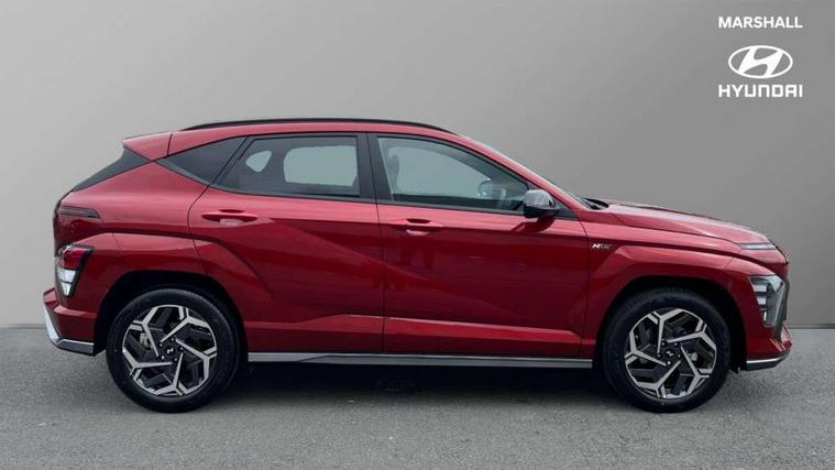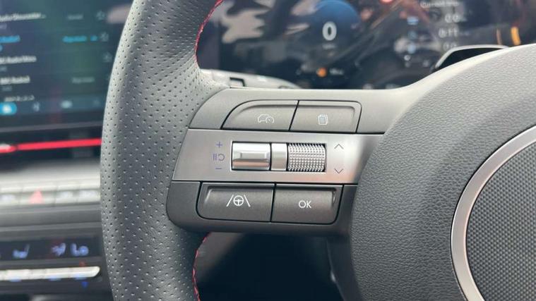 12.3" touchscreen centre console display satellite navigation with bluelink, live services and mapcare, Bluetooth connectivity with voice recognition, Cruise control, Driver status monitor (DSM), Driver supervision instrument cluster with 12.3" LCD display, eCall emergency call system, Feature on demand - Enabled, Forward collision avoidance assist (FCA 1.5) - Car, pededstrian, cycle and junction turning, Front parking sensor, Height adjustable power tailgate, Intelligent speed limit assist, Lane follow assist, Lane keep assist, Leading vehicle departure alert (LVDA), Parking system with rear camera and guidance system, PAS, Rear parking sensor, Roadside assistance, Wireless phone charging pad, Wireless Smartphone Integration includes Apple CarPlay and Android auto, 2 front USB C and 2 rear USB C charging points, DAB Digital radio, Speakers - Front, rear and tweeters, Steering wheel audio, phone and cruise controls, Auto dimming rear view mirror, Automatic headlights with dusk sensor, Automatic windscreen wipers with rain sensor, Body colour exterior door handles, Body coloured wheel arch inserts, Door mirror LED indicator lights, Electric front windows with anti-trap mechanism and one touch control, Electric rear windows, Electrically adjustable and heated door mirrors, Full LED MFR headlights, Gloss black door mirrors, LED daytime running lights, LED upper and lower rear lights, Power folding door mirrors, Privacy glass - Rear windows and tailgate, Rear roof spoiler with integrated LED brake light, Rear side wing doors, Rear wiper, Roof rails, Solar glass with front door glass and windscreen, Tinted glass in front and rear doors, Windscreen auto defog function, 12V power outlet in front console, 2 zone climate control, 3 seat bench in 2nd row, 40/20/40 split folding rear seat, Adjustable head restraints, Aluminium pedals, Ambient lighting, Driver and passenger front seat pockets, Driver's seat lumbar support, Driver/passenger manual seat height adjustment, Driver/passenger sunvisors and illuminated vanity mirrors, Floor mats, Heated front seats, Heated rear seats, Heated steering wheel, Height/reach adjustable steering column, Leather wrapped steering wheel and gear knob, LED centre interior light, LED front interior light, Luggage compartment LED lighting, Luggage shelf, Metal paint effect interior door handles, N Line cloth upholstery, Rear centre armrest with cupholders, Single front passenger seat, Vertical adjustment rear head restraints, N Line exterior design pack - Kona, Trailer wiring package - Kona, Airbag - front, front side, curtain and centre front airbag, Anti-lock brake system (ABS), Childproof rear door locks, Downhill brake control, Electric parking brake, Electronic stability control, Fixed 3 point for second row centre passenger seatbelt, Hill start assist control (HAC), Rear seat alert, Tyre pressure monitoring system, Alarm/immobiliser, Rear occupant alert, Remote central locking, Smart key with keyless entry and start/stop button, Five year annual vehicle health checks, Temporary mobility kit (TMK),