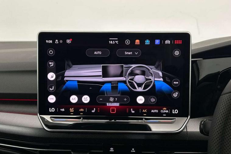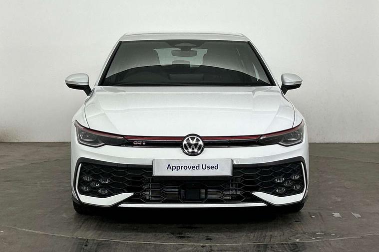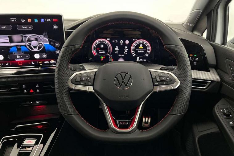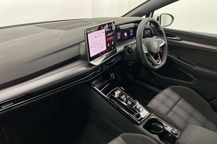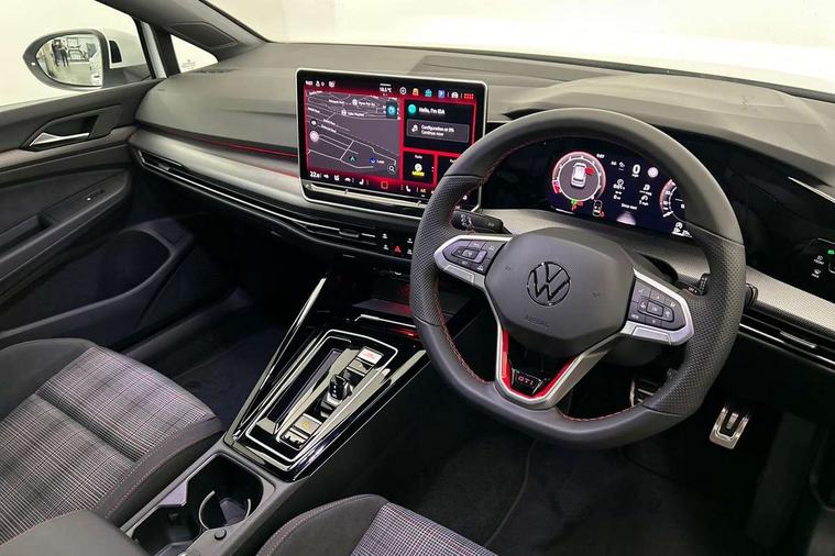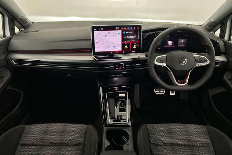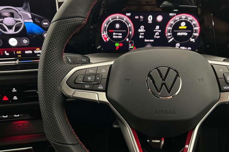 Activated carbon canister, Adaptive cruise control (ACC), Advanced driver attention and drowsiness monitor, Dynamic road sign display, E-Sim card for online connectivity, eCall emergency call system, Multi-color Digital cockpit pro, selection of different info profile possible, Multifunction front facing camera for distance control, Navigation system, Oncoming vehicle braking when turning including swerve support, Side assist blind spot lane change system, rear traffic alert and exit warning system, Speed limiter, Speedo, rev counter, electronic odometer, trip, service interval display, exterior temperature and fuel gauge, Traffic jam assist, Voice enhancer and voice control, Warning signal and warning light for front and rear seatbelts not fastened, We connect plus preparation, We connect preparation, Wireless app connect, Front differential lock, Petrol Particulate Filter, Start-stop system with battery regeneration (recuperation - energy recovery during braking), 2 USB C ports in front, 2 USB charging sockets on the centre console in the rear charging capacity upto 45W, Digital radio reception (DAB), Diversity antenna for FM reception, Gaming platform via car app, Infotainment system with 12.9" display, Mobile phone interface with inductive charging feature, 3rd brake light, Auto dimming rear view mirror, Automatic headlamp activation with Coming home and Leaving home feature, Body colour door handles, Body coloured bumpers, air intake in honeycomb structure, Exterior mirrors convex on the left and aspherical on the right, Front and rear electric windows, Front fog lamps and cornering light, Heat insulating windshield made of laminated glass, LED separate daytime running light, Nameplate 'GTI' set, Rain sensor, Rear exhaust tailpipe, Rear fog light on one side and reversing lights on both sides, Rear side wing doors, Rear windscreen washer and wiper with interval delay, Remote electrically foldable door mirrors, puddle lights and reverse activated passenger's door mirror, Welcome light with surround lighting, 12V socket in front centre console, 12V socket in luggage compartment, 3 rear head restraints, 3 seat bench in 2nd row, 30 colour ambient lighting, illuminated center console storage compartment in front, Air care climatronic 3 Zone automatic climate control with rear air conditioning control panel, Aluminium gearshift handle, Brushed stainless steel pedals, Chrome plated radiator grille inserts, air vent surrounds and light switch surrounds, Entry lights, Front + rear black carpet mats, Front centre armrest, ISOFIX anchors for child seats on outer rear bench seats and on front passanger seat compatible for i-Size, Luggage compartment lighting, Rear cupholder and loadthough, Single front passenger seat, Soul black instrument panel, Soul black roof lining, Split folding backrest with centre armrest and unsplit rear seat bench, Sun visors with illuminated vanity mirrors, Driver assistance pack - Golf Estate/Hatchback Auto, Technology park and comfort pro package - Golf Hatchback, 3 point height adj front seatbelts + pretensioners, 3 rear three point seatbelts, ABS, Autonomous emergency braking front assist with pedestrian and cyclist monitoring, Child locks on rear doors, Driver and front passenger airbag with front passenger airbag deactivation, Electronic parking brake with auto hold, ESC (Electronic Stability Control), Extended pedestrian protection measures, Hill start assist, Rear disc brakes, Two tone horn, Tyre pressure loss indicator, Volkswagen roadside assistance, Anti theft wheel bolts, Preparation for alcohol interlock, Decorative inserts carbon grey for dashboard and front door trim panels, Sporty vehicle dynamics, Tool kit for tyre mobility set, Tyre mobility kit Includes 12V compressor and tyre sealant,