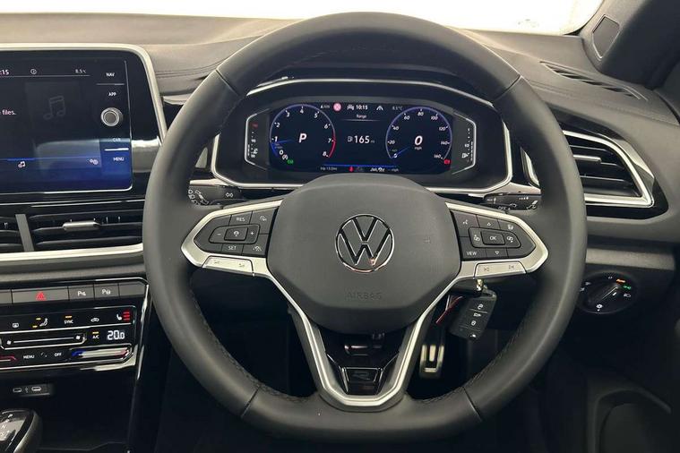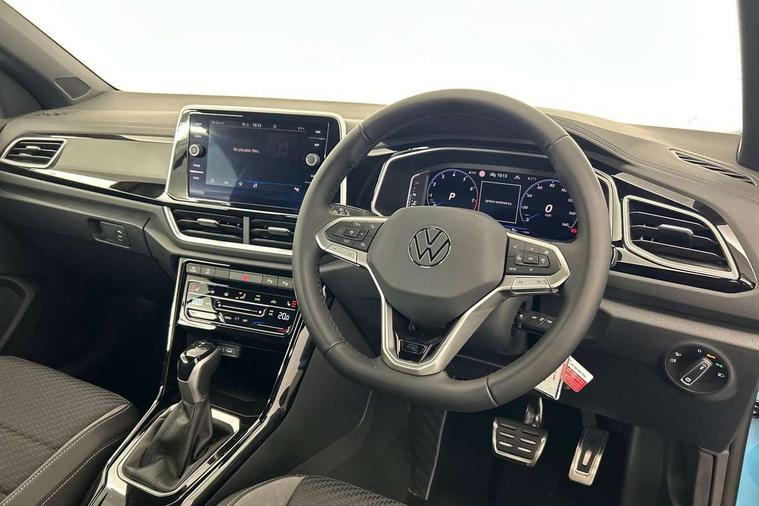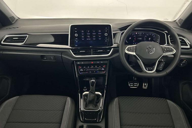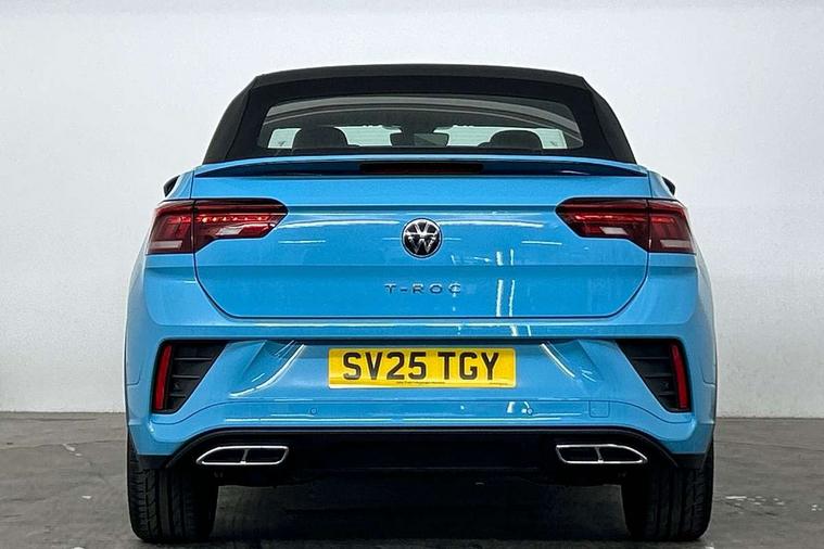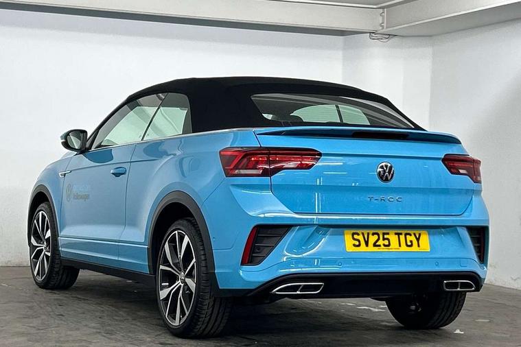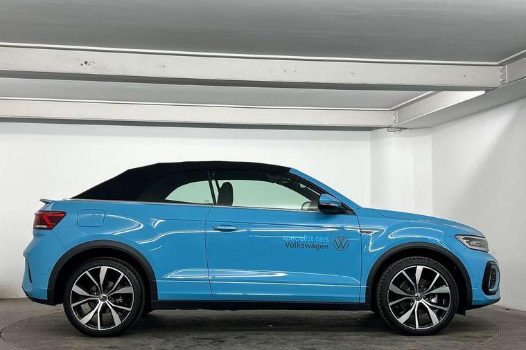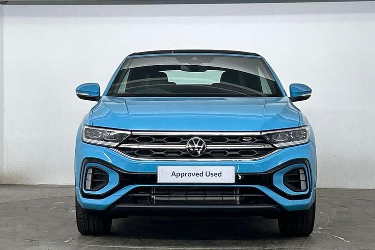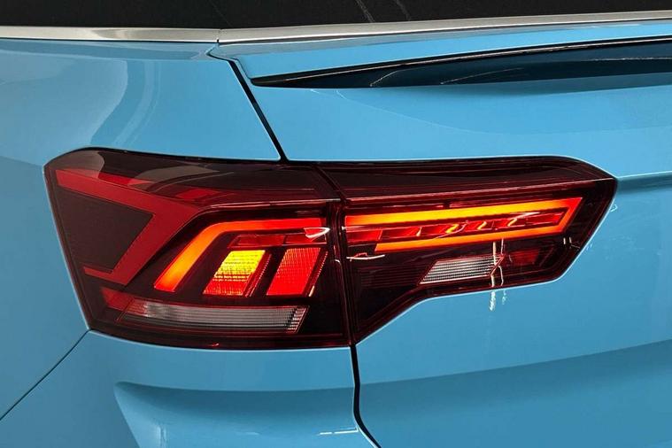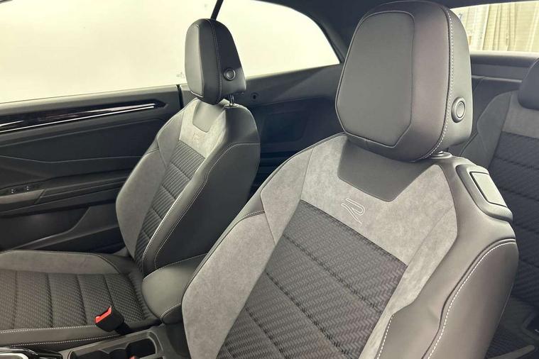 Adaptive cruise control and speed limiter, Advanced driver attention and drowsiness monitor, Brake pad wear indicator, Car information display, Digital Cockpit Pro with 10.25" Display, Driver tips and journey analysis, Emergency call service, Modified key software - reduce switch off time for key status change to Long no motion, Multifunction computer with visual gear change recommendation for fuel consumption, Multifunction front facing camera, Online services, Park assist including front and rear parking sensors, Speedo and rev counter, electronic odometer, trip, service interval display and exterior temperature gauge, Start/stop system with brake energy recovery, Tailgate/trunk lid release from outside, Warning sound and light for front seatbelts unfastened, Diversity antenna for FM reception, Mobile phone interface with inductive charging feature, Music playback - MP3, WMA and AAC files, SMS functionality - read, compose and send SMS messages using touch-screen display, Title and cover art display, USB-C Interface and USB charging socket, We Connect and We Connect Plus functionality, Ambient lighting with logo projection, Auto dimming interior rear view mirror, Automatic hazard lights activation under emergency braking, Automatic headlight control with LED separate daytime running lights with coming/leaving home function, Black roof, Body colour door handles, Body colour rear boot spoiler, Chrome effect left and right trapezoid exhaust tailpipe fascia surround, Chrome trim on upper and lower radiator grille, Dark red rear combination lamps in LED technology, Dusk sensor, Exterior mirrors aspherical on driver side, convex on front passenger side, Heat insulating glass windscreen, LED 3rd brake light, LED rear number plate lights, Power operated canvas convertible top, Power windows with comfort operation and circuit breaker, R-Line design body coloured bumpers, Rain sensor, Rear boot, Rear exhaust tailpipe, Rear fog light on one side and reversing lights on both sides, Remote electrically foldable door mirrors, puddle lights and reverse activated passenger door mirror, Volkswagen roundel, Windscreen wiper with intermittent wipe light, Without exterior ambient lighting, 12V socket in centre console storage area, 2 LED front reading lights, 2 seat bench in 2nd row, 50:50 Split folding rear seat backrests with fixed rear seat bench, Air care climatronic air conditoning system with active combination filter and 2-zone temperature control, Black door lower parts with chrome trim, Chrome plated surround to light, mirror and window switch, Door and side trim panel with leatherette insert, Easy entry backrest release, Front and rear carpet mats with black stitching, Front centre armrest, Front cupholders x 2, Front door pockets, Front seat back storage pockets, Front sports comfort seats with manual height adjustment, Heated leather wrapped multi function sports steering wheel with tiptronic, Height/reach adjust steering wheel, Inserts of front seats and outer rear seats in ArtVelours titan black, Instrument lighting, white adjustable panel illumination, Interior light delay, Interior light in footwell, Interior lighting with switch off delay and contact switches on all doors, Interior white ambient lighting and surround lighting, Isofix child seat preparation, Lockable glove compartment with light, Luggage compartment lighting, Power adjustable lumbar support in front, Rear head restraints, Single front passenger seat, Stainless steel pedals, Sun visors with illuminated vanity mirrors, Unique R Line door sill protectors, Driver assistance pack without proactive passenger protection - T-Roc Cabriolet DSG, Sports pack - T-Roc cabriolet, 2 x 3-point seatbelts/outer rear seats with ECE label, Driver and front passenger airbag with front passenger airbag deactivation, Driver and front passenger safety-optimised head restraints, Drivers seatbelt reminder, Electronic parking brake, Electronic Stability Control (ESC) including ABS, ASR and EDL, Front and rear disc brakes, Front assist with autonomous emergency braking, Pedestrian monitoring, Predictive pedestrian protection, Rigid safety cell with front and rear crumple zones, Side airbag/thorax airbag system, for front passengers, Three point height adjust front seatbelts + pretensioners, Two tone horn, Tyre pressure loss indicator, Volkswagen roadside assistance, Anti-theft alarm system with interior protection and central locking system with SAFELOCK, radio remote control and 2 remote control folding keys, Electronic engine immobiliser, Trims for alloy wheels,