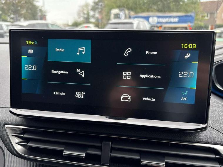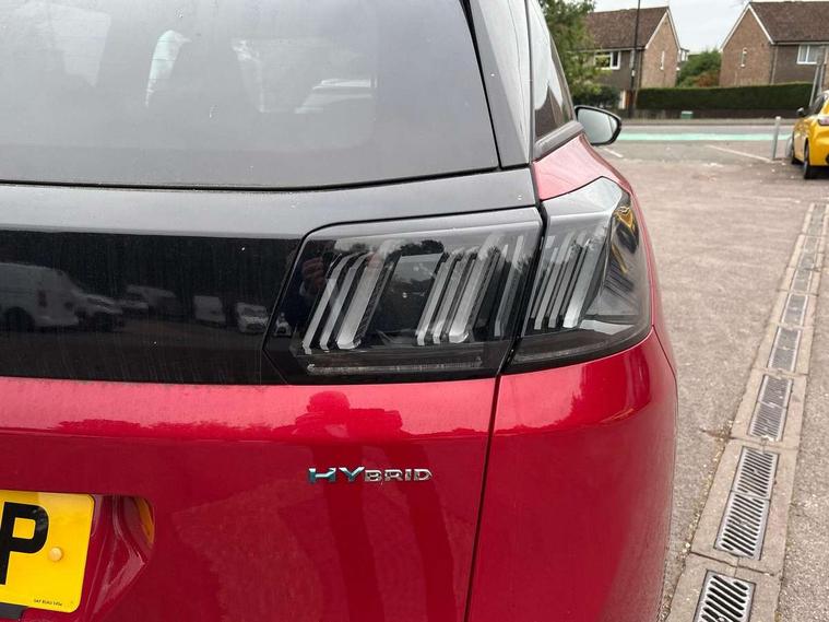 3D connected navigation with 10" HD touchscreen + voice recognition system, Bluetooth telephone facility, Drive mode selector (Electric, Hybrid, Sport), Driving Time Warning (DAA1), Emergency services call system, Extended traffic sign recognition, Exterior temperature indicator with ice warning, Lane departure warning system, Mirror screen with Apple CarPlay and Android auto, Multi function trip computer, PEUGEOT i-Cockpit with compact sports steering wheel, PEUGEOT i-Cockpit with configurable 12.3" Head-up digital instrument panel, PEUGEOT SOS and assistance, Speed limit recognition and recommendation, Deferred charging option, configurable in car or via My PEUGEOT App, Dynamic stability control and electronic anti-skid system, Mode 3 type 2 cable for wallbox charging, 6 speakers radio with mp3 compatible, DAB Digital radio, USB socket in front centre console, 2 X Rear number plate lights, Aluminium front door sills, Aluminium longitudinal roof bars, Automatic hazard light activation upon heavy brake application, Automatic triggered rear windscreen wiper in reverse gear, Black diamond roof, Black rubber side window trim, Black with chrome detailed front wing trim, Body colour door handles, Body colour rear roof spoiler with stainless steel edging trim, Body protectors (wheel arches + protection at bottom of doors) in black, Chrome frameless 'Classic' grille, Chrome rear bumper facia, Dark tinted rear side windows + tailgate window, Diamond Black door mirror shells, Eco LED headlights, Electric heated folding door mirrors, Front and rear door and sill protectors with polished stainless steel insert, Front bumper lower trim in Silver, Front windscreen wiper with magic wash cleaning system, Gloss black B and C pillar and aerodynamic deflector trim, Gloss black front bumper air scoops, Gloss black rear cluster connecting strip, Gloss black windscreen trim, Headlights left on audible warning, Heated rear windscreen with integrated antenna, HYBRID emblem on tailgate, LED daytime running lights in fang style, LED front indicator, LED side indicator lights integrated into door mirrors, LED third brake light, One touch electric front/rear windows with pinch protection, Rear LED Peugeot signature 'Claw Effect' lights, Rear side wing doors, Stainless steel door sill scuff plates, Stainless steel roof arches, 12V Sockets in dashboard, rear cabin and load area, 2 cupholders in front centre console, 2 x Rear reading spotlights, 2x Rear coat hooks, 3x Isofix child seat fittings in the front passenger and outer rear seats, 4 Grab handles retractable and damped, Aluminium pedals, Blue ambient lighting for connecting zone, Blue ambient lighting to headup instrument panel, Brumeo fabric trimmed door armrests, Cabin pre-conditioning, Centre front armrest with butterfly wing opening and illuminated storage compartment, Driver seat manual adjustment (longitudinal and back rest angle), Dual zone automatic climate control, e-Toggle compact gear selector, Electric power steering with reach and rake adjustable steering column, Fixed boot floor with access to the charging cable storage box, Flocked glovebox interior, Footwell illumination, Front interior light with 2 reading spotlights and rear interior light with timer, Front passenger seat manual adjustment (longitudinal and back rest angle), Front seat back map pockets, Gear shift indicator, Height adjustable front seats, Illuminated glove box, central storage area and load area, Illuminated vanity mirrors, Individual left and right controls in boot for seat folding, Leather steering wheel with detail stitch, LED interior lighting in storage spaces and load area, LED roof interior lighting, Rear armrest with ski flap and two cup holders, Rear bench seat with central armrest and ski hatch, Rear centre console ventilation system, Roof lining - Mistral black, Satin chrome dashboard trim, Satin chrome digital instrument panel, Satin chrome front door panel recess trim, Satin chrome interior door handles, Satin chrome scorpion's tail and toggle switch trim, Seatbelt not fastened audible and visual alert for front seats, Seatbelt unfastened on the move audible and visual alert for front and rear seats, Single front passenger seat, Visibility pack - 3008, 3x Rear three-point retractable seatbelts with force limiters in the outer rear seats, ABS (Anti-lock Braking System) with EBD (Electronic Brakeforce Distribution) and EBA (Emergency Braking Assistance), Acoustic vehicle alerting system, Adaptive driver and front passenger airbags with passenger airbag deactivation function, Driver and front passenger side airbags, Electric child locking functionality on rear windows and doors, Electric parking brake, Front and rear curtain airbags, Front optimised safety headrests and 3 x rear retractable headrests with height adjustable, Front three point retractable seatbelts height adjustable with pre tensioners and force limiters, Front ventilated disc brakes and rear disc brakes, Hill start assist, Two tone horn, Automatic door locking when moving off, Electronic immobiliser, key operated exterior door lock from the left hand door, Perimetric and volumetric alarm with lift and tilt sensor, Peugeot Open and Go System, Remote control central locking with two plip keys, Carbon effect Dashboard, front and rear door panel finish, 18" Detroit storm grey diamond cut alloy wheels, Michelin e-primacy 225/55 R18 102V class A+ tyres, Tyre repair and inflation kit,