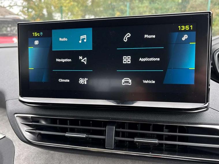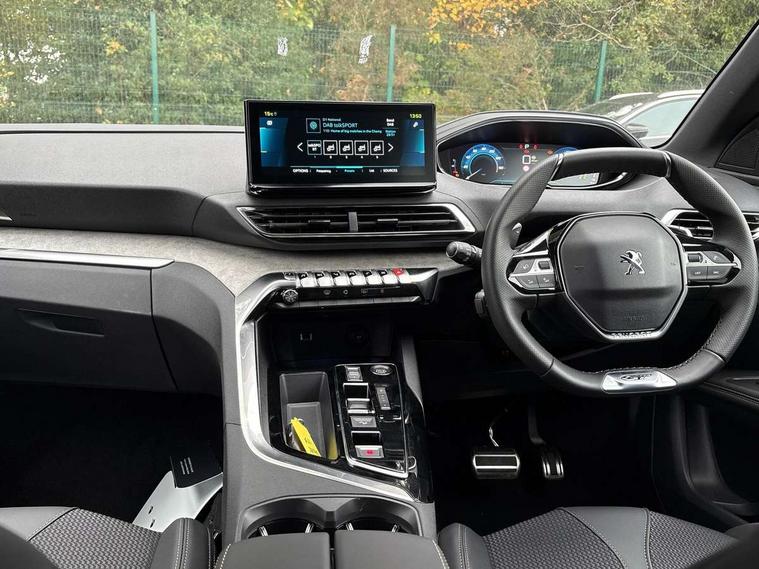 3D connected navigation with 10" HD touchscreen + voice recognition system, Apple car play and Android auto, Blind spot detection system, Bluetooth telephone facility, Drive mode selector (Electric, Hybrid, Sport, 4WD) & Hill Assist Descent Control, Driver Attention Alert level 3, Driving Time Warning (DAA1), Emergency services call system, Extended traffic sign recognition, Exterior temperature indicator with ice warning, Front and rear parking sensors, Lane departure warning system, Lane Keeping Assistance (LKA) with road edge detection, Mirror screen with mirror link, apple carplay and android auto, Multi function trip computer, Peugeot i-cockpit with compact multi-function sports steering wheel, PEUGEOT i-Cockpit with configurable 12.3" Head-up digital instrument panel, PEUGEOT SOS and assistance, Rear passenger USB charging sockets (x2) (type A), Speed limit recognition and recommendation, Deferred charging option, configurable in car or via My PEUGEOT App, Dynamic stability control and electronic anti-skid system, Mode 3 type 2 cable for wallbox charging, DAB Digital radio, USB socket, Auto self levelling headlights, Automatic hazard light activation upon heavy brake application, Automatic triggered rear windscreen wiper in reverse gear, Black with chrome detailed front wing trim, Body colour door handles, Body colour rear roof spoiler with stainless steel edging trim, Body protectors (bottom of front and rear bumpers + wheel arches + protection at bottom of doors) in black, Dark tinted rear side windows + tailgate window, Diamond Black door mirror shells, Door mirror mounted LED courtesy floor lighting, Electric folding door mirrors with exterior courtesy LED lighting, Electric operated/heated door mirrors, Fog Mode, Front windscreen wiper with magic wash cleaning system, Full LED headlights with LED fog lights with static cornering function, Gloss black B and C pillar and aerodynamic deflector trim, Gloss black front bumper air scoops, Gloss black rear cluster connecting strip, Gloss black windscreen trim, Headlights left on audible warning, Heated rear windscreen with integrated antenna, High beam assist, HYBRID4 emblem on front wings and tailgate, LED daytime running lights, LED front indicator, LED rear number plate lighting, LED side indicator lights integrated into door mirrors, LED third brake light, One touch electric front/rear windows with pinch protection, Rear LED Peugeot signature 'Claw Effect' lights with clear lens and scrolling LED direction indicators, Rear side wing doors, Twin exhaust tailpipe, 1/3 to 2/3 split folding rear seats, 12V Sockets in dashboard, rear cabin and load area, 2 cupholders in front centre console, 2 cupholders in rear armrest, 2 x Rear reading spotlights, 2x Rear coat hooks, 3x Isofix child seat fittings in the front passenger and outer rear seats, 4 Grab handles retractable and damped, Aikinite stitching in armrest, gear lever and dashboard facia, Aluminium pedals, Blue ambient lighting for connecting zone, Blue ambient lighting to front door panels, central storage and cupholders, Blue ambient lighting to headup instrument panel, Cabin pre-conditioning, Centre front armrest with butterfly wing opening and illuminated storage compartment, Driver seat manual adjustment (longitudinal and back rest angle), Dual zone automatic climate control, e-Toggle compact gear selector, Electric power steering with reach and rake adjustable steering column, Fixed boot floor with access to the charging cable storage box, Flocked front door pocket interior with blue ambient lighting, Flocked glovebox interior, Foldable front passenger seat with picnic table, Footwell illumination, Front interior light with 2 reading spotlights and rear interior light with timer, Front passenger seat manual adjustment (longitudinal and back rest angle), Front seat back map pockets, Gear shift indicator, Illuminated glovebox, Individual left and right controls in boot for seat folding, LED interior lighting in storage spaces and load area, LED roof interior lighting, Mistral floor mats with Aikinite contrast stitching, Mistral full grain perforated leather steering wheel with aikinite stitch detail and satin chrome 'GT' emblem, Rear bench seat with central armrest and ski hatch, Rear centre console ventilation system, Roof lining - Mistral black, Satin chrome dashboard trim, Satin chrome digital instrument panel and touchscreen trim, Satin chrome front door panel recess trim, Satin chrome interior door handles, Satin chrome scorpion's tail and toggle switch trim, Seatbelt not fastened audible and visual alert for front seats, Seatbelt unfastened on the move audible and visual alert for front and rear seats, Sunvisors with illuminated vanity mirrors, Drive assist plus pack - 3008, Visibility pack - 3008 GT, 3x Rear three-point retractable seatbelts with force limiters in the outer rear seats, ABS (Anti-lock Braking System) with EBD (Electronic Brakeforce Distribution) and EBA (Emergency Braking Assistance), Acoustic vehicle alerting system, Adaptive driver and front passenger airbags with passenger airbag deactivation function, Driver and front passenger side airbags, Electric child locking functionality on rear windows and doors, Electric parking brake, Front and rear curtain airbags, Front optimised safety headrests and 3 x rear retractable headrests with height adjustable, Front three point retractable seatbelts with pre tensioners and force limiters, Front ventilated disc brakes and rear disc brakes, Hill start assist, Two tone horn, Automatic door locking when moving off, Electronic immobiliser, key operated exterior door lock from the left hand door, Perimetric and volumetric alarm with lift and tilt sensor, Peugeot Open and Go System, Remote control central locking with two plip keys, Puncture repair kit including compressor, sealant cartridge and towing eye,