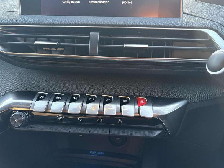 'Lights On' Reminder warning buzzer, 3D connected navigation + voice control + Peugeot connect SOS and assistance, Bluetooth telephone facility, Digital clock, Electric impulse automatic gearbox control, Exterior temperature indicator with ice warning, Front and rear parking sensors, Lane departure warning system, Mirror screen with mirror link, apple carplay and android auto, Multi function trip computer, PEUGEOT i-Cockpit with 8.0" capacitive touchscreen in centre console, PEUGEOT i-Cockpit with compact sports steering wheel, PEUGEOT i-Cockpit with configurable 12.3" Head-up digital instrument panel, Smartphone charging plate, Speed limit recognition and recommendation, Sports button, Diesel particulate filter, Dynamic stability control and electronic anti-skid system, DAB Digital radio, Steering wheel mounted controls, USB socket, 2 X Rear number plate lights, Aluminium longitudinal roof bars, Auto self levelling headlights, Automatic hazard light activation upon heavy brake application, Automatic triggered rear windscreen wiper in reverse gear, Black and chrome front wing trim, Body colour door handles, Body colour rear spoiler with stainless steel edging trim, Body coloured bumpers, Body protectors (bottom of front and rear bumpers + wheel arches + protection at bottom of doors) in black, Chrome front fog light trim, Chrome rear bumper facia, Chrome side window trim, Dark tinted rear side windows + tailgate window, Door mirror mounted LED courtesy approach lights, Electric operated/heated door mirrors, Front windscreen wiper with magic wash cleaning system, Full LED headlights with LED fog lights with static cornering function, sports front bumper and grille, Gloss black B and C pillar and aerodynamic deflector trim, Gloss black rear cluster connecting strip, Gloss black windscreen surround, GT Line emblem in satin copper (front wings and tailgate), Headlights left on audible warning, Heated rear windscreen with integrated antenna, LED daytime running lights, LED sequential scrolling front indicators, LED side indicator lights integrated into door mirrors, Lion grey front bumper scuff plate, Nera black door mirrors, One touch electric front/rear windows with pinch protection, Power folding door mirrors with blind spot detection indicator and auto dipping function in reverse gear, Radiator grille in chrome edge trim with chequered design and black 'PEUGEOT' lettering, Rear LED Peugeot signature 'Claw Effect' lights, Stainless steel roof arches, Twin exhaust tailpipe, 1/3 to 2/3 split folding rear seats, 12V Sockets in dashboard, rear cabin and load area, 2 cupholders in front centre console, 2 rear reading spotlights, 2x Rear coat hooks, 3x Isofix child seat fittings in the front passenger and outer rear seats, 4 Grab handles retractable and damped, Aikinite stitching in armrest, gear lever and dashboard facia, Automatic gear lever in satin chrome, Blue ambient lighting for connecting zone, Blue ambient lighting to front door panels, central storage and cupholders, Blue ambient lighting to head up instrument panel, Centre front armrest with butterfly wing opening and illuminated storage compartment, Driver and front passenger seat height adjustment, Driver seat manual adjustment, Dual zone automatic climate control, Electric power steering with reach and rake adjustable steering column, Fixing rings 4 in load compartment, Flocked front door pocket interior with blue ambient lighting, Flocked glovebox interior, Fold flat front passenger seat with picnic table, Footwell illumination, Front interior light with 2 reading spotlights and rear interior light with timer, Front passenger seat manual adjustments, Front seat back map pockets, Gear shift indicator, Illuminated glovebox, Illuminated vanity mirrors, LED interior lighting in storage spaces and load area, Mistral floor mats with Aikinite contrast stitching, Mistral full grain perforated leather steering wheel with aikinite stitch detail and satin chrome 'GT Line' emblem, Rear armrest with ski flap and two cup holders, Rear centre console ventilation system, Reclining front seats, Roof LED interior lighting, Roof lining - Mistral black, Satin chrome dashboard trim, Satin chrome digital instrument panel and touchscreen trim, Satin chrome front door panel recess trim, Satin chrome interior door handles, Satin chrome scorpion's tail and toggle switch trim, Seatbelt not fastened audible and visual alert for front seats, Seatbelt unfastened on the move audible and visual alert for front and rear seats, Stainless Steel Scuff Plates, Two position boot floor, Driver sport pack - 3008 Auto, Safety pack - 3008, Safety Plus Pack - 3008, Visibility pack - 3008, 3x Rear three-point retractable seatbelts with force limiters in the outer rear seats, Adaptive driver and front passenger airbags with passenger airbag deactivation function, Anti lock braking system + Electronic brake force distribution, Driver and front passenger side airbags, Electric child locking functionality on rear windows and doors, Electric parking brake, Front and rear curtain airbags, Front optimised safety headrests and 3 x rear retractable headrests with height adjustable, Front three point retractable seatbelts with pre tensioners and force limiters, Front ventilated disc brakes and rear disc brakes, Height adjustable front seatbelts, Hill start assist, Tyre pressure sensor, Anti theft alarm, Automatic door locking when moving off, Central locking button on dash, Deadlocks, Electronic immobiliser, Locking wheel bolts, Remote control central locking with two plip keys, Brumeo fabric Dashboard, front and rear door panel finish,