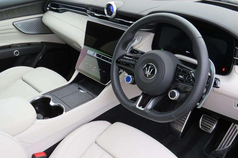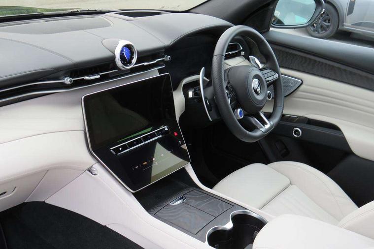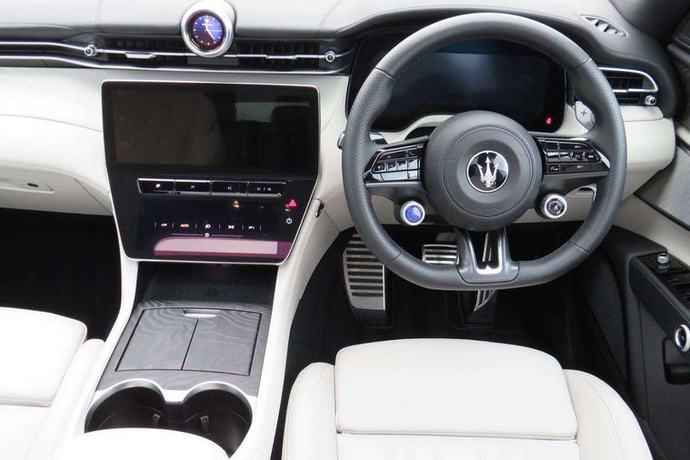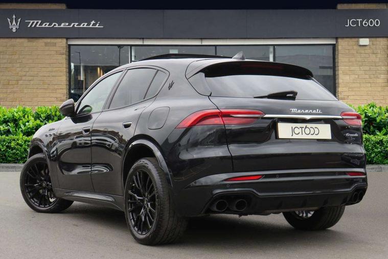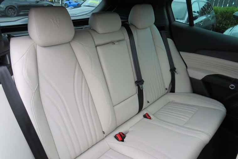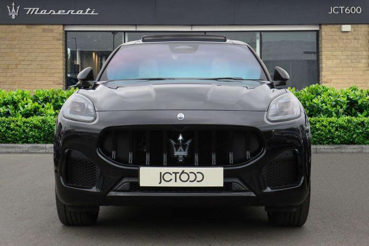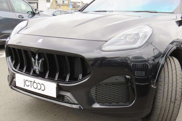12.3" full TFT digital colour display cluster with onboard computer and driver information, 12.3" HD touch screen central display with Maserati Intelligent Assistant (M.I.A) and satelite navigation, Android Automotive OS, 8.8" multifunction comfort display with smart gestures (controls for front/rear climate, seats, headlights, ambient lighting, clock & air suspension), Active lane management (active blind spot and lane keeping), Adaptive cruise control with Stop and Go, Apple CarPlay and Android Auto, Bluetooth, Connectivity Services (Europe), Drive mode selector including suspensions stiffness (Comfort, GT, Offroad, Sport), Drowsy driver detection, E-call, Electronic Power Steering (EPS), Front and rear parking sensors with rear active braking, GSR step 1 removal, Maserati connect, Power tailgate, Speedometer with mph readout, Start and stop engine function, Surround view camera system, TBM (Telematic Box Module) for Connectivity, Wireless charger, All wheel drive system, Engine sound enhancement (ESEM), Multilink front suspension with semi virtual steering axis and multilink rear suspension with lower control arm, ZF - 8 speed automatic transmission, 4 USB charging port, Digital Audio Broadcast (DAB), Air shutter control, Aluminium front door sills, Auto dimming exterior mirrors, Auto dimming interior frameless mirror, Automatic headlight activation with dusk sensor, Badges in black finish, Black antenna, Black candybar, Black door handles, Black exterior mirror housings, Black side skirts inserts, Black wheel arches, Daylight opening (DLO) in black finish, Demist sensor, Front and rear electric windows with anti-pinch sensor, Front grille with vertical grille bars in piano black finish, Front splitter in black, Heated door mirrors, Heated rear windscreen, Heated windscreen washer nozzles, LED rear fog light, LED tail lights and third stop light, Light body cover, Lower bumper in black, Power folding door mirrors including memory, Puddle lights, Quad tips exhaust system with sport valve in black finish, Rain sensor, Rear roof spoiler, Rear side wing doors, Rear wiper, 14 way power front sports seats with driver's side memory fuction, 3 seat bench in 2nd row, 40/20/40 split folding rear seat, Air quality sensor, Ambient lighiting on dashboard and door panels, Brushed stainless steel sports pedals, Drilled leather multifunction steering wheel in forged black with fixed aluminium paddle shifters and blue start stop button, Driver and passenger sunvisor with mirror and courtesy light, Fabric headlining trim, Front and rear floor mats, Front and rear headrests, Front armrest with 12V power outlet, Heated front seats, Heated rear seats, Isofix, Maserati digital smart clock on dashboard, Power height and reach adjustable steering column, Rear armrest with 2 cupholders, Rear seats with ski hatch, Single front passenger seat, Three zone automatic climate control with rear touch screen, Trident stitching on headrest, Two front cup holders, Ventilated front seats, 3x3 point rear seatbelts, Acceleration Slip Regulation (ASR), Antilock Braking System (ABS), Electronic Brake Distribution (EBD) and Motor Slip Regulation (MSR), Advanced brake assist, Automated emergency braking with pedestrian recognition, Child locks on rear doors, Driver and passenger advanced dual stage front airbags, Electronic parking brake, Electronic Stability Control (ESC), Front and rear side curtain airbags, Front seat belts with pre-tensioners and load limiters, rear seat belts with load limiters, Front seat mounted side airbags, Front seatbelt reminder, Height adjustable front seatbelts, Hill descent control, Hill start assist, Integrated vehicle control, Passenger airbag deactivation system, Performance braking system - Ventilated brakes: 350mmX28mm with fixed, four piston callipers at front, 330mmX22mm with floating MOC calliper at rear, Tyre pressure monitoring system, Vehicle domain control module (VDCM), Cyber security level 3, Driver and front passenger doors Keyless entry and keyless go function, Perimeter alarm system including volumetric sensing, anti-lift device and electronic immobiliser, Second hand key fob, Vodafone stolen vehicle recovery with automatic driver recognition and remote inhibition, 3 years premium service plan, Fix and go tyre sealing compound and electric air compressor,