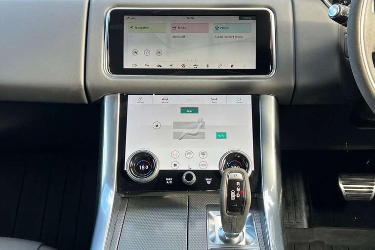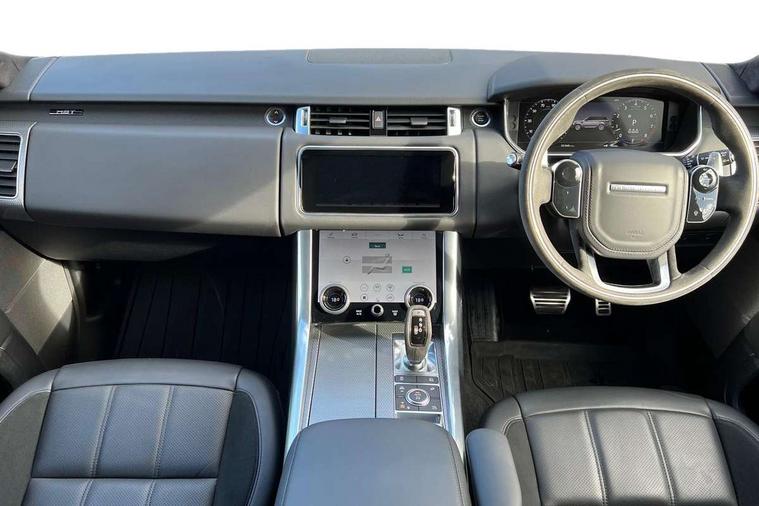 All Terrain Info Centre, Android Auto, Apple car play, Bluetooth connectivity, Clear exit monitor, Driver condition monitor, Electric power assisted steering (EPAS), Incontrol apps in vehicle touchscreen, Interactive Driver display instrument cluster, Mist sensor, Navigation pro system with 10" touch screen, app interface and media storage, Powered gesture tailgate/boot lid, Pro services and wifi hotspot, Push button start, Rear traffic monitor, Remote premium - Upgraded Incontrol remote app including remote climate control (engine dependent), remote lock + Unlock and remote beep + flash, TFT Virtual Instrument Panel, Touch pro duo system, Traffic sign recognition with adaptive speed limiter, Trip computer, Adaptive dynamics, All terrain progress control, Configurable dynamics, Electronic air suspension, Gradient release control (GRC), Terrain Response 2 with dynamic program, Twin speed transfer box, Bluetooth audio streaming, DAB Radio (Digital Audio Broadcasting), Incontrol protect - SOS emergency call with automatic collision detection, optimised assistance call and Incontrol remote app essential, USB/aux input socket, Acoustic front and toughened rear side glass, Acoustic laminated front windows, Adaptive brake lights, Aluminium bonnet, Auto dimming interior rear view mirror, Automatic headlights, Body coloured door mirrors, Body coloured side sills and bumpers corners, Electric windows with one touch open/close and anti trap, Electrical towing preparation, Engine cover, Follow me home lighting, Front and rear recovery eyes, Front fog lights, Headlight power wash, Heated rear window, Heated windscreen includes heated washer jets, HST badge, Illuminated metal treadplates with brand name script, LED rear lamps, Power fold, auto-dimming, heated door mirrors with memory and approach lights, Privacy glass (Tinted glass rear of B pillar), Rain sensing windscreen wipers, Rear fog lights, Rear wash/wipe, Remote window closing, Side repeater indicators in mirror, Sport Badge in black, Trailer stability assist, Twin bright tailpipes, 2 way active front head restraints, 2 way rear head restraints, 60/40 load through rear seats, Aluminium gear shift paddles, Auto air recirculation, Bright metal foot pedals, Centre console with armrest, Climate control memory, Customer configurable single point entry, Driver's footrest, Extended leather upgrade includes door top rolls and leather instrument panel mid section, Front and rear cupholders, Front door storage space, Front map lights, Front seat back map pockets, Front stowage pocket, Front/rear passenger grab handles, Heated steering wheel, Isofix child seat preparation, Loadspace light, Loadspace mounting provisions, Lockable glovebox, Multifunction steering wheel, Pollen filter, Power socket, Reach/rake electric adjustable steering column + entry/exit tilt away, Rear centre armrest, Rear ISOFIX, Roller blind loadspace cover, Sports pedals, Suede cloth steering wheel, Three 12V accessory power outlets, Carbon fibre exterior pack - Range Rover Sport, 3 point seatbelts on all seats, Anti-lock braking system (ABS), Brake pre-fill technology, Cornering brake control (CBC), Curtain airbags, Customer configurable autolock, DSC - Dynamic Stability Control, Dual stage driver/passenger airbags, EBD - Electronic brakeforce distribution, Electric parking brake, Electronic traction control, Emergency braking includes city, urban AEB and pedestrian, Front seatbelt pretensioners, Gradient acceleration control, Height adjustable front seatbelts, Hill descent control, Hill launch assist, Low traction launch, Passenger seat occupant detector with front airbags, Power operated child locks, Roll stability control, Seatbelt warning, TPMS (Tyre pressure monitoring system), Immobiliser, Intrusion sensor, Keyless entry, Locking wheel nuts, Perimetric and volumetric anti theft alarm, Remote locking,