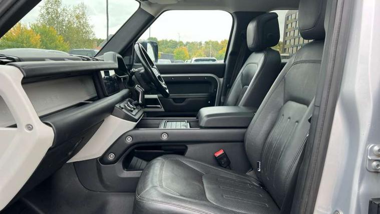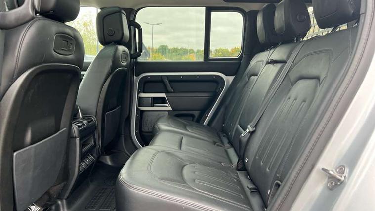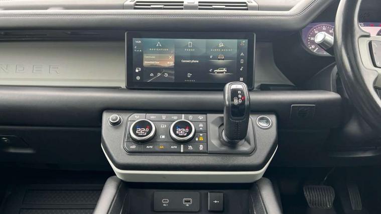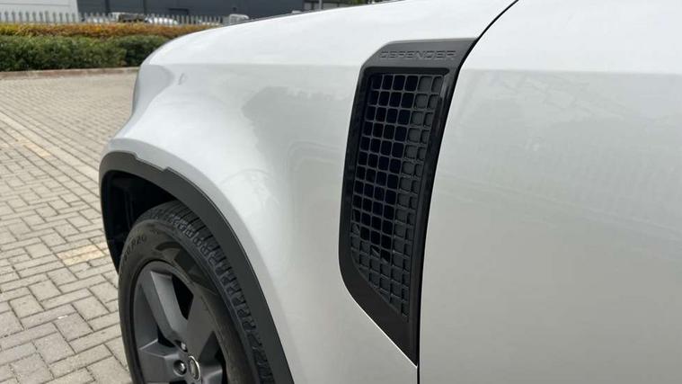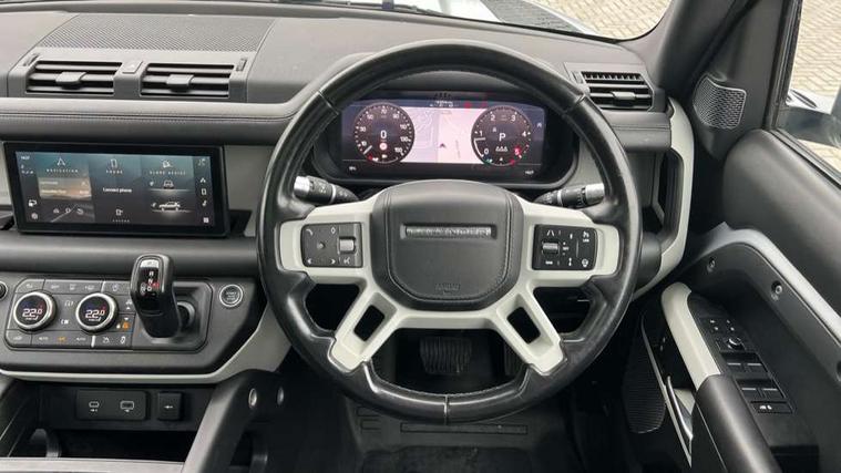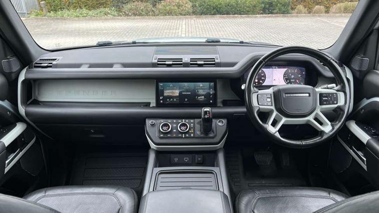 10" touch screen, 360 degree parking aid, 3D Surround Camera with 360 View, 180 Rear View, Front Traffic Detection, Forward Vehicle Guidance, Tow Hitch Assist and clear sight Ground View, Adaptive cruise control, Android Auto, Apple CarPlay, Blind spot assist, Bluetooth system, Clear exit monitor, Click and go integrated base unit, Connected navigation pro, Driver condition monitor, Interactive driver display, Lane keep assist, PAS, Pivi Pro connected navigation system with upgraded Infotainment, Rear collision monitor, Rear traffic monitor, Traffic sign recognition with adaptive speed limiter, Trip computer, Wade Sensing, Adaptive dynamics, Electronic air suspension, DAB Radio (Digital Audio Broadcasting), Automatic headlight levelling, Automatic headlights, ClearSight interior rear view mirror, Front fog lights, Heated windscreen, LED tail lights, Matrix LED headlights with signature DRL, Power fold, auto-dimming, heated door mirrors with memory and approach lights, Puddle lights, Rain sensing windscreen wipers, Signature graphic (with interior storage), Sliding panoramic roof, Standard treadplates, 14 way heated and cooled electric adjustable memory front seats with 4 way manual headrests, Carpet mats, Electric reach + rake adjustable steering column, Extended leather upgrade, Front passenger isofix child seat attachment, Heated steering wheel, Leather gearshift, Leather steering wheel, Loadspace cover, Morzine headlining, Multifunction steering wheel, Rear headrests, Rear ISOFIX, Sunvisors with illuminated vanity mirrors, Twin front cupholders with cover, Windsor leather upholstery, Online pack with data plan - Defender, 5 x 3 point seatbelts, ABS, Driver and passenger airbags, Emergency braking, ESP + traction control, TPMS (Tyre pressure monitoring system), Alarm, Immobiliser, Intrusion sensor, Keyless entry and go, Locking wheel nuts, Remote locking,