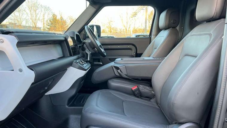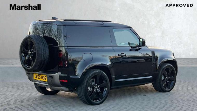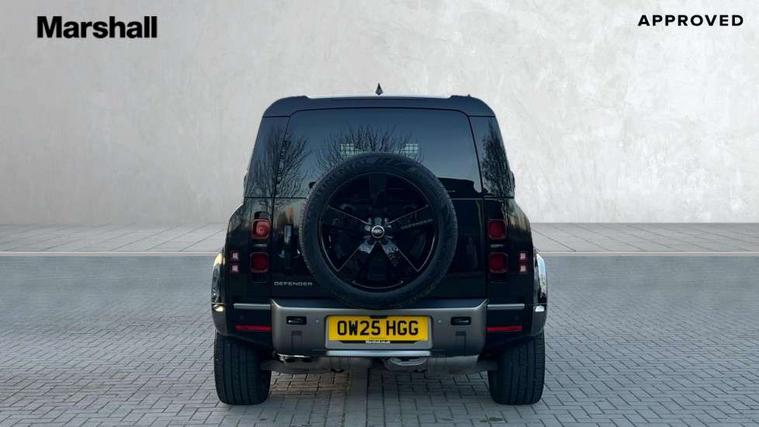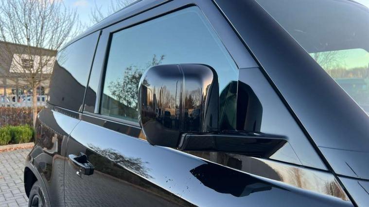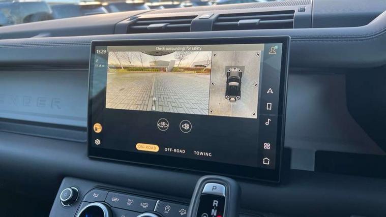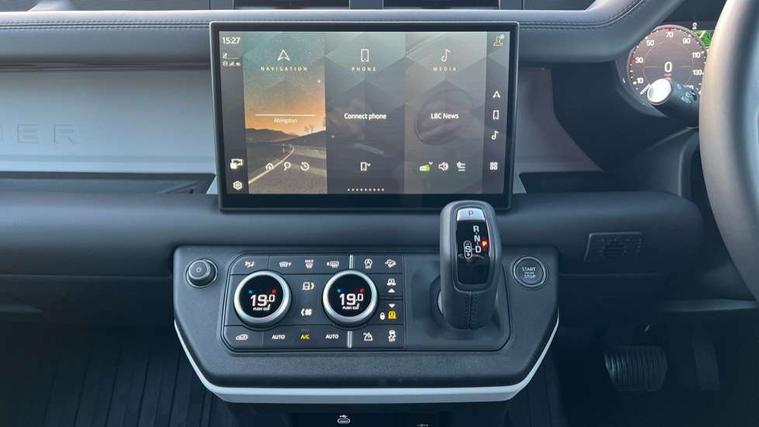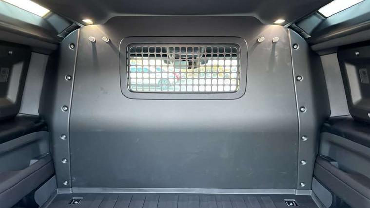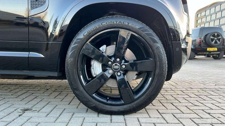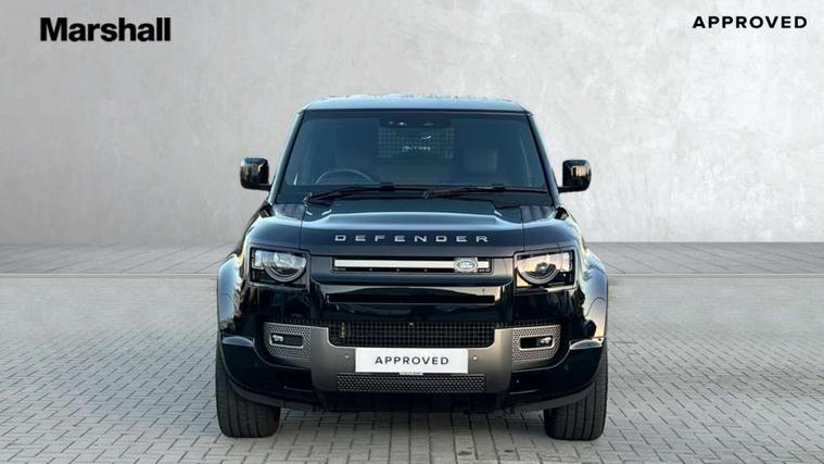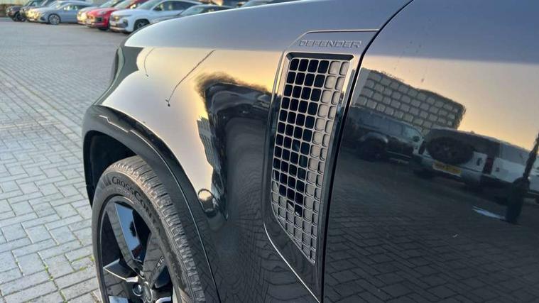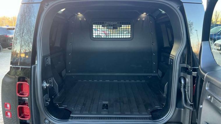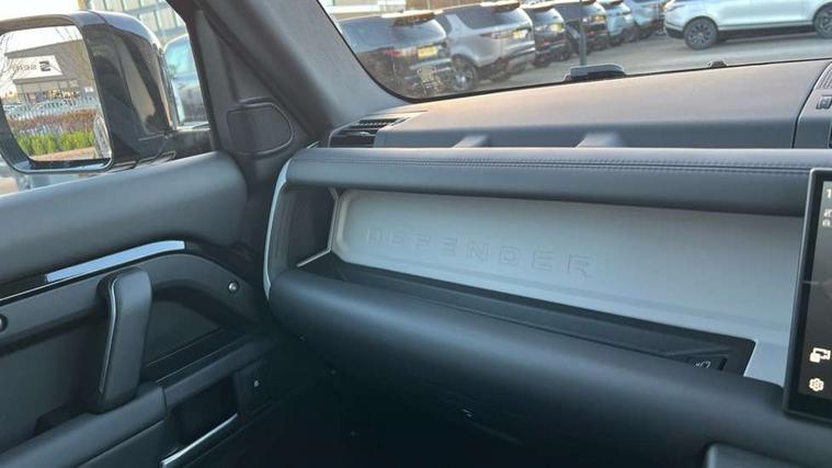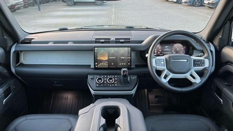 Customer Configurable Autolock, 11.4" touchscreen, 360 parking aid, 3D Surround Camera with 360 View, 180 Rear View, Front Traffic Detection, Forward Vehicle Guidance, Tow Hitch Assist and clear sight Ground View, Adaptive cruise control, Blind spot assist, Brake Hold, Driver condition monitor, Electric power assisted steering (EPAS), Interactive Driver display, Lane keep assist, Low traction launch, Pivi pro connected, Rear collision monitor, Rear traffic monitor, Traffic sign recognition adaptive speed limiter, Trip computer, Tyre pressure monitor, Android Auto, Apple CarPlay, DAB Radio (Digital Audio Broadcasting), Meridian 280W sound audio system with 7 speakers with subwoofer, Alpine lights, Assisted tailgate, Automatic headlight levelling, Automatic headlights and rain sensitive front wipers, Body coloured bonnet, Body coloured exterior Utility Panel, Centre high mounted stop light, Electric heated/power fold door mirrors with approach lights and auto dimming driver side, Electric windows with one touch open/close and anti-trap, Follow me home lighting, Front fog lights, Heated rear window with timer, Heated windscreen, LED tail light, Matrix LED headlights with signature DRL, Privacy glass, Puddle lights, Rear fog lights, Rear wash wiper, Side-hinged tailgate, Soft close tail door, Standard roof, Standard tail door, Standard tread plates, Additional lashing points, Black exposed rear recovery eyes, Configurable cabin lighting, Dual zone climate control, Durable rubber cabin flooring, Electric adjustable steering column, Footwell lights, Front jump seat and folding front centre armrest, Full height bulkhead behind row 1 seats, Glovebox storage, Heated steering wheel, High sided rubber mats, Leather steering wheel, Loadspace cover, Loadspace hooks, Loadspace rubber mat, Overhead stowage for sunglasses, Rear centre headrest, Rear reading light, Sunvisors with illuminated vanity mirrors, Upgraded loadspace LED lighting, Online pack - Defender with data plan, Brake pad wear indicator, Electronic traction control, Emergency braking, Front airbags, with passenger seat occupant detector, Power operated child locks, Remote for (e-Call, Optimised assistance call, InControl app, Climate, beep and flash and door), Seat belt reminder, Intrusion sensor, Keyless entry system, Locking wheel nuts, Spare wheel lock, 8 speed automatic transmission, ABS and EBA, All wheel drive, CBC - (Cornering brake control), Dynamic stability control, Electronic brake force distribution, Electronic park brake, Gradient acceleration control, Hill Descent Control, Hill start assist, Particulate filter (DPF), Push button start, Roll stability control, Trailer stability assist, Twin speed transfer box (high/low range), Extended leather upgrade,