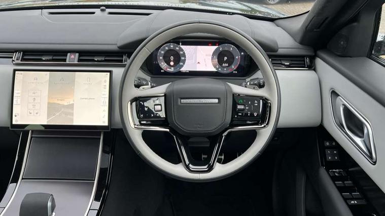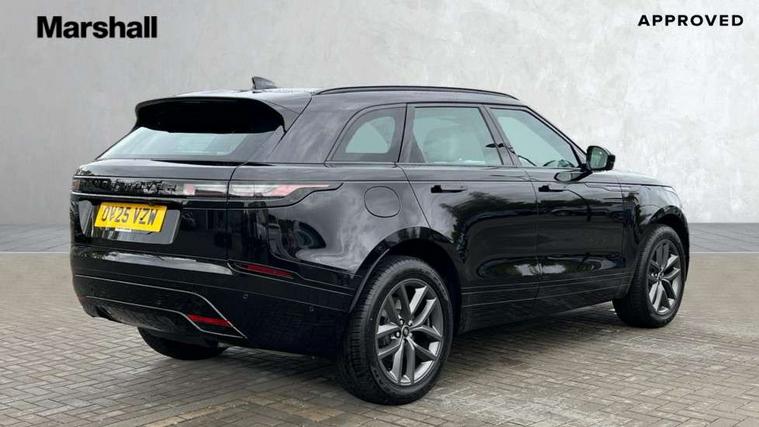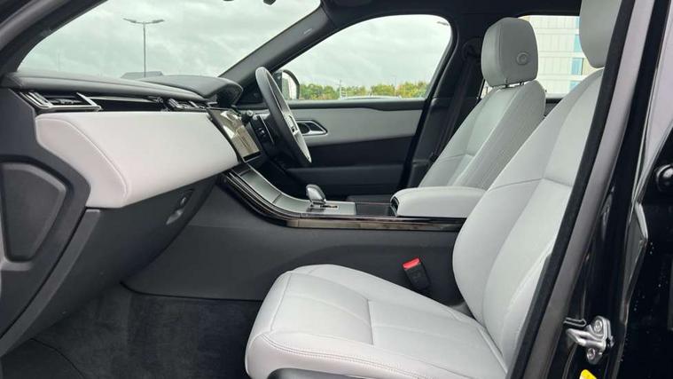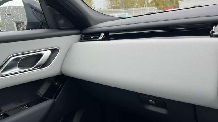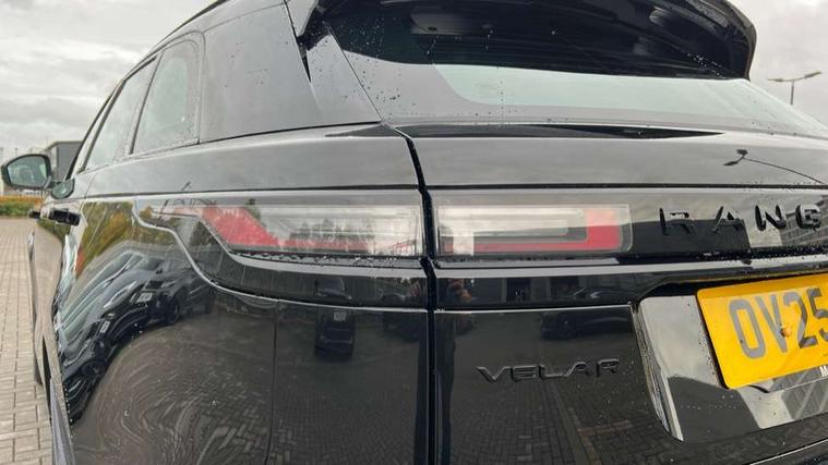 3D surround camera includes forward traffic detection and vehicle guidance, Android Auto, Apple CarPlay, Blind spot assist, Bluetooth connectivity, Brake pad wear indicator warning light, Driver condition monitor, eCall emergency call system, Front and rear parking aid, InControl remote, Land Rover InControl apps, Lane keep assist, Pivi pro with connected navigation, Rear traffic monitor, Service indicator, Speed proportional electronic power assisted steering (EPAS), Traffic sign recognition with adaptive speed limiter, Trip computer, Voice control system, Wade Sensing, Wireless device charging, 8 speed automatic transmission, Adaptive dynamics, All terrain progress control, Coil suspension system, Open differential with torque vectoring by braking, Single speed transfer box, DAB radio, Steering wheel mounted controls, 3rd brake light, Acoustic laminated windscreen, Auto dimming interior rear view mirror, Auto high beam assist, Automatic headlamp levelling, Automatic headlights, Black roof rails, Body coloured bumpers, Boot protection plate, Electric windows with one touch open/close and anti trap, Flush deployable exterior door handles, Follow me home headlights, Heated rear window with timer, Heated washer jets, Heated windscreen, LED headlights with signature DRL, Metal front tread plates, Metal load space scuff plates, Power fold, auto-dimming, heated door mirrors with memory and approach lights, Rain sensor windscreen wipers, Rear animated directional indicators, Rear fog lights, Rear side wing doors, Rear wash/wipe, Tailgate/boot lid spoiler, Trailer stability assist, Velar badge, 14 way electrically adjustable front seats with driver's memory function, 3 seat bench in 2nd row, Ambient lighting, Bright metal pedals, Carpet mats, Driver/passenger sunvisors with illuminated vanity mirrors, Ebony morzine headlining, Electrically adjustable steering column, Heated steering wheel, Isofix system on outer rear seats, Loadspace cover, Overhead lighting console, Overhead stowage for sunglasses, Passive front headrests, Rear air vents, Rear centre headrest, Single front passenger seat, Twin front cupholders, Twin sliding front centre armrest, Online pack with data plan - Velar, Power socket pack 2 - Velar, 380mm front brakes and 325mm rear brakes, 3x3 point rear seatbelts, Anti-lock braking system (ABS), Cornering brake control, Curtain airbags, Customer configurable autolock, Door side intrusion beams, Driver airbag, DSC - Dynamic Stability Control, Electronic brake force distribution, Electronic parking brake, Electronic traction control, Emergency braking, Front and rear seatbelt reminder, Hill descent control, Hill launch assist, Low traction launch, Passenger airbag, Power operated child locks, Rear airbags, Roll stability control, Side airbags, Tyre pressure monitoring system (TPMS), Global lock and unlock switch on driver door, Immobiliser, Intrusion sensor, Keyless entry, Lock only switch on front passenger door, Locking wheel nuts, Perimetric alarm, Remote central locking, All season tyres,