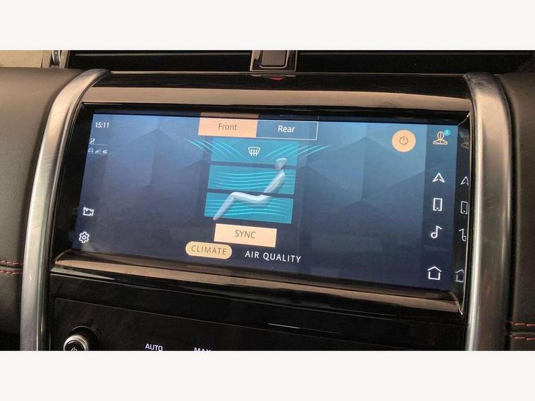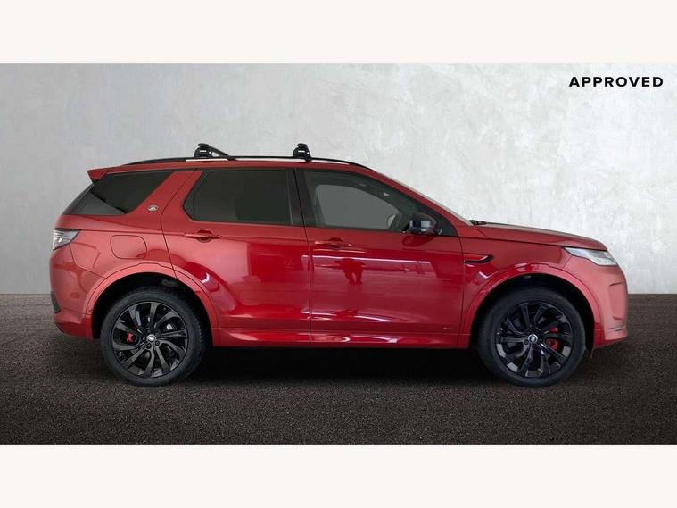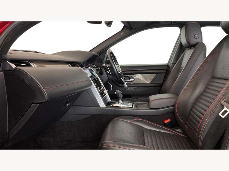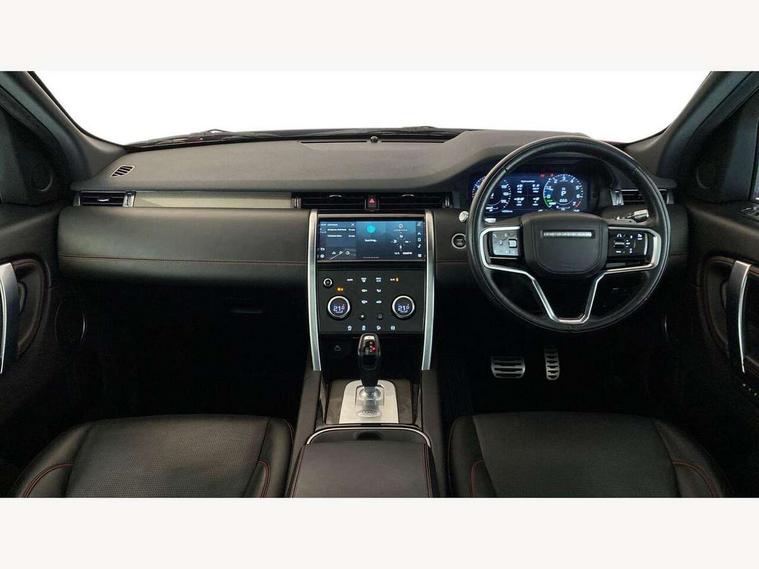 10" touch screen, 3D Surround Camera with 360 View, 180 Rear View, Front Traffic Detection, Forward Vehicle Guidance, Tow Hitch Assist and clear sight Ground View, Adaptive cruise control, Android Auto, Apple CarPlay, Blind spot assist, Clear exit monitor, Driver condition monitor, Front and rear parking aid, InControl remote premium, Interactive driver display, Lane keep assist, PAS, Pivi Pro connected navigation system with upgraded Infotainment, Powered tailgate/boot lid, Rear collision monitor, Rear traffic monitor, Rear view camera, Service interval indicator, Traffic sign recognition with adaptive speed limiter, Trip computer, Wade Sensing, 7 kW onboard charger, All terrain progress control, Coil suspension system, Public charging cable, Terrain Response 2, Bluetooth connectivity including audio streaming, Digital Audio Broadcast radio-DAB, Steering wheel mounted audio controls, Automatic headlight levelling, Automatic headlights, ClearSight interior rear view mirror, Door mirror memory, Electric front/rear windows, Fixed panoramic sunroof with powered sunblind, Illuminated metal front treadplates with R dynamic branding, Power fold, auto-dimming, heated door mirrors with approach lights, Rain sensing windscreen wipers, Rear fog lights, Rear side wing doors, Rear wiper, Bright metal pedals, Centre console with armrest, Front passenger isofix child seat attachment, Perforated full leather steering wheel, Rear headrests, Satin chrome gearshift paddles, Sunvisors with illuminated vanity mirrors, Tilt/reach adjustable steering wheel, Black exterior pack - Discovery sport, Online pack - Discovery sport, 3 point seatbelts on all seats, ABS, Brake hold function, Collision mitigation braking system, Cornering brake control (CBC), Driver/Front Passenger airbags, Drivers knee airbag, Electronic brake force distribution, Electronic parking brake, Emergency brake assist, ESP + traction control, High speed emergency braking, Hill descent control, Hill launch assist, Pedestrian airbag system, Rear seat ISOFIX, Side and curtain airbags for front and 2nd row seats, Trailer stability control, Tyre pressure monitoring system, Battery Back Up System (BBUS) with tilt sensor, Intrusion sensor, Keyless entry, Locking wheel nuts, Centre stack rails in noble chrome,
