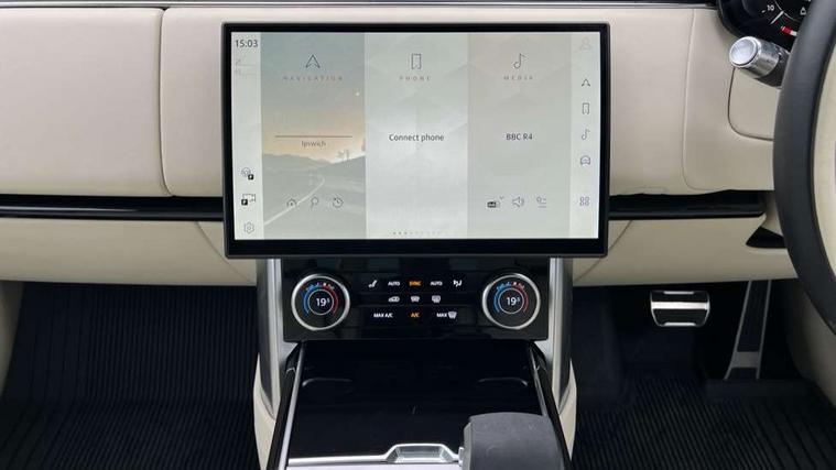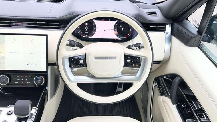 13.1" Touchscreen, 3D surround camera inc frwd traffic detection, vehicle clearance guidance, 3D view, clearsight ground view, manoevure light, 360 parking aid, wade sensing, Adaptive cruise control with steering assist, All Terrain Info Centre, All wheel steering, Android Auto, Apple car play, Blind spot assist, Bluetooth connectivity streaming, Configurable programs, Driver condition response, Eco mode, Electric power assisted steering (EPAS), Emergency call service, Front and rear parking aid, Head up Display, Interactive driver display, Lane keep assist, Powered gesture tailgate/boot lid, Rear collision monitor, Rear traffic monitor, Remote, Traffic sign recognition with adaptive speed limiter, Wi-Fi Enabled with data plan, Wireless device charging with phone signal booster, 8 speed automatic transmission, Active damper technology system, Adaptive dynamics, All terrain progress control, All Wheel Drive (AWD), Automatic access height, Electronic active differential with torque vectoring by braking, Electronic air suspension with dynamic response, Terrain Response 2 Auto, Twin speed transfer box, Digital Audio Broadcast radio-DAB, Meridian 1600W signature sound system, Pivi pro including smart settings, Connected navigation pro, nuance speech, USB socket, Acoustic laminated windscreen, Animated directional indicators, Autobiography badge, Automatic headlights, Automatic levelling headlights, Centre high mounted stop light, ClearSight interior rear view mirror, Digital LED headlights with signature DRL and image projection, Electric windows with one touch open/close and anti trap, Flush deployable exterior door handles, Front and rear recovery eyes, Front fog lights, Headlamp power wash, Heated rear window, Heated washer jets, Illuminated metal treadplates with Autobiography script, Laminated front and rear side glass, LED tail lights, Less tow hitch receiver, Power fold, auto-dimming, heated door mirrors with approach lights, Rain sensing windscreen wipers, Rear boot, Rear fog lights, Rear side wing doors, Rear wash/wipe, Side repeater indicators in mirror, Solar attenuating windscreen, Trailer stability assist, Winter wiper park position, 12V power sockets, 3 seat bench in 2nd row, Air quality sensor, Auto folding loadspace cover, Bright metal pedals, Cabin air purification pro, Cabin lighting, Customer configurable single point entry, Driver and passenger front seat armrests, Easy boot loading, Ebony Carpet, Electric rear side window sunblinds, Four zone climate control, Front and rear cupholders, Front and rear grab handles, Front head restraints, Gearshift paddles, Heated steering wheel, Hook in load space, Loadspace light, Luggage tie down in loadspace, Multifunction steering wheel, Rear centre armrest, Rear head restraints, Rear ISOFIX, Single front passenger seat, Soft close doors, SV bespoke carpet mats, Twin blade sunvisors with Illuminated vanity mirrors, Upper and lower glovebox, Versatile loadspace floor in tailgate, Online pack with data plan - Range Rover, 3x3 point rear seat belts, Anti-lock braking system (ABS), Black brake calipers, Brake hold function, Cornering brake control (CBC), Customer configurable autolock, DSC - Dynamic Stability Control, Electronic brake force distribution, Electronic parking brake, Electronic traction control, Emergency brake assist, Emergency braking, Front airbags with passenger seat occupant detector, Front side airbags, Hill descent control, Hill launch assist, Illuminated seat belt buckles, Low traction launch, Occupant protection assist, Power operated child locks, Roll stability control, Tyre pressure monitoring system (TPMS), Immobiliser, Intrusion sensor and alarm, Keyless entry, Locking wheel nuts, Remote central locking, Noble chrome controls,