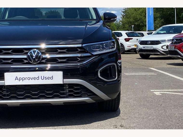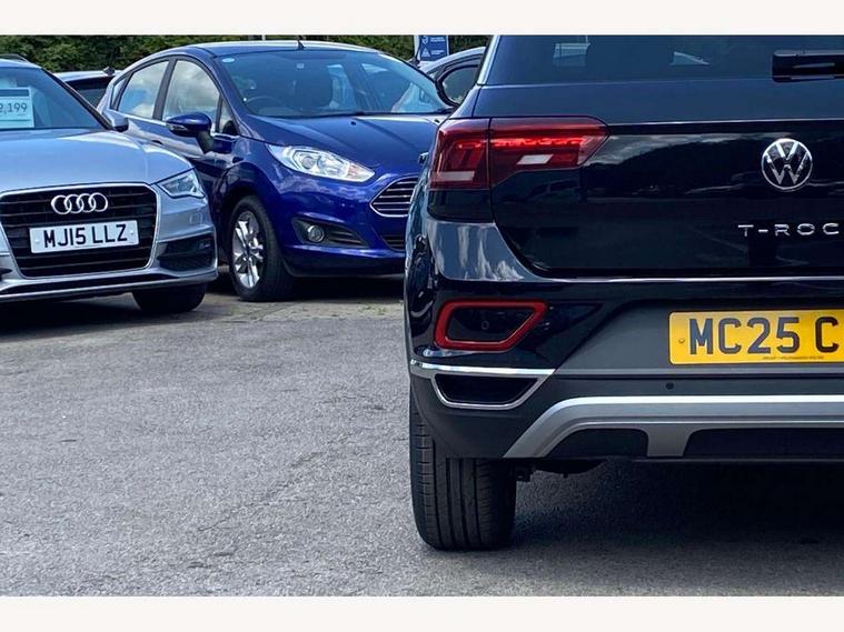 10.25" Digital cockpit pro, Advanced driver attention and drowsiness monitor, Emergency call service, Lane keeping system Lane Assist, Mobile phone interface, Modified key software - reduce switch off time for key status change to Long no motion, Online services, Park assist including front and rear parking sensors, Power assisted speed sensitive steering, Service interval indicator, Tailgate/trunk lid release from outside, Think blue trainer driver tips and journey analysis, Warning sound and light for front seatbelts unfastened, Wireless app connect, Battery regeneration during braking, Start/stop function with battery regeneration, DAB Digital radio, Diversity antenna for FM reception, Front and rear 6 speakers, Music playback - MP3, WMA and AAC files, Premium USB cable in choice of either Apple or Android smartphone compatibility, SD card slot, Simultaneous pairing of 2 compatible mobile devices, Title and cover art display, We Connect and We Connect Plus functionality, Auto dimming interior rear view mirror, Automatic hazard lights activation under emergency braking, Automatic headlight control with LED separate daytime running lights with coming/leaving home function, Body colour sports bumpers with silver metallic underbody fascia, Body coloured exterior mirror housings and door handles, Dynamic headlight range control with self adjusting whilst driving, Electrically adjustable and heated door mirrors, Extended roof spoiler, Exterior mirrors aspherical on driver side, convex on front passenger side, External USB type C socket and charging sockets, Front windscreen wiper with intermittent wipe and 4 position delay, Heated rear window, LED 3rd brake light, LED rear combination lamps, LED rear number plate lights, Light mode for poor weather, rain, fog or snow, Power windows with comfort operation and circuit breaker, Privacy glass for rear side windows and rear window, Rain sensor, Rear exhaust tailpipe, Rear fog light on one side and reversing lights on both sides, Rear side wing doors, Rear wash/wipe with intermittent wipe setting, Remote electrically foldable door mirrors, puddle lights and reverse activated passenger's door mirror, 12V power socket in centre console, 3 rear head restraints, 3 seat bench in 2nd row, 4 load lashing points in luggage compartment, Air care climatronic air conditoning system with active combination filter and 2-zone temperature control, Chrome plated radiator grille inserts, air vent surrounds and light switch surrounds, Door and side trim panel with leatherette insert, Drawer under drivers seat, Front + rear carpet mats, Front centre armrest, Front comfort sports seats, Front cupholders x 2, Front footwell illumination, Front seat back storage pockets, Glove compartment door with light, Instrument lighting, white adjustable panel illumination, Interior ambient lighting and surround lighting, Interior light delay, Isofix child seat preparation, Leather gearshift handle, LED interior light with switch off delay/dimmer and 2 front/rear LED reading lights, Load-through provision with cup holder when folded down ('Unsplit rear seat bench, split folding backrest, with centre armrest), Luggage compartment lighting, Non-folding front passenger seat backrest, Single front passenger seat, Storage compartment in left and right luggage area, Storage compartment in rear doors, Storage compartments in driver and front passenger doors, Sunvisors with illuminated vanity mirrors, Variable boot floor, height adjustable and removable, Driver assistance pack without proactive passenger protection - T-Roc, 3 point height adj front seatbelts + pretensioners, 3 point seatbelts in outer rear with ECE label, ABS, Child locks on rear doors, City emergency braking and pedestrian monitoring, Driver and front passenger airbag with front passenger airbag deactivation, Driver and front passenger safety-optimised head restraints, Drivers seatbelt reminder, Electronic parking brake, Electronic Stability Control (ESC) inc EDL (Electronic Differential Lock) and ASR (Traction Control), Front and rear passengers curtain airbag system including front side airbags, Predictive pedestrian protection, Rear disc brakes, Two tone horn, Tyre pressure loss indicator, Volkswagen roadside assistance, Deep iron grey decorative inserts in dashboard, centre console and front door trim panels, Trims for alloy wheels,
