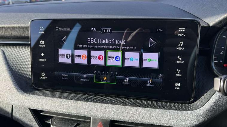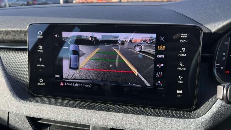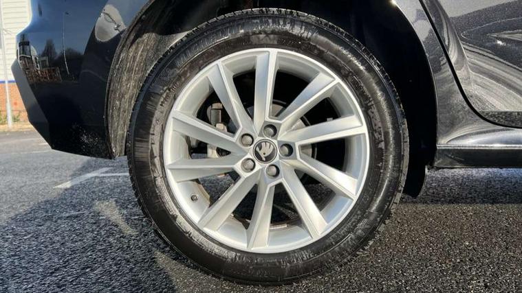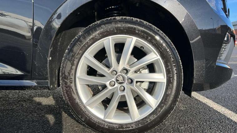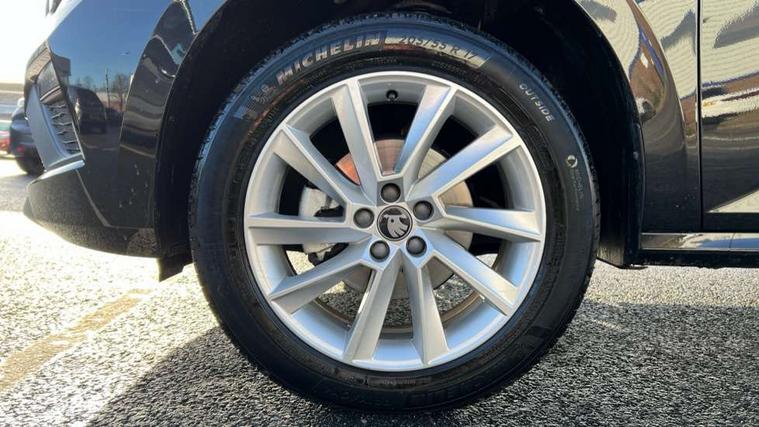 Advanced driver attention and drowsiness monitor, Bluetooth system, E-call, Front assist system, PAS, Rear parking sensors, Rear view camera, Service indicator, Speed limiter, Traffic sign recognition, Virtual cockpit with 10.25" display, Wireless smartlink, 4 USB C ports, 8 Speakers, 9.2" Skoda navigation display, DAB Digital radio, Auto dimming rear view mirror, Automatic headlight control with coming home and leaving home feature, Black roof rails, Body colour bumpers, Body colour door mirrors and handles, Chrome grille surround, Front and rear electric windows, Full LED headlights, Heated rear window, LED brake lights, LED daytime running lights, LED front turning lights, LED high beam, LED low beam, LED third brake light, Rear LED fog light, Rear side wing doors, Rear wiper, Ticket holder inside windscreen, 12V socket in luggage compartment, 3 seat bench in 2nd row, Black hotstamping, Cargo elements, Chrome inner door handles, Driver and passenger sun visors with vanity mirror, Dual zone climate control, Front and rear roof lights, Front centre armrest, Front head restraints, Glove compartment with illumination, Height adjustable driver seat, Height adjustable front passenger seat, Ice scraper, Inner circulation control with pollen filter, ISOFIX on front passenger seat, Isofix preparation for back seats, Krepp recycled decor inserts, Leather gearknob and handbrake lever, Loft cloth upholstery, Manual lumbar support for front seats, Net package and top tether hooks in boot space, Net under rear shelf, Overhead glasses storage compartment, Pocket on the back of both front seats include mobile phone pockets, Rake/reach adjustable steering wheel, Reading lights, Satin black door inserts, Single front passenger seat, Textile floor mats, Third rear headrest, Top tether for front passenger seat, Umbrella in driver's door, 3x3 point rear seatbelts, Airbags - driver and front passenger, Disc brakes, ESP, Extended and predictive pedestrian/cyclist protection, Front passenger airbag deactivation switch, Front side airbags with curtain airbags, Hill hold control, Manual leather parking brake, Manual rear child locks, One tone horn, Seatbelt reminder for driver an co-driver, Traction control, Tyre pressure monitor, Anti-theft alarm system with interior monitoring, backup horn, towing protection and remote central locking with SAFE system, Anti-theft wheel bolts, Electronic engine immobilizer,