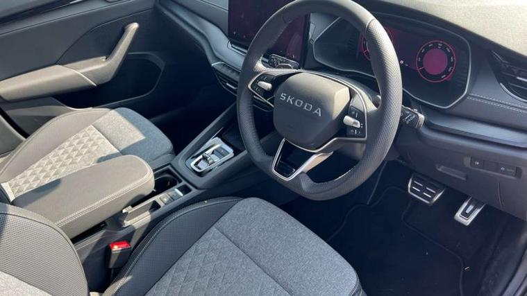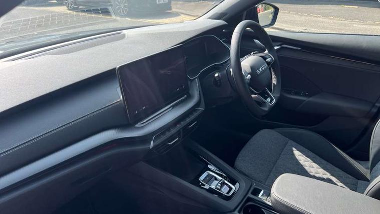 1x USB Typc C port in rear view mirror, 4x USB Type C ports - 2x in front centre console and 2x in rear (45W), Drive mode selection, Driver fatigue sensor, eCall emergency system, Front assist system, Progressive dynamic steering, Traffic sign recognition, Turn Assist, Virtual Cockpit - 10.25" digital display, Voice control system, Wireless charging (15W) with cooling function, Wireless SmartLink for Apple CarPlay and Android Auto, Sports suspension with 15mm lower, 13" touchscreen display with navigation, DAB Digital radio, Aero front windscreen wipers with intermittent function, Auto dimming rear view mirror, Body colour bumpers, Body colour door handles, Electric front and rear windows, Exterior gloss black sports styling including front grille, window surrounds, door mirrors and badging, Gloss black diffuser, Gloss black spoiler, Heated rear windscreen, High beam control, High level third brake light, Ice scraper in fuel cap, LED daytime running lights, Logo projection in front doors, Rain and light sensors, Rear fog light on one side, Rear privacy glass, Rear side wing doors, 12 volt socket in boot, 3 rear headrests, 3 seat bench in 2nd row, 4 foldable roof handles, Aluminium pedals, Front head restraints, Front sport seats, Heated front seats, Illuminated glovebox, Interior door handles in dark chrome, Jumbo Box storage, Luggage compartment lighting x2 lights, Mechanical rear seat release from boot, Parcel shelf - folding, Single front passenger seat, Steering wheel in black leather with black stitching, Storage compartments in left and right of boot, Sun visors with mirrors, Sunglasses storage, Ticket holder, Umbrella in door panel, Unsplit rear bench seat, split folding backrest with centre armrest with cupholder, SportLine Design Selection pack - Octavia, 3x3 point rear seat belts, Alarm with interior monitoring, tilt sensor and back up horn, Curtain airbags and front side airbags, Driver and front passenger airbags, Drivers knee airbag, Electronic parking brake, ESC including ABS, EBV, MSR, ASR, EDS, HBA, DSR, Front central airbag, Hill hold assist, ISOFIX on front passenger seat and outer rear seats, Passenger airbag deactivate switch, Three point seat belts in front and rear, Two tone horn, Tyre pressure monitor, Visual and acoustic seat belt reminder, Warning reflectors in front door, Anti-theft wheel bolts, Keyless start/stop, Remote central locking, Gloss black air vent surrounds,