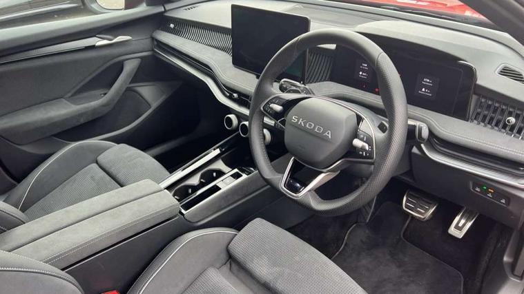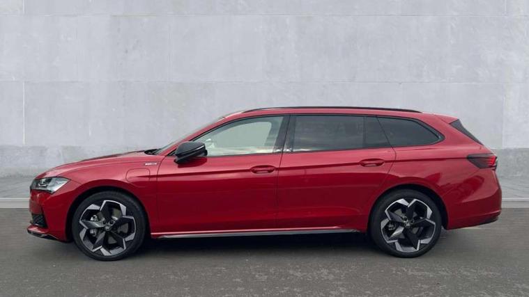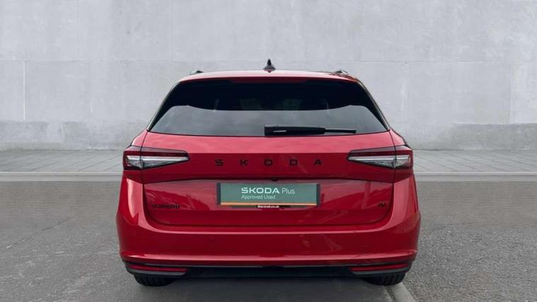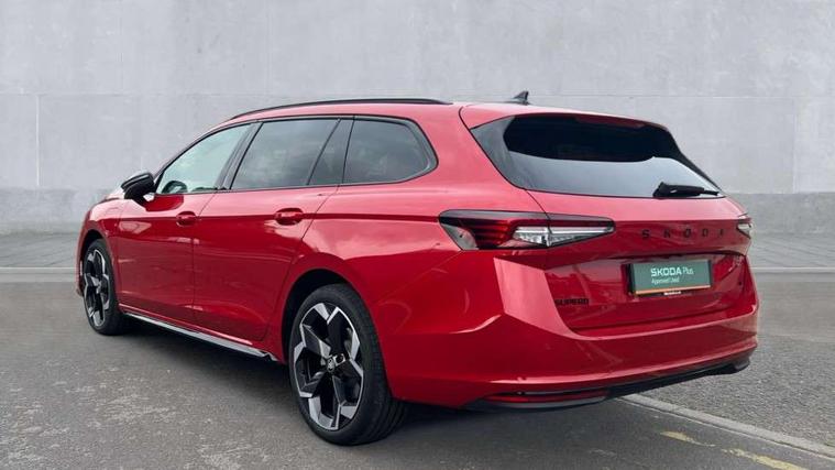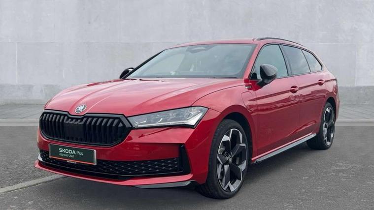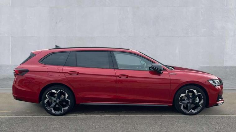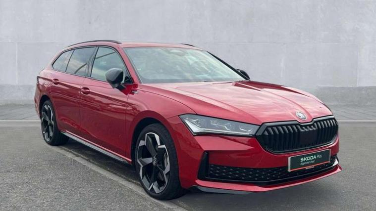 13" touchscreen display with satellite navigation, 4x USB-C ports (2x in front centre console and 2x in rear) (45W), Adaptive cruise control with speed assist, lane assist plus and traffic tram assist, Blind spot detection with door exit warning, Bluetooth system, CareConnect and Emergency Call, ChatGPT functionality, Drive mode selection, Driver fatigue sensor, Front assist with extended predictive pedestrian protection, Front cross traffic assist, PAS, Quick start all heating software functionality, Stop/start engine system, Traffic sign recognition, Turn assist with evasive assistance, Virtual Cockpit - 10.25" digital display, Voice control system, Washer for rear camera, Wireless charging for one smartphone (15W) with cooling function, Wireless smartlink apple carplay, SmartLink+ android auto, Dynamic chassis control plus with progressive dynamic steering, Mode 3 charging cable, DAB Digital radio, Display cleaner, FM radio connection, Web radio connection, Acoustic side windows and interior noise suppression, Backdrop lighting, Black exterior styling window and grille surrounds, Black roof rails, Body colour door handles, Dynamic range control with poor weather light and integrated fog light, Electrically adjustable, heated, folding and driver side auto-dimming door mirrors with memory function, integrated indicators and logo projection, Frameless auto-dimming rear view mirror with USB-C, Gloss black door mirrors, Ice scraper in fuel tank cap, LED 3rd brake light, Light assist with High beam control, Light assistant (coming/leaving home/tunnel light), Privacy glass, Rear fog lights (x2), Rear roof spoiler, Rear side wing doors, Rear windscreen wiper, Skoda lettering in black, Sportline badging, Sports bumpers, Windscreen wipers with rain sensor, 12V socket 1x centre console 1x boot, 14-way electrically adjustable, memory, front seats with 4-way pneumatic lumbar support, and extendable thigh support with smart comfort entry aid, 2x cargo elements in boot, 2x light in boot, 3 seat bench in 2nd row, 4x foldable bag hooks in boot, 60:40 Split folding rear seats, Aluminium pedals, Bottle holders in the front doors 1.5 litre bottle and rear 1.5 litre bottle, Cup holder in front with easy open mat, Front armrest with storage box, Front sports seats, Heated and ventilated front seats, Height adjustable front and rear head restraints, Illuminated glovebox, Interior lights with control switches, Isofix child seat fittings in outer rear and front passenger seats, LED front and rear reading lights, Single front passenger seat, Skoda lettering on steering wheel, Storage compartment with cover, Storage pockets on back of front seats, Sun visors with illuminated vanity mirrors, Ticket holder on A Pillar, Tri zone climate control, Umbrella in driver's door, Light and view package - Superb, Transport package - Superb Estate, 3 rear seatbelts, 8 Airbags - Front driver and passenger, front side driver and passenger, centre, curtain front and rear, drivers knee, Crew protect assist, Driver and passenger seatbelts with warning light, Electronic parking brake, ESC including ABS, EBV, MSR, ASR, EDS, HBA, DSR, RBS, CBC, multi-collision brake (MKB) and Auto hold, Hill hold assist, Power operated child lock in rear doors, Alarm with interior monitoring tilt sensor and back up horn, Backrest remote release from trunk, Electronic engine immobiliser, Keyless start/stop, Remote central locking with SAFE system, Third key, Walk away locking, Decorative front door sills, 19" Torcular polished black alloy wheels with anti theft wheel bolts, Tyre repair kit,