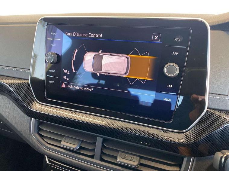 'Lights On' Reminder warning buzzer, 10.25" Digital cockpit pro, Advanced driver attention and drowsiness monitor, Blind spot monitoring, Car information display, Driver profile selection including ECO function, Dynamic road sign display, E-Sim card for online connectivity, eCall emergency call system, Front and rear parking sensors, Front assist, forward collision warning, autonomous emergency braking and speed limiter, Low washer fluid warning light, Multifunction computer with visual gear change recommendation for fuel consumption, Multifunction front facing camera for distance control, Operating permit alteration, Power assisted steering, Predictive adaptive cruise control, Preparation for navigation system with media and internet package, Preparation for We connect and We connect plus, Semi-automated driving assistance, travel assist including lane keeping system Lane Assist and emergency assisst, Speedo, rev counter, electronic odometer, trip, service interval display, exterior temperature and fuel gauge, Warning sound and light for doors and tailgate open, Warning sound and light for front seatbelts unfastened, Wireless Car net app connect with Apple CarPlay, combined functionality of Apple CarPlay/Android Auto and MirrorLink, Wireless charging, Misfuel prevention device, Start-stop system with battery regeneration (recuperation - energy recovery during braking), 2 USB C ports in front, 2 USB charging sockets on the centre console in the rear charging capacity upto 45W, Diversity antenna for FM reception, Music playback - MP3, WMA and AAC files, Radio, Automatic dimming interior rear view mirror, Automatic hazard lights activation under emergency braking, Automatic headlight control with LED separate daytime running light and coming home and leaving home feature, Body colour door handles, Body colour door mirrors, Body coloured bumpers, Dynamic headlight range control with self adjusting whilst driving, Electric folding door mirror, adjustable, heated with front passenger exterior mirror lowering function, Exterior mirrors convex on the left and aspherical on the right, Front and rear electric windows, Front door sill protectors with R-Line logo, Galvanised body, Heat insulating and laminated safety glass windshield, Heat insulating darkened glass in side and rear windows, High Beam Assist, automatic sensing for switching between dipped and main beam, LED rear combination lights, LED third brake light, Lower door sills and door pillars in black, Privacy glass for rear side windows and rear window, Rain sensor, Rear fog light on one side, reversing light on both sides, Rear side wing doors, Rear window aerial, Rear window wiper with intermittent control, Reflectors in all doors, Scuff plates, Tailgate with integrated roof spoiler, 12V Accessory socket in centre console, 2 Front and rear reading lights incorporating LED technology, 3 rear head restraints, 3 seat bench in 2nd row, 60/40 split folding rear seat backrest, Air care climatronic 2 zone air conditioning system, Ambient lighting, Brushed stainless steel pedals, Chrome plated radiator grille inserts, air vent surrounds and light switch surrounds, Cloth upholstery, Comfort front sport seats, Door and side trim panel, Drawer under drivers seat, Driver and front passenger sunvisor with vanity mirror, Dust and pollen filter, Front + rear carpet mats, Front centre armrest with storage compartment, Front footwell illumination, Front seat back storage pockets, Glove compartment door with light, Heated front seats, Heating and fresh air system with 4 stage blower, Height/reach adjust steering wheel, Instrument lighting white adjustable panel illumination, Interior light with switch off delay and dimmer, Isofix anchors for child seats on outer rear seats and front passenger seats, Leather gearshift handle, Leather wrapped multifunction steering wheel, Luggage compartment floor, Luggage compartment lighting, Manual front seats with height adjustment, Padded dashboard, Removable luggage compartment cover, Single front passenger seat, Storage compartment in drivers and front passengers door, Titanium black roof lining, Unsplit sliding rear seat bench, 3 point outer rear seat belts with ECE label, 3 Point seatbelt for centre rear seat, Anti-lock Braking System (ABS) with Hydraulic Brake Assist (HBA), Automatic post collision braking system, Disc brakes in front, Disc brakes in rear, Driver and front passenger safety-optimised head restraints, Drivers and Front Passengers airbags with front passengers airbag deactivation switch, ESC with EDL and ASR (traction control), Extended and predictive pedestrian/cyclist protection, Front and rear passenger curtain airbag system including front side airbags, Height adjustable front 3 point seatbelts + pretensioners, Hill start assist, Pre crash preventive occupant protection, Proactive passenger protection system in combination with front assist, Rear door child safety locks, Rigid safety cell with front and rear crumple zones, Single tone horn, Tyre pressure loss indicator, Volkswagen roadside assistance, Alarm with interior protection, Anti theft alarm system, Electronic engine immobiliser, Remote tailgate unlocking using key fob, Titanium Black Decorative inserts - R Line, Low rolling resistance tyres,