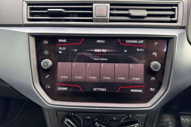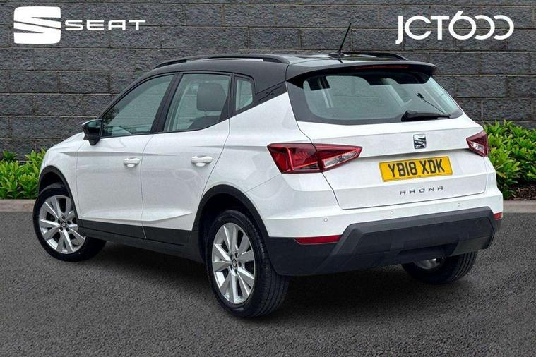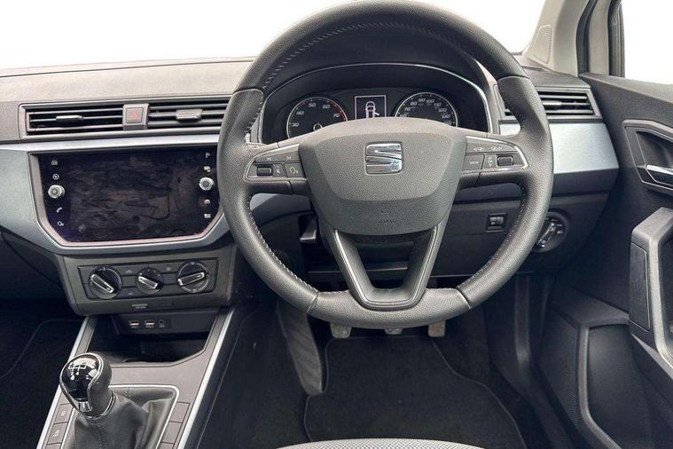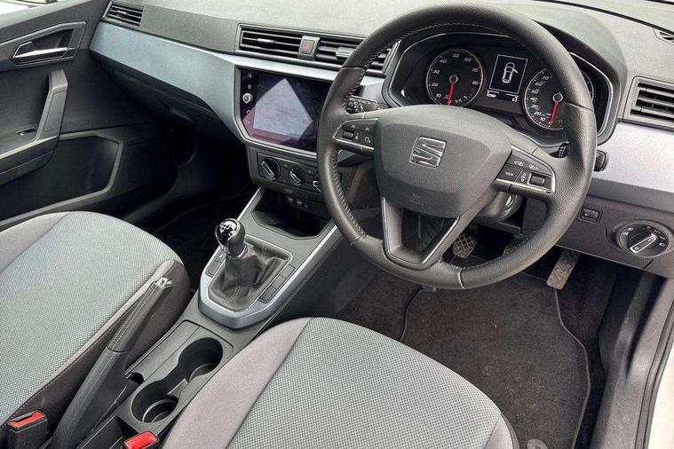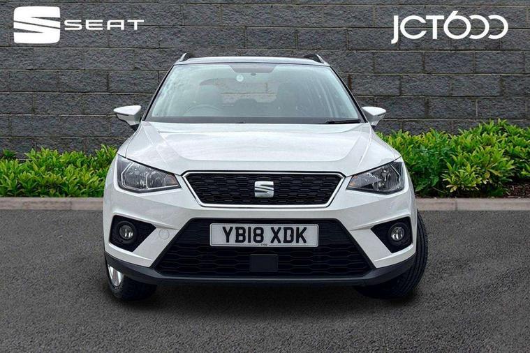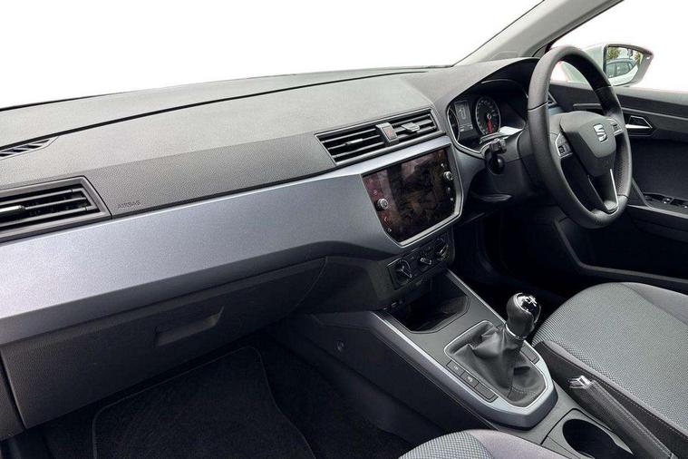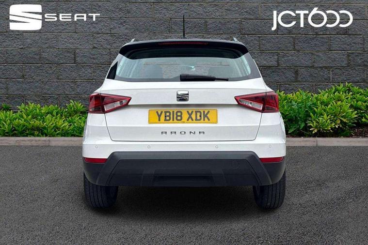 'Lights On' Reminder warning buzzer, Cruise control, Electric speed sensitive power steering, Front assistant collision mitigation, Outside temperature display, Rear parking sensor, Trip computer, Comfort suspension, 6 speakers, Bluetooth interface for hands free and audio streaming, DAB Digital radio, Steering wheel mounted audio controls, Automatic activation of hazard warning lights, Automatic headlights, Black roof rails, Black window surrounds, Body coloured bumpers, Body coloured door handle inserts, Chrome grille surround, Electric adjustable door mirrors, Electric front/rear windows with one touch/auto up/down, Electric headlight adjustment, Front fog lights with static cornering function, LED daytime running lights, Rear window wash/wipe, 2 cupholders, 3 rear height adjustable headrests, 60/40 split folding rear seat, Air conditioning, Ambient interior lighting, Cloth upholstery, Double boot floor, Driver and passenger sunvisors, Driver/front passenger seat height adjustment, Dust/pollen filter, Footwell ambient lighting, Front courtesy lights, Front reading light, Height/reach adjustable steering column, Illuminated boot, Isofix attachments on outer rear seats, Leather handbrake, Leather steering wheel and gear knob, Connectivity pack plus - Arona, 3 point seatbelts on all rear seats, ABS+EBA, Child locks on rear doors, Driver/Front Passenger airbags, Electronic stability control, Front and rear seatbelt reminder, Front side/curtain airbags, Height adjustable active front headrests, Hill hold control + Tyre Pressure monitor, Multi-Collision braking, Passenger airbag deactivate switch, Tiredness recognition system, Traction control, 2 folding remote keys with window open/close function, Immobiliser, Locking wheel bolts, Remote central locking + deadlocks, Interior chrome line trim, 17" Dynamic alloy wheels,