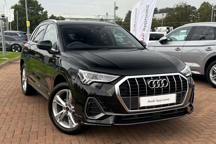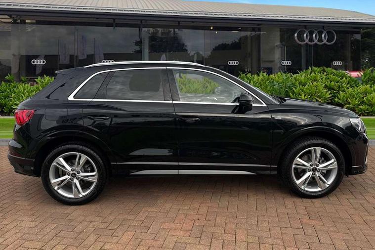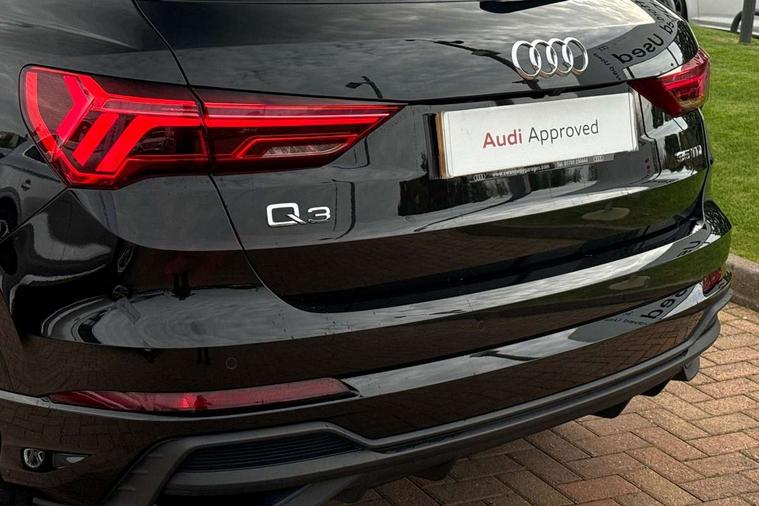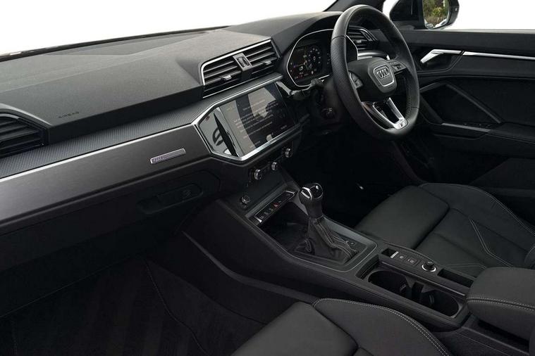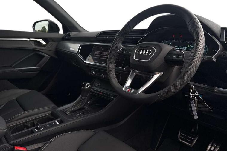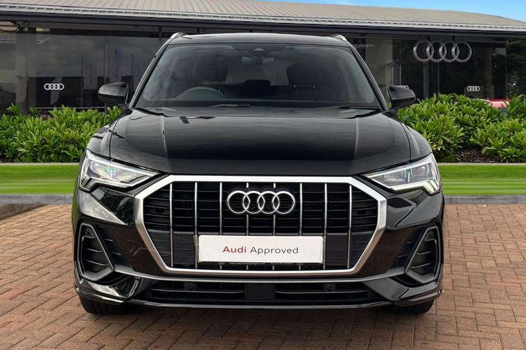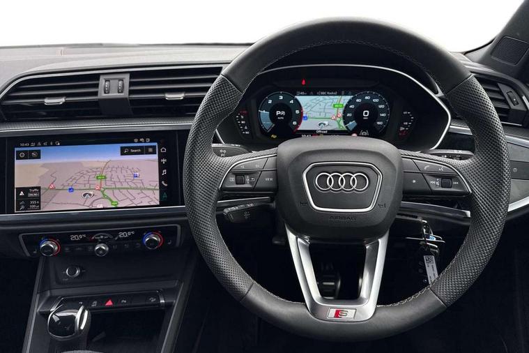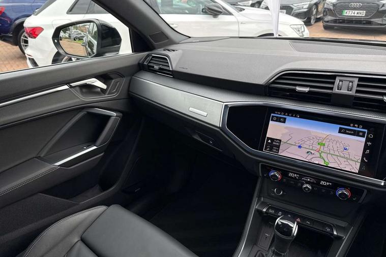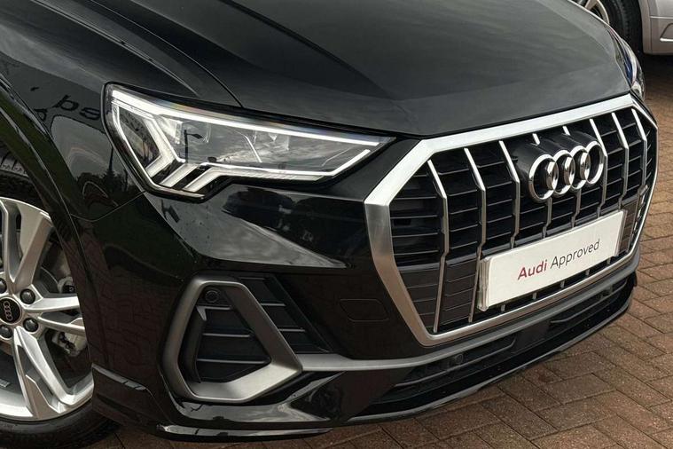 Amazon alexa Integration, Audi connect safety and service, Audi drive select, Audi lane departure warning, Audi Virtual Cockpit - 10.25" display, Bluetooth interface, Camera based traffic sign recognition, Distraction and Fatigue warning, Legal emergency call, MMI Navigation Plus with high resolution 10.1 inch touchscreen colour display, Power operated tailgate, Progressive steering, Service interval indicator, Smartphone interface includes wireless Apple carplay/Android Auto, Start stop system with recuperation, Voice control system with natural language interaction, Diesel particulate filter, Sports suspension, 2 USB-C ports with charge and data functions, 6 passive loudspeakers, DAB digital radio module, Acoustic windscreen, Aluminium roof rails, Aluminium window trim, Anthracite black radiator grille, Auto dimming door mirrors, Auto dimming frameless rear view mirror, Body colour front spoiler blade, Electrically folding, adjustable and heated door mirrors with integrated LED side indicators and kerb view function for passenger side, Front and rear electric windows, Front fog lights, Front side air inlets in matt platinum grey, Grille vertical bars in aluminium silver/Matt, High gloss black finish B and C pillars, LED Dynamic rear indicators, LED headlights with LED daytime running lights, LED rear lights, LED third brake light, Privacy glass dark tinted rear and rear-side windows (from B-pillar backwards), Rain and light sensors, Rear diffuser grille in grained matt black, Rear diffuser strip in matt anthracite black, Rear side wing doors, Rear wiper, S line badges on front wings, S line front and rear bumpers and side skirts in contrasting Manhattan grey paint finish, Side skirt insert in matt Platinium grey, Variable front intermittent wipers, 12V socket in rear centre console, 3 seat bench in 2nd row, 3 spoke leather multifunction steering wheel features S badging and grips in perforated leather with contrast stitching, 40:20:40 folding with manual adjustment for 60:40 forwards/backwards position and backrest angle, Adjustable rear seat bench/backrest with centre armrest and cupholder, Black cloth headlining, Dual zone electronic climate control, Electric lumbar support, Front and rear black floor mats with contrast stitching in rock grey, Front and rear headrests, Front centre armrest, Height and reach adjustable steering wheel, Illuminated door sill trims with S logo, ISOFIX child seat mounting for front passenger with airbag deactivation and outer rear seat including top tether attachment point for outer rear seats, Manual front seats with height adjustment, Perforated leather gearknob, Single front passenger seat, Stainless steel luggage compartment sill finisher, Stainless steel pedals, Twin leather upholstery with front sport seats + S embossing, Non smoking pack - Q3, 3x3 point rear seatbelts, 6 airbags - Driver, front passenger, curtain and side windows, Audi pre-sense front with pedestrain and cyclist recognition, Electrically operated child locks on rear doors, Electromechanical parking brake, Electronic stabilisation control including ABS, ASR and EDL, Front seatbelt reminder, Hill descent control, Hill hold assist, Pre sense basic, Seatbelt monitoring, Tyre pressure warning, Warning triangle and first aid kit, Anti theft wheel bolts, Immobiliser, Remote central locking, Thatcham approved category 1 anti theft alarm, Aluminium look interior elements, Dark matt brushed aluminium inlay, Detail dashboard around MMI touch colour display in glass look, black with surround in aluminium look, Leatherette door armrest,