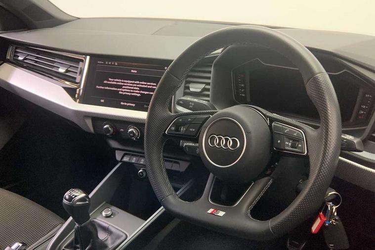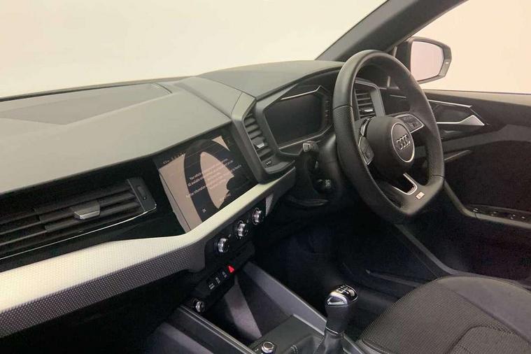 10.25" Digital instrument cluster display classis style instrument dials + speed, odometer, time, outside temperature, telephone menu + fuel level warning, Audi drive select - power steering assistance + engine, Audi smartphone interface with connect compatible smartphone via USB directly MMI display + Nav, music, third party apps controlled via MMI controller, Automatic start/stop system, Bluetooth interface, Cruise control, Driver's information system, Electromechanical power steering, Emergency e-call, Lane departure warning system, Rear parking sensor, Service interval indicator, Speed limiter, Voice control system, Washer fluid level indicator, Sports suspension, 2 x USB type C connection points, 6 passive loudspeakers, DAB Digital radio, MMI radio plus with 10.1" colour MMI display screen and MMI touch, Auto dimming rear view mirror, Black side skirts, Body coloured bumpers, Door sill trims with aluminium inlays and logo, Electric front and rear windows, Electrically adjustable, heated, folding door mirrors with integrated LED side indicator, Front side air inlets in grained matt black and C frame in anthracite black, Front wing badges, Heat insulating glass windscreen and side windows, Heated rear windscreen, High level LED brake light, LED headlights with LED rear lights + dynamic rear indicators + headlight adjustment and high beam, turning light + LED daytime running lights, Privacy glass, Rain and light sensors, Rear fog lights, Rear side wing doors, Rear wiper, Side front spoiler lips in grained matt black, 12V socket in centre console with two cup holders, 3 rear seats with headrests, 3 seat bench in 2nd row, 3 spoke flat bottomed multi-function plus leather steering wheel with S badging, grips in preforated leather and contrast stitching, 40:60 Split folding rear seat or folded fully, Black cloth headlining, Driver and passenger seat with manual height adjust with forward and backwards adjustment, Front and rear black floor mats with contrast stitching in fine silver, Front head restraints, Front passenger seat, Height and reach adjustable steering wheel, ISOFIX child seat mounting for front passenger and outer rear seats including top tether attachment point of outer rear seats, Leather gear knob with aluminium trim, Leatherette handbrake grip, Luggage compartment light with front and rear reading lights, Manual air conditioning, Manually adjustable lumbar support in front seats, Stainless steel pedals, Black styling pack - A1 Sportback Black Edition, LED interior lighting pack - A1, Luggage compartment pack - A1, 3x3 point rear seatbelts, Audi pre-sense front with pedestrain and cyclist recognition, Brake assist function, Driver and front passenger airbag with front side and head airbags, Electronic Stability Control including ABS, EBD, ASR and EDL, Front passenger airbag deactivation switch, Hill hold assist, Manual rear child locks, Seatbelt height adjustment for front seats, Seatbelt monitoring, Tyre pressure warning light, Warning triangle and first aid kit, Anti theft alarm, Anti theft wheel bolts and loose wheel warning, Immobiliser, Remote central locking with 2 foldaway keys, Aluminium trim for control switches, air vents and digital instrument cluster, Black dashboard, Silver grey inlays polygon structure in diamond paint finish, Structured grey accent areas including air vents, door handle recesses and centre console in quartz paint finish,