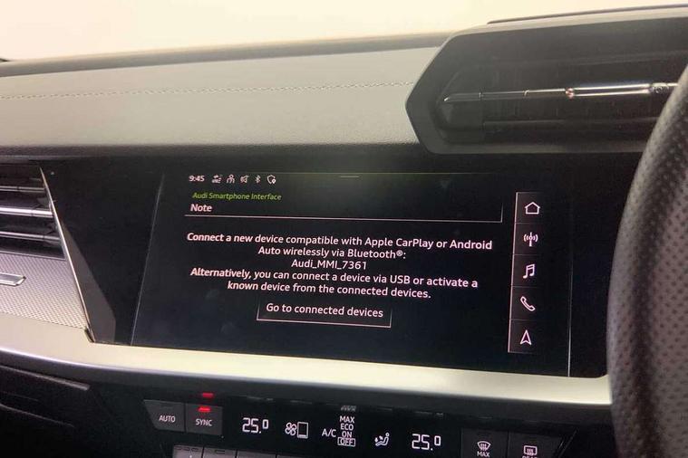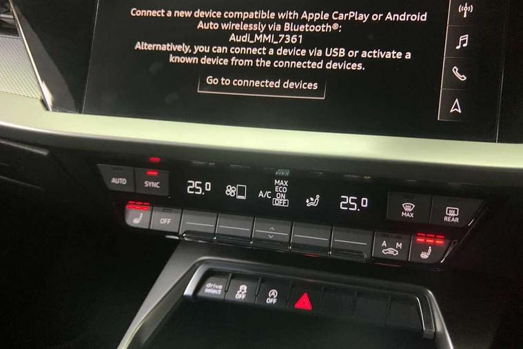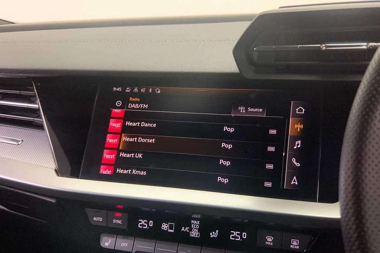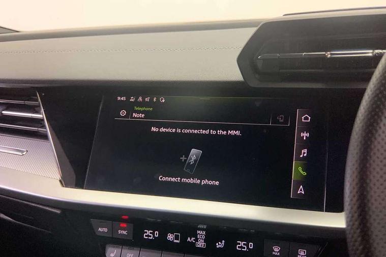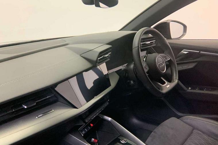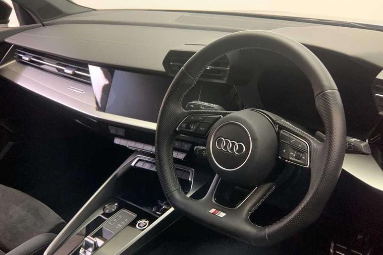 Audi connect emergency call and service, Audi drive select (Auto, Comfort, Dynamic, Efficiency and Individual), Audi smartphone interface, Audi virtual cockpit plus - 12.3" dynamic digital instrument cluster, Automatic start/stop system with recuperation, Bluetooth interface, Collision avoidance assistant, Electromechanical power speed sensitive steering, Lane departure warning system, MMI Navigation Plus with high resolution 10.1" colour touch screen display, Service indicator, Voice control system with natural language interaction, Diesel particulate filter, Sports suspension, 2x USB Type C ports (for charging and data transfer), 6 passive loudspeakers, CD player, DAB Digital radio, 3rd brake light, Acoustic glass windscreen, Audi matrix LED headlights, LED rear lights, dynamic front and rear indicators and headlight cleaning system, Auto dimming frameless rear view mirror, Electrically adj heated/folding + automatically dimming exterior mirrors with memory + automatic kerb side function for passenger side exterior mirror, Front electric windows, Illuminated door sills with aluminium inserts at the front with S logo, Integrated LED indicators in door mirrors, LED daytime running lights, Light and rain sensors, Model and engine designation badges at rear, Privacy glass - dark tinted rear window, rear door and side windows, Rear boot, Rear electric windows, Rear side wing doors, S roof spoiler, 12V socket and storage compartment in front centre console, 3 seat bench in 2nd row, 4 way electrically adjustable lumbar support for driver and front passenger, 40/20/40 split folding rear seat bench with cupholder, Black cloth headlining, Dual zone electronic climate control, Electrically adjustable front seats with memory function for driver's side and exterior mirrors, Front and rear centre armrest in leather, Front and rear headrests, Front/rear floor mats, Heated front seats, Height and reach adjustable steering wheel, Illuminated vanity mirror, Interior lighting - glove compartment light and right hand side, Luggage compartment floor covering, Single front passenger seat, Stainless steel pedals and front footrest in black, Aluminium interior elements pack - A3, Dinamica microfibre/mono.pur 550 artificial leather pack - A3 Saloon, 3x3 point rear seat belts, Driver and front passenger airbag with passenger airbag deactivation, Electronic Stabilisation Control (ESC) including ABS, ASR and EDL, First aid kit with warning triangle and 2 safety vests, Front side airbags with head airbags and interaction airbag, Hill hold assist, Pre-sense front with pedestrian and cyclist detection, Seatbelt monitoring, Tyre pressure loss indicator, Anti theft alarm, Anti-theft wheel bolts, Immobiliser, Manual child locks, Remote control central locking, Aluminium air vent surrounds, Aluminium trim elements, Dark spectrum aluminium inlays, accent surfaces in the dashboard and centre console in platinum grey silk effect paint finish, 19" 5 arm trapezoid design alloy wheels in titanium matt grey with diamond cut finish,