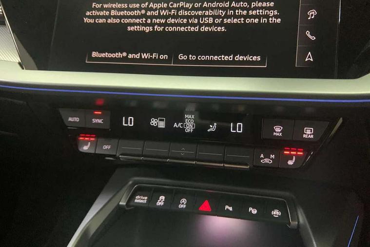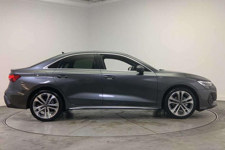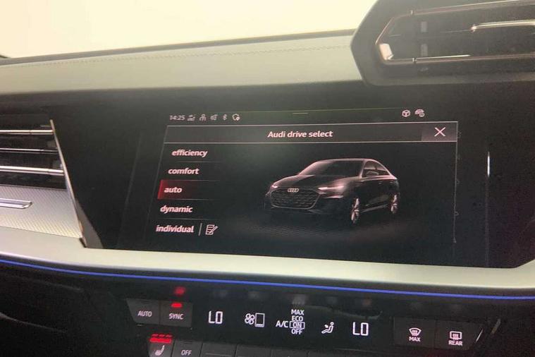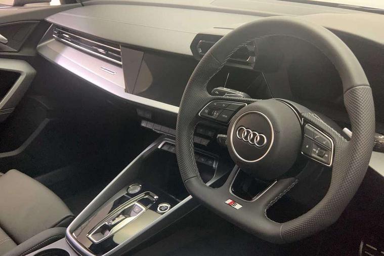 Adjustable speed limiter, Audi drive select, Audi smartphone interface with app store includes wireless Apple carplay, Android auto and Amazon alexa integration, Audi virtual cockpit plus - 12.3" full HD resolution dynamic digital instrument cluster, Automatic start/stop system with recuperation, Bluetooth interface, Camera based traffic sign recognition, Collision avoidance assistant, Cruise control, Distraction and Fatigue warning, e-Call (emergency call), Electromechanical power speed sensitive steering, Emergency assist, Lane departure warning system, MMI Navigation Plus with high resolution 10.1" colour touch screen display, Park Assist with parking system Plus, Service indicator, Trip computer, Voice control system with natural language interaction, Sports suspension, Audi Phonebox light with wireless charging, Audi sound system - 10 loudspeakers including centre loudspeaker and subwoofer, DAB Digital radio, USB ports with charging function in the rear, Acoustic glass windscreen, All weather light, Aluminium window trim, Auto dimming frameless rear view mirror, Automatic dynamic range control, Body colour exterior mirrors, Chrome exhaust tailpipes, Dipped beam, main beam, position light and turning light, Electrically adjustable/heated/folding/auto dimming door mirrors with integrated LED indications + kerb view function for passenger side, Exterior model badging, Front and rear side air inlets in grained matt black with dark liquid chrome frame, Front electric windows, Front radiator grill in high gloss dark chrome, Heat insulating glass windscreen, Illuminated door sills with aluminium inserts at the front with S logo, Intersection light, LED 3rd brake light, LED brake lights, LED daytime running x3, LED headlights with LED rear lights and dynamic rear indicators, LED rear number plate lights, LED reverse light, LED tail lights, Light and rain sensors, Manoeuvring light, Motorway light, Privacy glass - dark tinted rear window, rear door and side windows, Rear boot, Rear diffuser and grill in grained matt black with inlay in dark liquid chrome, Rear electric windows, Rear side wing doors, S line bumpers, Side S line emblems on front wings, Side sill trim in dark liquid chrome, Static Cornering lights, 12V socket and storage compartment in front centre console, 3 seat bench in 2nd row, 3 spoke flat bottomed leather multifunction sport steering wheel with gear shift paddles, 3-zone deluxe automatic air conditioning, 4 way electrically adjustable lumbar support for driver and front passenger, 40/20/40 split folding rear seat bench, Black cloth headlining, Black front and rear floor mats, Front and rear centre armrest in artificial leather with contrasting stitching on armrests and instrument panel, Front and rear headrests, Heated front seats, Height and reach adjustable steering wheel, Manual boot compartment lid, Manually adjustable front seats, Rear centre armrest with cupholder, S badging on the steering wheel, Seat side bolsters, Single front passenger seat, Stainless steel pedals and front footrest in black, Twin leather upholstery with front sports seats S embossed logo, Aluminium interior elements pack - A3, Multi-coloured LED interior lighting package with Multi-coloured contour lighting of instrument panel - A3, 3x3 point rear seat belts, Driver and front passenger airbag with passenger airbag deactivation, Electronic Stabilisation Control (ESC) including ABS, ASR and EDL, First aid kit with warning triangle and 2 safety vests, Front side airbags with head airbags and interaction airbag, Hill hold assist, Pre-sense front with pedestrian and cyclist detection, Seatbelt monitoring, Tyre pressure loss indicator, Anti theft alarm, Anti-theft wheel bolts, Electronically operated child locks, Immobiliser, Remote central locking with safelock, Black dashboard, Inlay in dark aluminium spectrum,