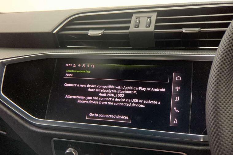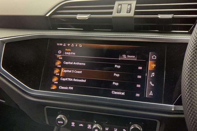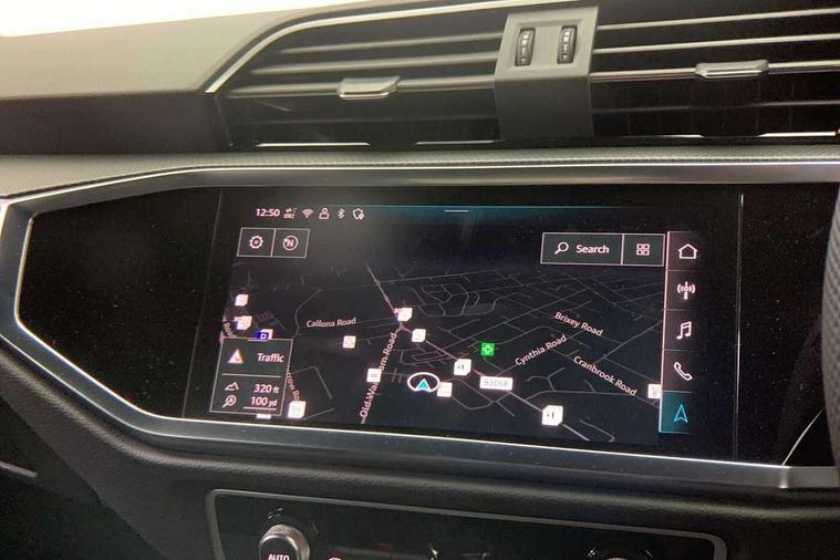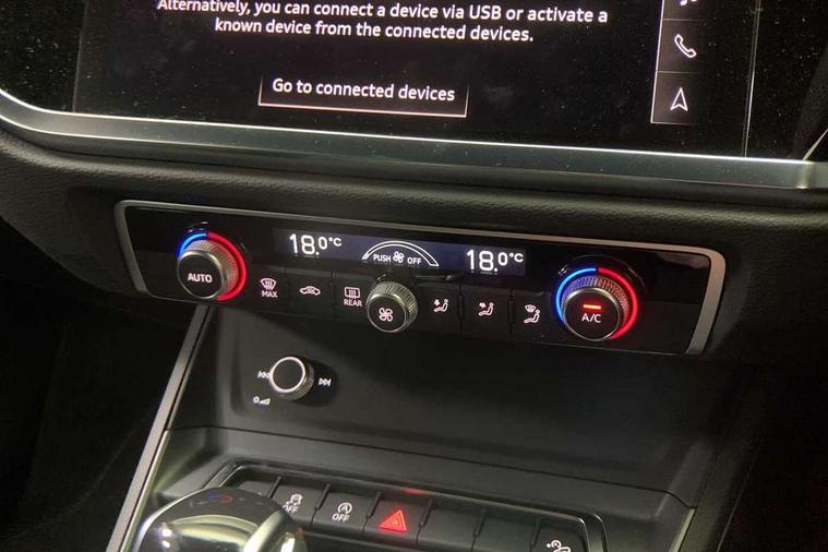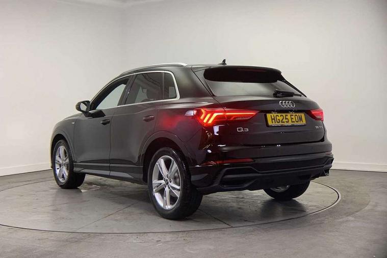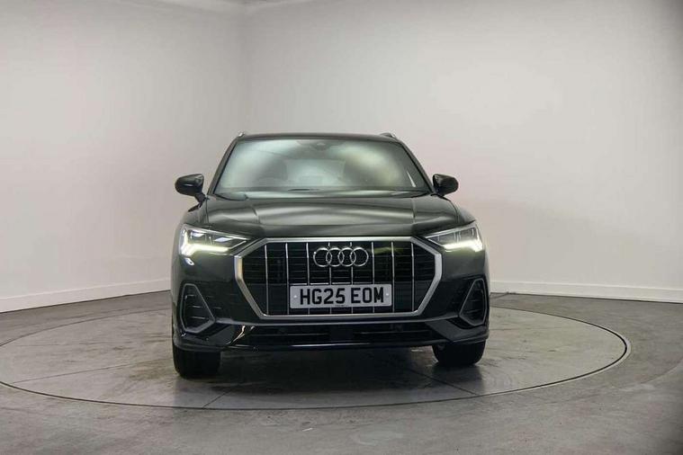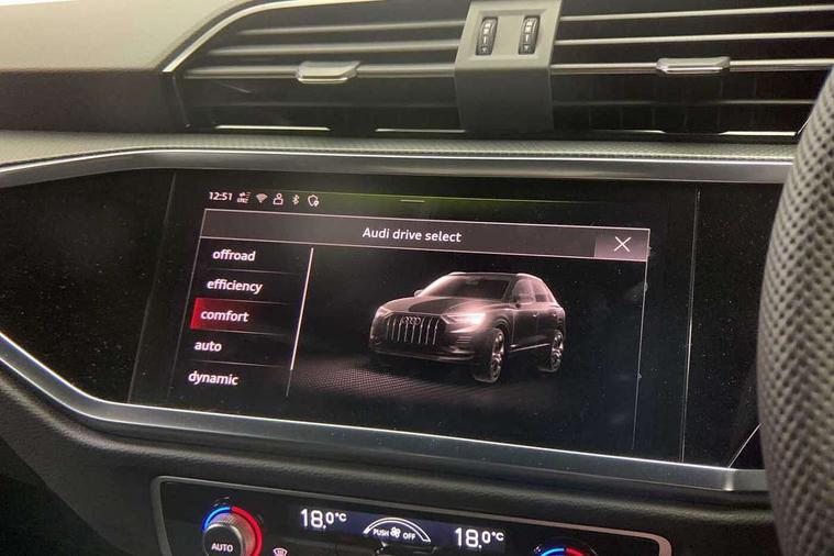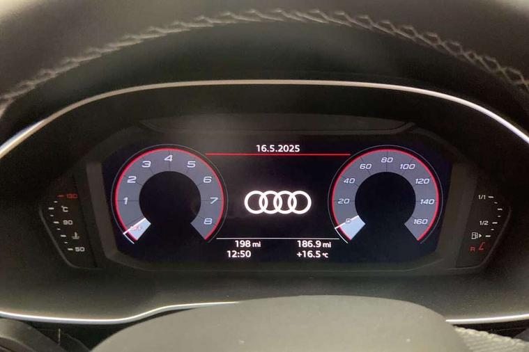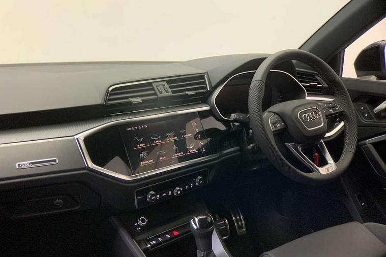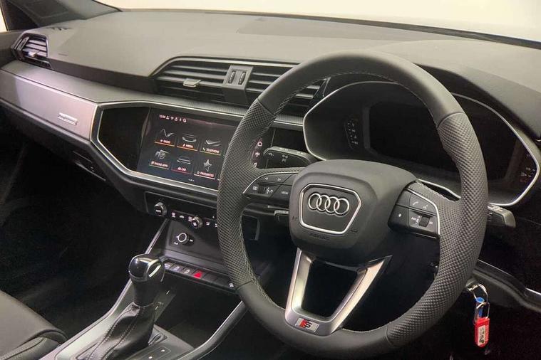 Amazon alexa Integration, Audi connect safety and service, Audi drive select, Audi lane departure warning, Audi Virtual Cockpit - 10.25" display, Bluetooth interface, Camera based traffic sign recognition, Distraction and Fatigue warning, Legal emergency call, MMI Navigation Plus with high resolution 10.1 inch touchscreen colour display, Power operated tailgate, Progressive steering, Service interval indicator, Smartphone interface includes wireless Apple carplay/Android Auto, Start stop system with recuperation, Voice control system with natural language interaction, Sports suspension, 2 USB-C ports with charge and data functions, 6 passive loudspeakers, DAB digital radio module, Acoustic windscreen, Aluminium roof rails, Aluminium window trim, Anthracite black radiator grille, Auto dimming door mirrors, Auto dimming frameless rear view mirror, Body colour front spoiler blade, Electrically folding, adjustable and heated door mirrors with integrated LED side indicators and kerb view function for passenger side, Front and rear electric windows, Front fog lights, Front side air inlets in matt platinum grey, Grille vertical bars in aluminium silver/Matt, High gloss black finish B and C pillars, LED Dynamic rear indicators, LED headlights with LED daytime running lights, LED rear lights, LED third brake light, Privacy glass dark tinted rear and rear-side windows (from B-pillar backwards), Rain and light sensors, Rear diffuser grille in grained matt black, Rear diffuser strip in matt anthracite black, Rear side wing doors, Rear wiper, S line badges on front wings, S line front and rear bumpers and side skirts in contrasting Manhattan grey paint finish, Side skirt insert in matt Platinium grey, Variable front intermittent wipers, 12V socket in rear centre console, 3 seat bench in 2nd row, 3 spoke leather multifunction steering wheel features S badging and grips in perforated leather with contrast stitching, 40:20:40 folding with manual adjustment for 60:40 forwards/backwards position and backrest angle, Adjustable rear seat bench/backrest with centre armrest and cupholder, Black cloth headlining, Dual zone electronic climate control, Electric lumbar support, Front and rear black floor mats with contrast stitching in rock grey, Front and rear headrests, Front centre armrest, Height and reach adjustable steering wheel, Illuminated door sill trims with S logo, ISOFIX child seat mounting for front passenger with airbag deactivation and outer rear seat including top tether attachment point for outer rear seats, Manual front seats with height adjustment, Perforated leather gearknob, Single front passenger seat, Stainless steel luggage compartment sill finisher, Stainless steel pedals, Twin leather upholstery with front sport seats + S embossing, Non smoking pack - Q3, 3x3 point rear seatbelts, 6 airbags - Driver, front passenger, curtain and side windows, Audi pre-sense front with pedestrain and cyclist recognition, Electrically operated child locks on rear doors, Electromechanical parking brake, Electronic stabilisation control including ABS, ASR and EDL, Front seatbelt reminder, Hill descent control, Hill hold assist, Pre sense basic, Seatbelt monitoring, Tyre pressure warning, Warning triangle and first aid kit, Anti theft wheel bolts, Immobiliser, Remote central locking, Thatcham approved category 1 anti theft alarm, Aluminium look interior elements, Dark matt brushed aluminium inlay, Detail dashboard around MMI touch colour display in glass look, black with surround in aluminium look, Leatherette door armrest,