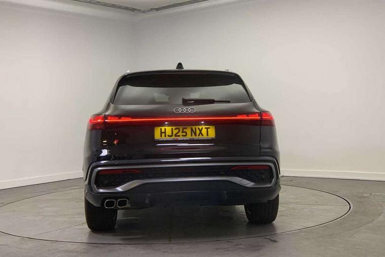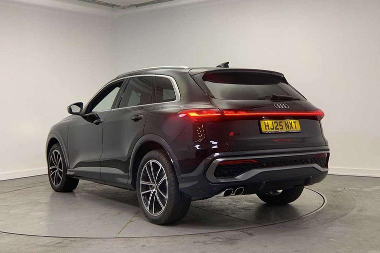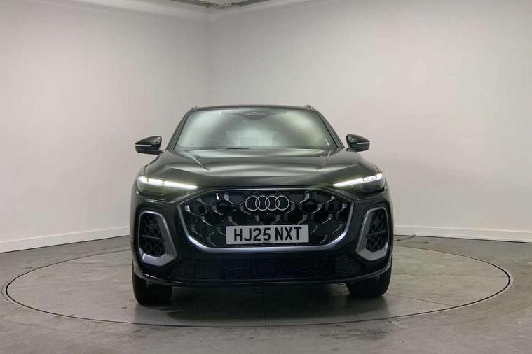 Adaptive cruise assist plus with steering intervention, Advanced driver attention alert, Audi application store, Audi connect emergency call and service, Audi digital key, Audi drive select, Audi smartphone interface, Audi virtual cockpit plus with 11.9" OLED colour display, Camera based traffic sign recognition, Fatigue monitor, Front cross traffic intersection assist, Garage door opener, Lane change assistant with exit warning system, rear cross traffic alert and rear turn assist, Lane departure warning with emergency assist, MMI 10.9" front passenger touch display, MMI navigation plus with high resolution 14.5" OLED touchscreen colour display, Park assist plus, Parking system plus with 360 display, PAS, Reversing camera, Swerve assist and turn assist, Top view camera, Traffic sign based speed limiter, Adaptive air suspension, 2 USB-C ports in both the front and rear, DAB Digital radio, Smartphone compartment with wireless charging, Acoustic glass for front door windows, Active digital light signatures - Six additional combinations of active daytime running light signature, Aluminium roof rails, Auto dimming rear view mirror, Body coloured door mirrors, Coming/leaving home lighting function, Digital OLED tail lights including communication light, Electrically adjustable heated and folding + automatically dimming exterior mirrors, Front and rear electric windows, Front door sill trims with aluminium inlays, illuminated with 'S' logo, Headlight cleaning system, Heated rear window, High beam assist, High gloss window surrounds, Inlay and front air inlets in matt anthracite chrome, Logo projection light in exterior mirrors, Matrix LED headlights, Privacy glass, Projection light for rear window, Radiator grille in phantom black, Rear and side windows with heat insulating glass, Rear honeycombe grille in matt black with inlay in matt anthracite chrome, Rear side wing doors, Rear wash/wipe, S Line badge on the front wings, S line bumpers in contrasting Volcano grey metallic paint finish, Towbar preparation, Windscreen with acoustic glazing, 3 rear head restraints, 3 seat bench in 2nd row, 3 spoke leather steering wheel with multi-function buttons with touch control, flattened on top and bottom, with S badging and contrast stitching, 4 way electric lumbar support for driver and front passenger, 40:20:40 split folding rear seat bench with centre armrest and cup holders, Comfort centre armrest, Deluxe 3 zone electronic climate control, Electric steering wheel adjustment, Electrically adjustable front seats with memory function for driver's side, Front and rear floor mats, Front sport seats with integrated head reastrains, Headlining in black cloth, Heated front seats, Heated outer rear seats, Heated steering wheel, i-Size child seat mounting on the front passenger side and i-Size and top tether on the outer rear seats, Interior trim in aluminium look, Luggage compartment lid, electrically opening and closing, Single front passenger seat, Softwrap in leatherette, Stainless steel pedals and footrest, Steering wheel grips in perforated leather and shift paddles, Twin leather upholstery, Ambient lighting package plus - Q5, Sound and Vision pack - Q5, Storage and luggage compartment pack - Q5, Vanadium pack - Q5, 3x3 point rear seatbelts, ABS, Acoustic vehicle alerting system, Convenience key with safelock, Driver and front passenger airbag with passenger airbag deactivation, Electric child safety locks, First aid kit with warning triangle and high visibility vests, Front emergency brake assist, Front side airbags with head airbag system and front interaction airbag, Hill hold assist, Occupant detection in rear seat area, Proactive passenger protection system for front, sides and rear, Side airbags in front and rear with head airbag system and front interaction airbag, Tyre pressure loss indicator, Anti theft alarm, Anti-theft wheel bolts, Remote control key with SAFELOCK and keyless go, Anthracite matt brushed aluminium inlays with linear embossing, Black dashboard with contrast stitching, Steel grey seat stitching, Upper and lower interior elements in artificial leather, 20" 5 twin spoke black metallic, gloss turned finish Audi Sport alloy wheels, Tyre repair kit,