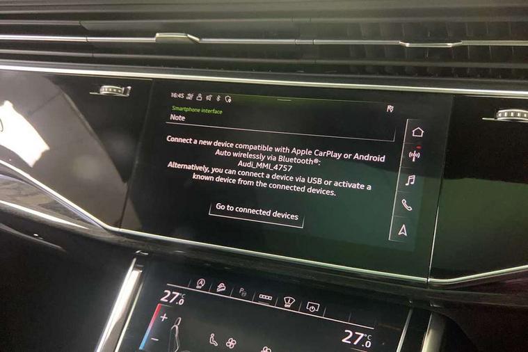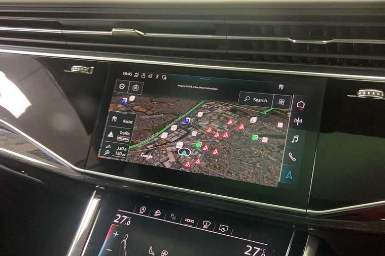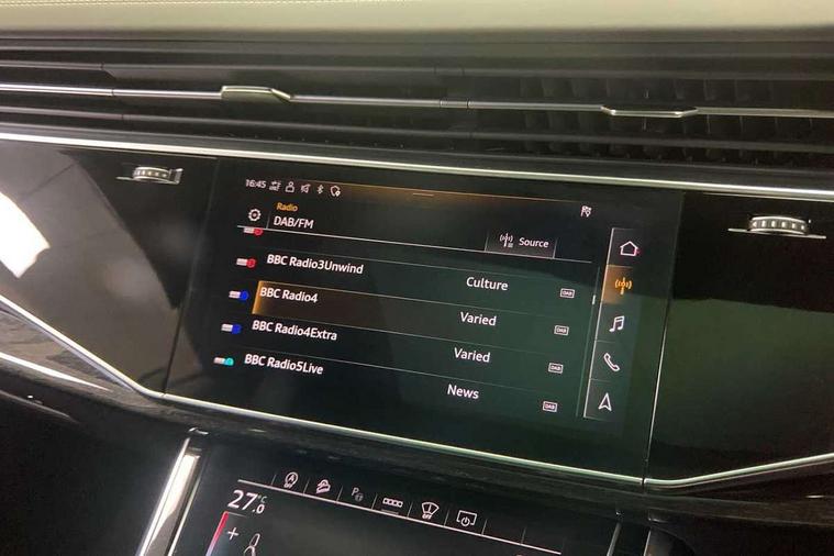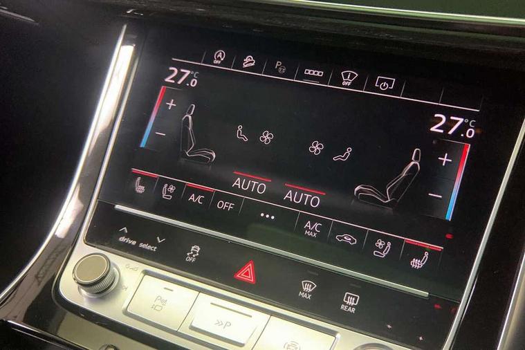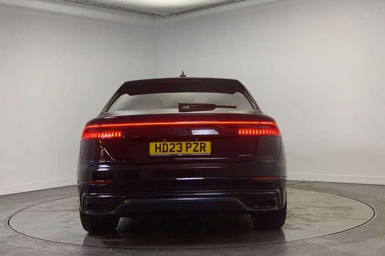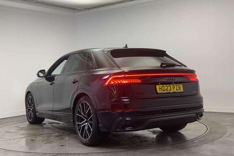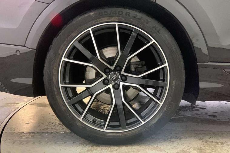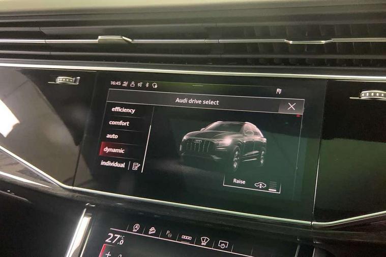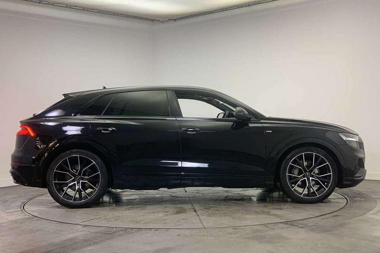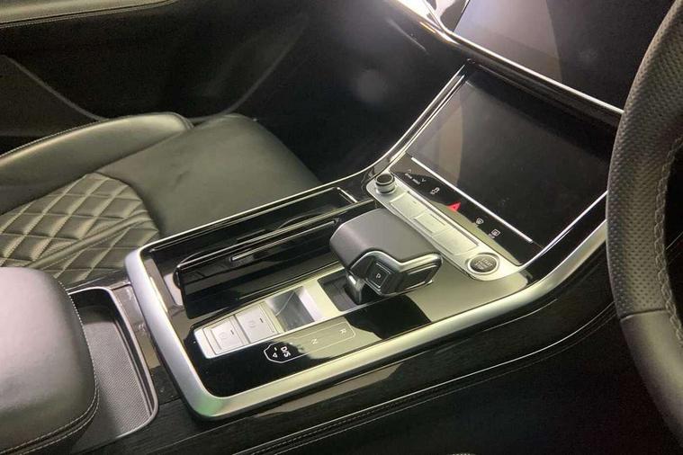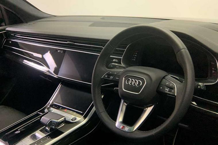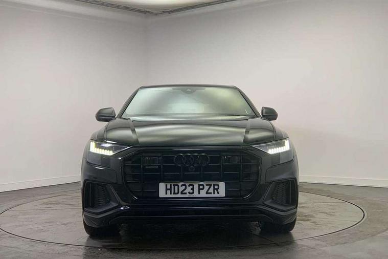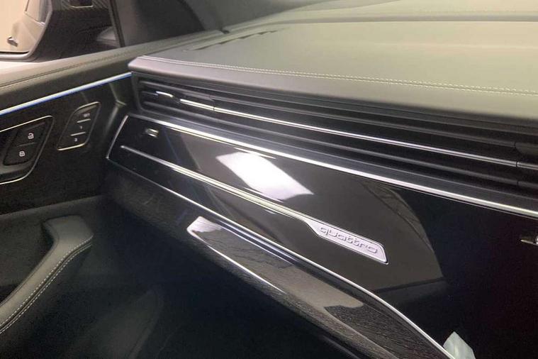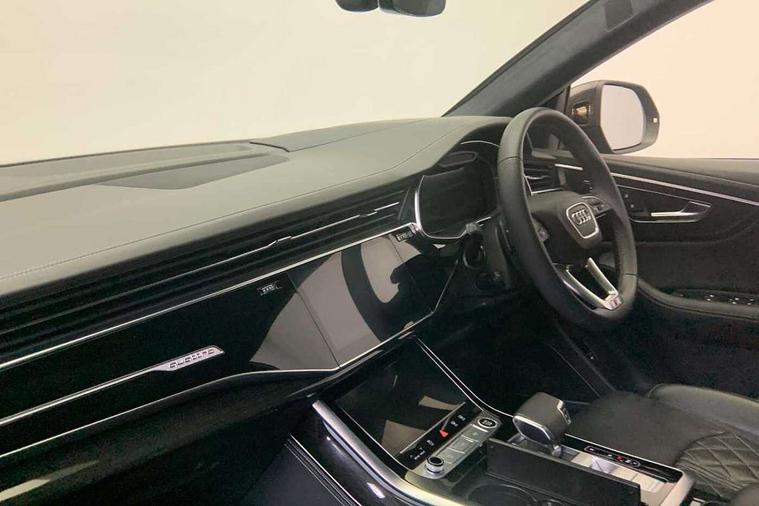 10.1" and 8.6" Dual colour touchscreens, 2 USB C ports with charging functionality in the rear, 360 camera, Adaptive cruise control, All wheel steering, Audi connect safety and service (e-call), Audi connect with Amazon Alexa Integration, Audi drive select, Audi phone box light with wireless charging, Audi side assist, Audi virtual cockpit plus, Automatic start/stop system, Camera based traffic sign recognition, Collision avoidance assistant, Cross traffic assist front and rear, Electro-mechanical PAS, Head up Display, Lane departure warning with emergency assist, Low washer fluid indicator, MMI - Multi Media Interface control system, MMI navigation plus with MMI touch, Natural voice recognition, On board computer, Operating buttons in black, glass look with haptic feedback, Power door closure, Power operated tailgate, Predictive efficiency assistant, Remote park assist plus, Service interval indicator, Smartphone interface includes wireless Apple carplay/Android Auto, Turn Assist, 48V Mild hybrid technology, Adaptive sport air suspension, Diesel particulate filter, Quattro all wheel drive with self locking centre differential, Audi music interface with 2 USB ports with charge and data functions, Aux-in socket, Bang + Olufsen sound system, DAB Digital radio, 3rd brake light, Acoustic windscreen, Adaptive windscreen wipers with integrated washer jets, Aluminium window trim, Audi beam, Audi HD Matrix LED headlights with dynamic front and rear indicators, Auto dimming frameless rear view mirror, Coming/leaving home lighting function, Electric front+rear windows, Electric panoramic glass sunroof, Electrically folding auto dimming/adjustable/heated door mirrors with memory function, LED side indicators and kerb view function for passenger side, Gloss black finish for exterior Audi rings and Q8 logo without engine badging, Headlight washers, Heat insulating glass in windshield, LED signature daytime running lights, Platinum grey front spoiler lip and diffuser insert with honeycomb grille in black, Privacy glass - dark tinted rear and rear side windows from B-pillar backwards, Rain and light sensors, Rear side wing doors, Rear wiper, 3 bench rear seats in 2nd row, 3 spoke heated leather multi-function sport steering including paddle shift, 4 zone deluxe automatic climate control, 4-way lumbar support for front seats, 40:20:40 split folding rear bench seat, Audi phone box light, Black dinamica headlining, Comfort front centre armrest, Double sun visor with illuminated vanity mirror on driver and passenger side extendable, Driver and front passenger seat memory function for electrically adjustable front seats, Electric luggage compartment cover, Electric sunblind for the rear side windows and manual sunblind for the rear window, Front head restraints, Front/rear floor mats, Heated front and outer rear seats, ISOFIX child seat mounting for front passenger seat and 2 outer rear seats with top tether child seat mounting for all 3 rear seats, Luggage compartment sill protection in stainless steel, Massage and ventilation function for front seats, Power adjustable steering wheel, Rear centre armrest with 2 cupholders, Rear headrests, Seat cushion displaceable by 100mm in the ratio 60:40, Single front passenger seat, Stainless steel pedals, Valcona leather upholstery + front super sport seats with S embossed logo, Ambient lighting package plus - Q8, Extended leather pack - Q8, Multi coloured extended LED Interior lighting pack - Q8, 3 point seatbelts on all seats, Audi pre sense basic, Audi pre sense front, Audi pre sense rear, Child locks on rear doors, Driver and front passenger, front side and curtain airbags, Electromechanical parking brake, Electronic Stability Control (ESC) including ABS, ASR and EDL, Exit warning, Front passenger airbag deactivation, Hill descent control, Hill hold assist, Predictive pedestrian protection, Seatbelt monitoring, Traction control, Tyre pressure loss indicator, Warning triangle and first aid kit, Advanced key, Anti theft alarm with tow away protection, Anti-theft wheel bolts and wheel loosening detection, Immobiliser, Polished oak trim with grey finish inlay, Tool kit, Tyre repair kit,