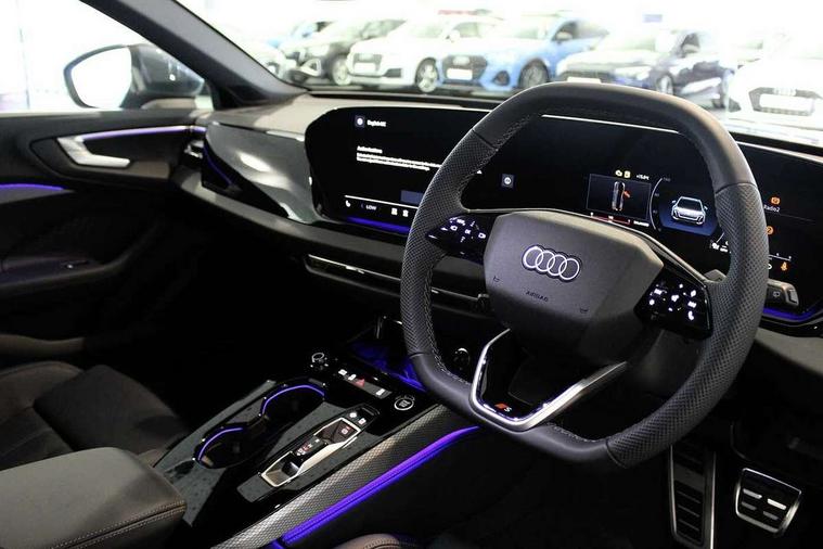 Adaptive cruise control, Advanced driver attention and fatigue montior, Audi application store, Audi assistant, Audi connect emergency call and service, Audi drive select, Audi smartphone interface, Audi virtual cockpit plus with 11.9" OLED colour display, Automatic start/stop system with coasting functionality, Camera based traffic sign recognition, Intersection assist, Lane departure warning, MMI navigation plus with high resolution 14.5" OLED touchscreen colour display, Park assist plus, Parking system plus with 360 display, Progressive steering with servotronic, Rear view camera, Swerve assist and turn assist, Traffic sign based speed limiter, Sports suspension lowered by 20mm, 2 USB-C ports in both the front and rear, Audi sound system impressive sound with 10 loudspeakers including centre speaker and subwoofer, 6-channel amplifier with a total output of 180 watts, DAB digital radio reception, Smartphone compartment with wireless charging, Aluminium roof rails, Aluminium window trims, Auto dimming rear view mirror, Body colour door mirrors, Door mirrors - electrically adjustable, heated, folding and auto dimming on both sides, Front and rear electric windows, Front door sill trims with aluminium inlays, illuminated with 'S' logo, High beam assist, LED headlights Plus incl. digital daytime running lights, turning light, all-weather light, motorway light, manouevring light and intersection light, LED rear lights pro incl. dynamic rear indicators and illuminated light strip with animated coming and leaving home function, LED third brake light, Privacy glass, Rear and side windows with heat insulating glass, Rear side wing doors, Rear wash/wipe, S Line badges on the front wings, S line bumpers, radiator grille and diffuser in phantom black and diffuser insert in matt anthracite, White rhombus logo projection light in exterior mirrors, Windscreen with acoustic glazing, 3 rear headrests, 3 seat rear bench, 3 spoke leather steering wheel with multi-function buttons with touch control, flattened on top and bottom, with S badging and contrast stitching, 3-zone automatic climate control, 40:20:40 split folding rear seat bench with centre armrest and cup holders, Comfort front centre armrest, Front and rear floor mats, Front seats with manual adjustment for position and 4-way electric lumbar support, Front sport seats with integrated headrest and S embossed logo, Headlining in black cloth, Heated front seats, i-Size child seat mounting on the front passenger side and outer rear seats, i-Size and top tether on the outer rear seats, Luggage compartment lid, electrically opening and closing, Manual steering column height and depth adjustment, Single front passenger seat, Stainless steel pedals and footrest, Steering wheel grips in perforated leather and shift paddles, Ambient lighting package plus - A5, 3x3 point rear seat belts, Driver airbag, Electric child safety locks, First aid kit with warning triangle and vests, Front emergency brake assist, Front passenger airbag, Front passenger airbag deactivation, Front side airbags with head airbag system and front interaction airbag, Hill hold assist, Seat belt monitoring with rear seat occupant reminder, Tyre pressure loss indicator, Anti theft alarm, Anti-theft wheel bolts, Keyless Go, Accent surfaces and control buttons in gloss black, Black dashboard with contrast stitching, Inlays in matt brushed aluminium with linear embossing, anthracite, Softwrap in leatherette with contrast stitching, Upper and lower interior elements in leatherette, Tyre repair kit,