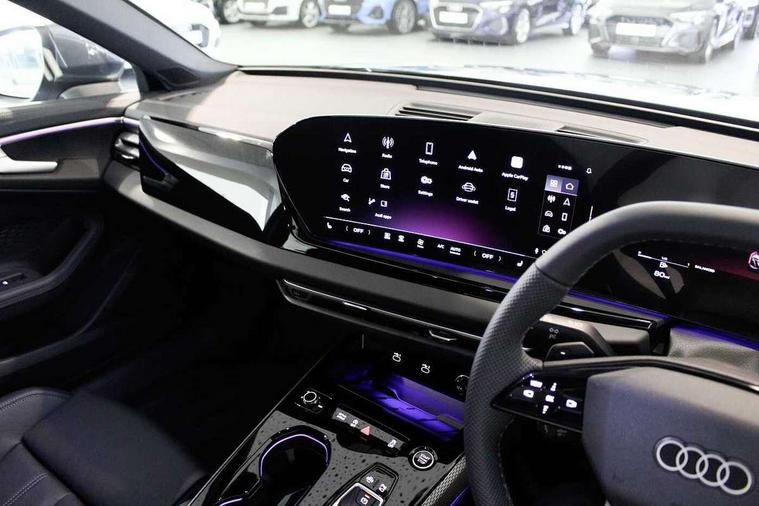 Adaptive cruise control, Advanced driver attention and fatigue montior, Audi application store, Audi assistant, Audi connect emergency call and service, Audi drive select, Audi smartphone interface, Audi virtual cockpit plus with 11.9" OLED colour display, Automatic start/stop system with coasting functionality, Camera based traffic sign recognition, Intersection assist, Lane departure warning, MMI navigation plus with high resolution 14.5" OLED touchscreen colour display, Park assist plus, Parking system plus with 360 display, Progressive steering with servotronic, Rear view camera, Swerve assist and turn assist, Traffic sign based speed limiter, Sports suspension lowered by 20mm, 2 USB-C ports in both the front and rear, Audi sound system impressive sound with 10 loudspeakers including centre speaker and subwoofer, 6-channel amplifier with a total output of 180 watts, DAB digital radio reception, Smartphone compartment with wireless charging, Aluminium roof rails, Aluminium window trims, Auto dimming rear view mirror, Body colour door mirrors, Door mirrors - electrically adjustable, heated, folding and auto dimming on both sides, Front and rear electric windows, Front door sill trims with aluminium inlays, illuminated with 'S' logo, High beam assist, LED headlights Plus incl. digital daytime running lights, turning light, all-weather light, motorway light, manouevring light and intersection light, LED rear lights pro incl. dynamic rear indicators and illuminated light strip with animated coming and leaving home function, LED third brake light, Privacy glass, Rear and side windows with heat insulating glass, Rear side wing doors, Rear wash/wipe, S Line badges on the front wings, S line bumpers, radiator grille and diffuser in phantom black and diffuser insert in matt anthracite, White rhombus logo projection light in exterior mirrors, Windscreen with acoustic glazing, 3 rear headrests, 3 seat rear bench, 3 spoke leather steering wheel with multi-function buttons with touch control, flattened on top and bottom, with S badging and contrast stitching, 3-zone automatic climate control, 40:20:40 split folding rear seat bench with centre armrest and cup holders, Comfort front centre armrest, Front and rear floor mats, Front seats with manual adjustment for position and 4-way electric lumbar support, Front sport seats with integrated headrest and S embossed logo, Headlining in black cloth, Heated front seats, i-Size child seat mounting on the front passenger side and outer rear seats, i-Size and top tether on the outer rear seats, Luggage compartment lid, electrically opening and closing, Manual steering column height and depth adjustment, Single front passenger seat, Stainless steel pedals and footrest, Steering wheel grips in perforated leather and shift paddles, Ambient lighting package plus - A5, 3x3 point rear seat belts, Driver airbag, Electric child safety locks, First aid kit with warning triangle and vests, Front emergency brake assist, Front passenger airbag, Front passenger airbag deactivation, Front side airbags with head airbag system and front interaction airbag, Hill hold assist, Seat belt monitoring with rear seat occupant reminder, Tyre pressure loss indicator, Anti theft alarm, Anti-theft wheel bolts, Keyless Go, Accent surfaces and control buttons in gloss black, Black dashboard with contrast stitching, Inlays in matt brushed aluminium with linear embossing, anthracite, Softwrap in leatherette with contrast stitching, Upper and lower interior elements in leatherette, Tyre repair kit,