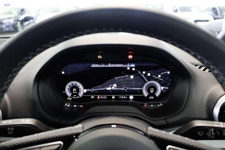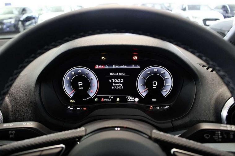 3D map display, Audi connect navigation and infotainment includes innovative services, Audi connect remote and control connects your vehicle to your smartphone, Audi drive select: S tronic - power steering assistance + engine + gearshift (modes: comfort, auto, dynamic, efficiency, individual), Audi smartphone interface - Apple carplay/Android Auto, USB connect, 2xSDXC card readers, voice control for navi, telephone, music and 3rd party apps, Audi virtual cockpit, Automatic start/stop system with recuperation, Bluetooth interface includes bluetooth audio streaming, Camera based traffic sign recognition, Cruise control, Distraction and Fatigue warning, E-call, Jukebox hard drive memory for music (10GB), Lane departure warning, MMI navigation plus with 8.8" touchscreen, Natural voice recognition, Power operated tailgate, Progressive steering, Rear parking sensors, Sport suspension, 6 passive loudspeakers, DAB Digital radio, USB type C port, Auto dimming rear view mirror, Black window trims, Body colour door mirrors, Electrically adjustable, folding, auto dimming and heated door mirrors with integrated LED side indicators, Front windscreen with grey tinted sunband, LED daytime running lights, LED headlights with dipped beam, high beam, position lights, indicators, LED rear lights, LED third brake light, Privacy glass - dark tinted rear and rear side windows from B-pillar backwards, Rear side wing doors, Rear wiper, S Line badges on the front wings, S Line body styling - front and rear bumpers, side skirts, radiator grille, rear diffuser insert and front air intakes, Variable front intermittent wipers, Wheel arch trims in manhattan grey, 12v socket in front, 3 seat bench in 2nd row, 3 spoke multi-function leather steering wheel with S badging, 4-way electric lumbar support for front seats including manual seat height adjustment for both front seats, 60/40 split folding rear seat bench, Black carpets, Black cloth headlining, Front and rear head restraints, Front centre armrest, Front sport seats, Front/rear floor mats, Height/reach adjust steering wheel, Illuminated door sill trims with S logo, ISOFIX child seat mounting in front passenger and rear outer seats, Manual air conditioning, Single front passenger seat, Stainless steel pedals, 3x3 point rear seatbelts, 6 airbags - Front, curtain and front side airbags, Electromechanical parking brake, Electronic stabilisation control including ABS, ASR and EDL, Front passenger airbag deactivation, Hill hold assist, Pre-sense front with pedestrian recognition, Seatbelt monitoring, Tyre pressure warning light with visual and acoustic warning, Warning triangle and first aid kit, Anti theft wheel bolts, Electronically operated child locks, Remote central door locking, Thatcham category 1 alarm, Aluminium interior element, Black dashboard, Gloss black centre console, Matt brushed aluminium trim inlays, Tool kit,